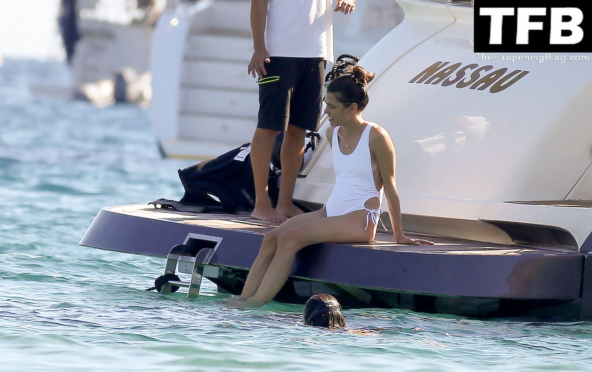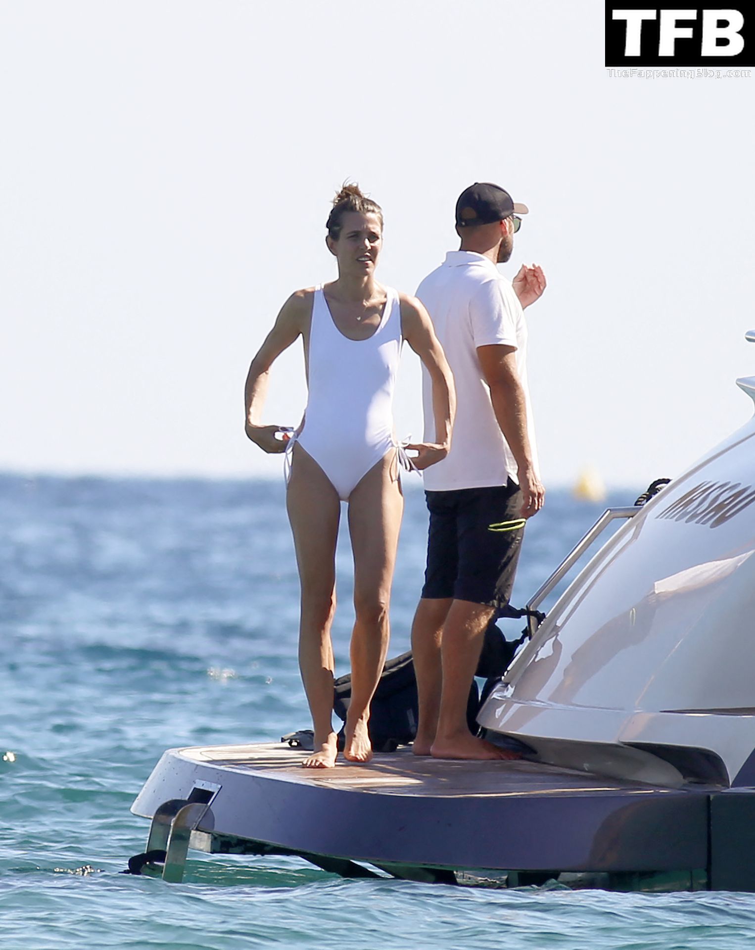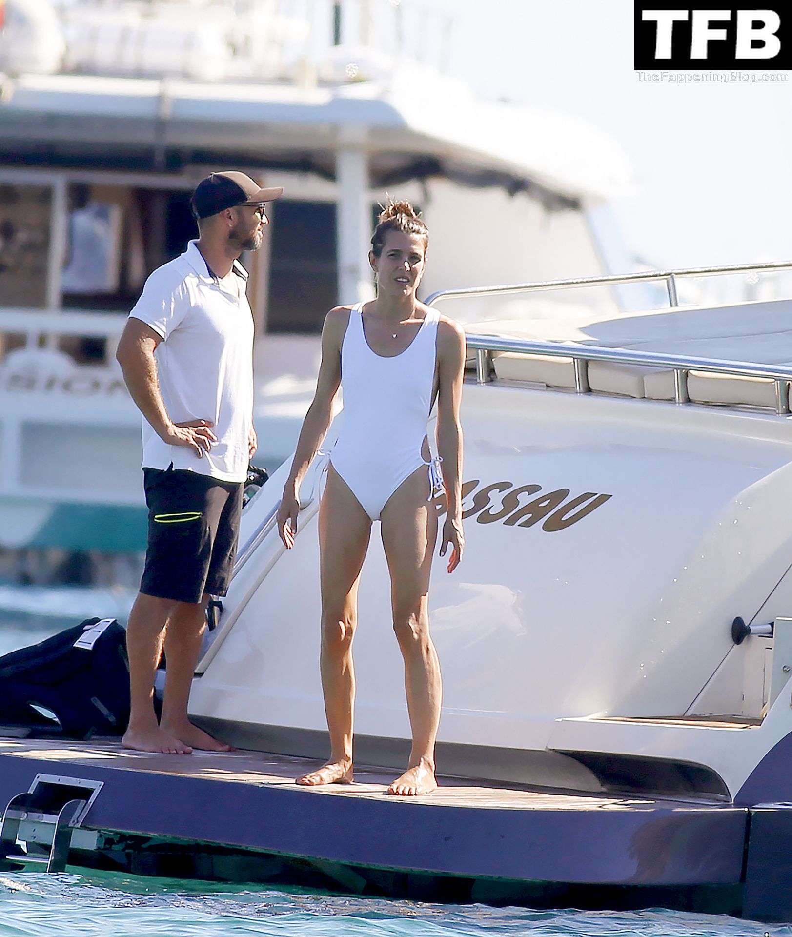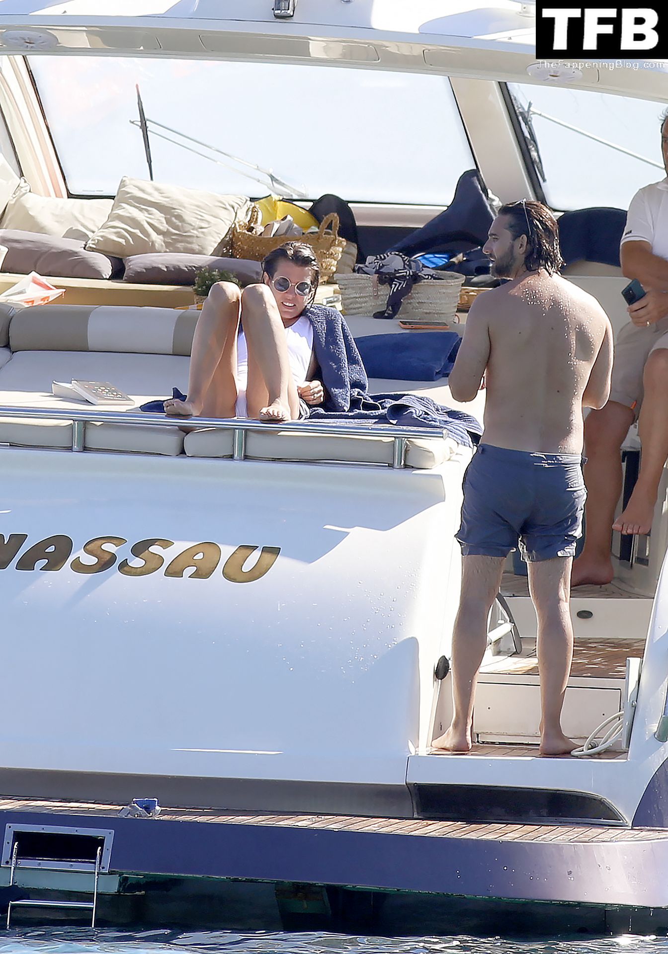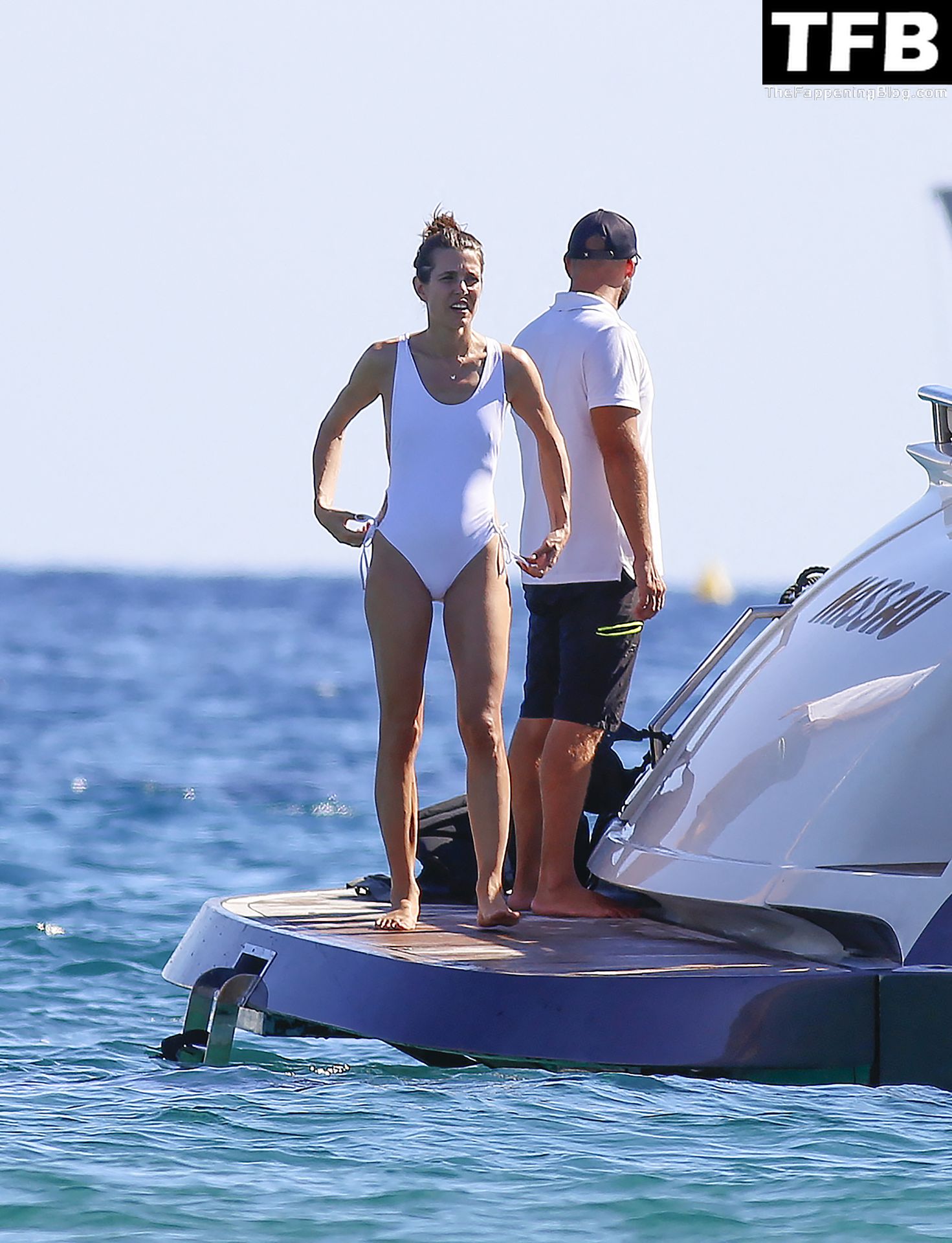 La modelo monegasca, socialité, escritora, editora, ecuestre, periodista, productora de cine y humanitaria Charlotte Casiraghi luce espectacular con un traje de baño blanco a bordo de un yate mientras disfruta de un baño en el mar con su esposo Dimitri Rassam en Ibiza, España, 19/08/2022.