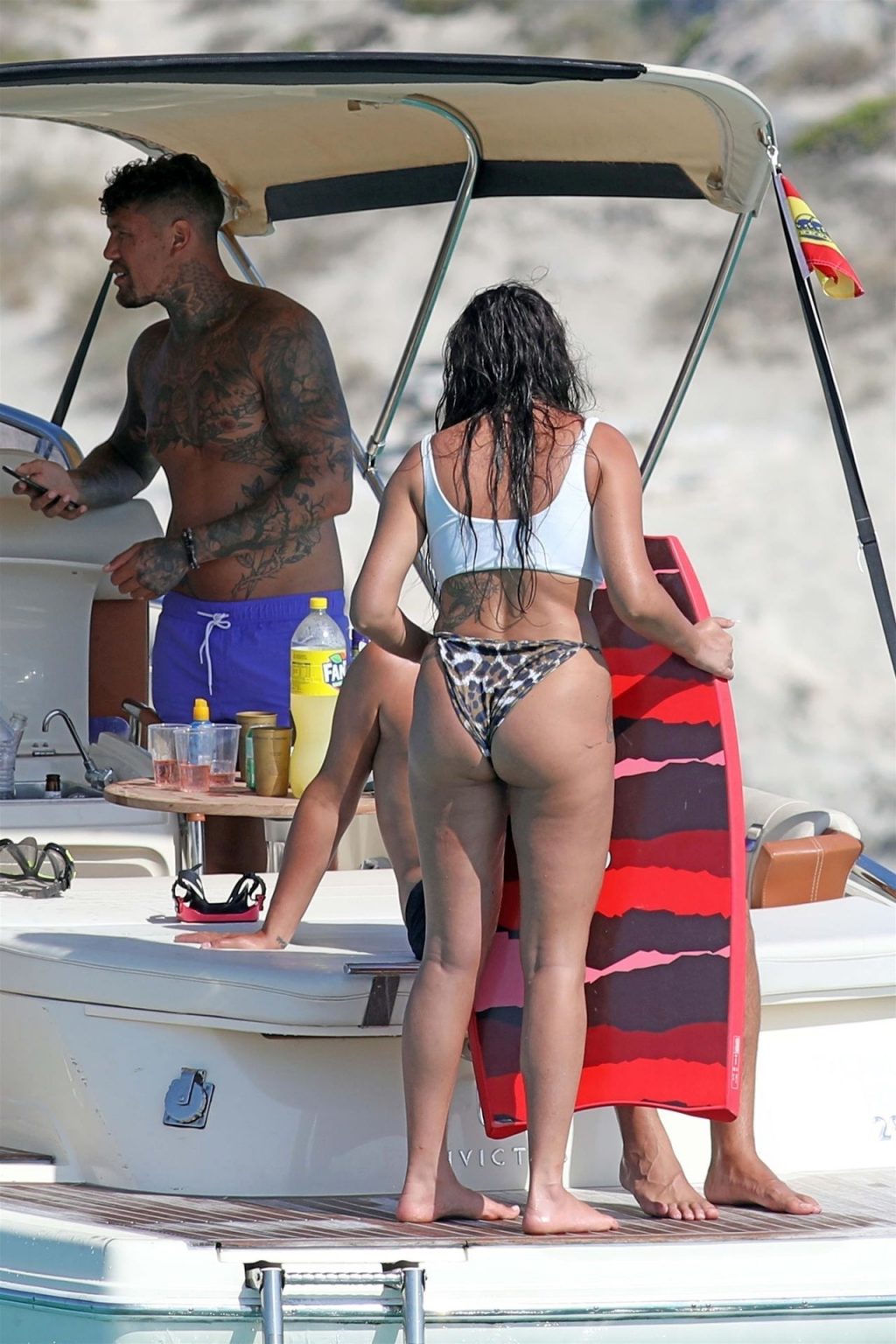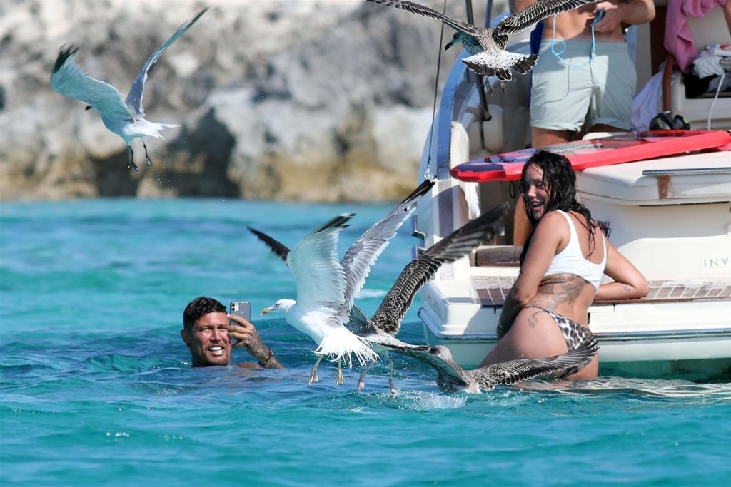 Disfrutando plenamente de su descanso en España, la estrella de reality se quedó sin parte superior, tomando el sol y disfrutando de un baño en el Mar Mediterráneo con su nuevo novio Liam Beaumont.