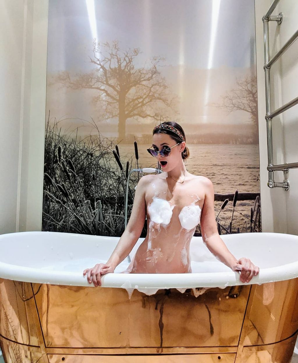 La exitosa modelo inglesa, DJ y actriz Charlotte de Carlais continúa deleitando a sus fans con fotos calientes. A veces aparece completamente desnuda y cubre las partes íntimas de su cuerpo.