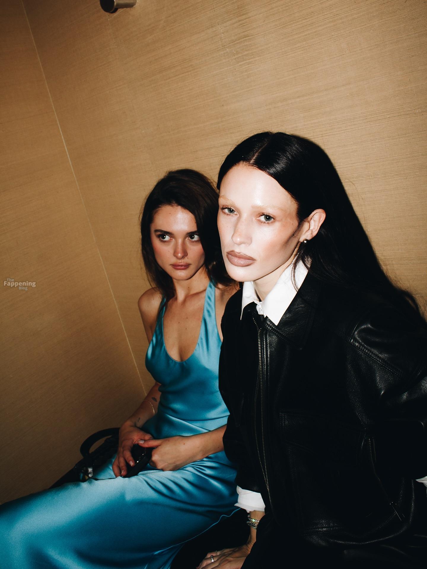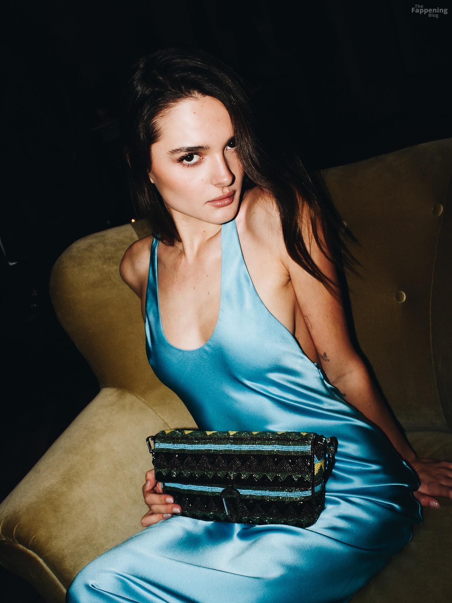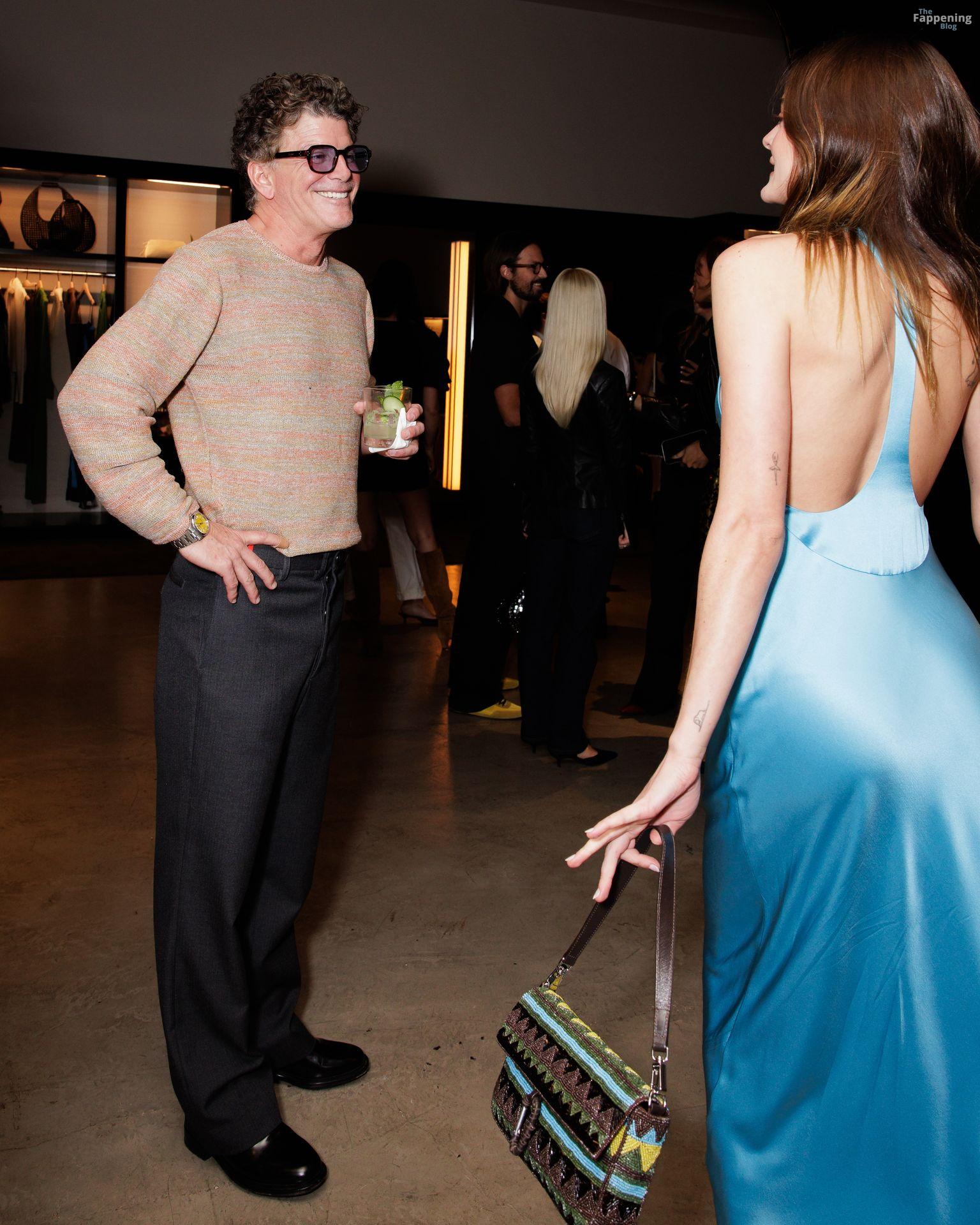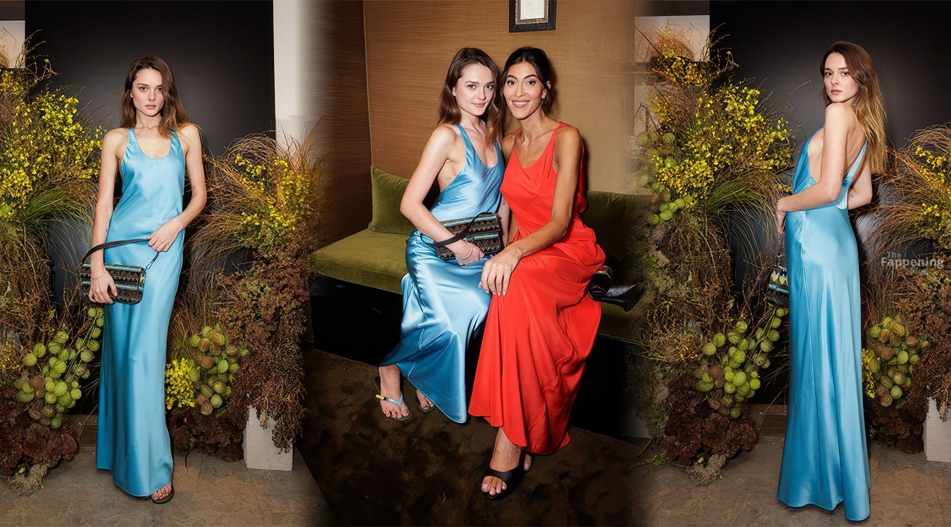 Charlotte Lawrence fue sin sostén en el evento STAUD en LA, sus laterales y pezones asomándose a través de un vestido ajustado de satén.