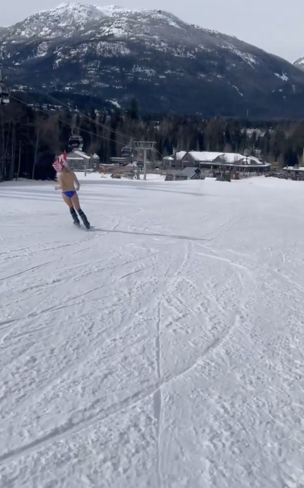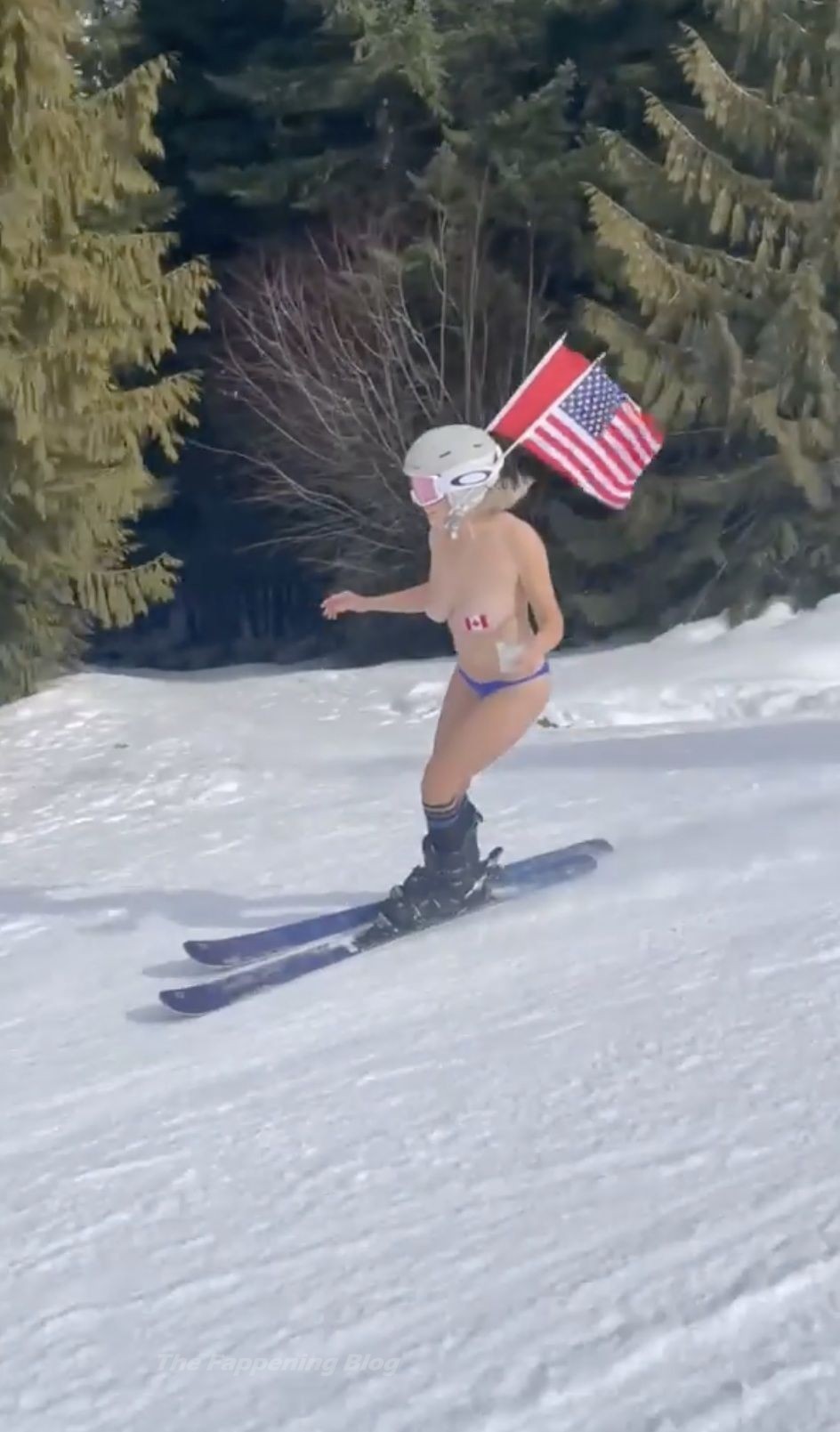Comediante Chelsea Handler disfruta de un día esquiando casi desnuda, cubriendo sus pechos desnudos con pegatinas de Canadá y EE.UU. – Instagram, 25/02/2021.