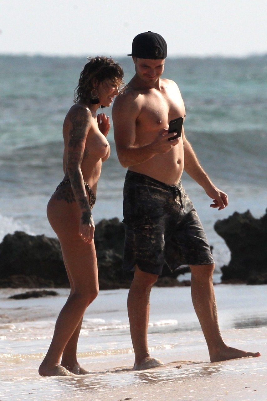 Parece que se tragaron dos boyas. Y se pueden ver las grandes cicatrices. Puede que sea "sin parte superior", pero está a años luz de ser "sexy". Uärgh.