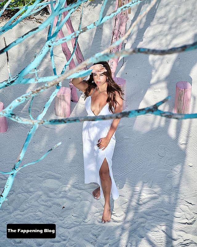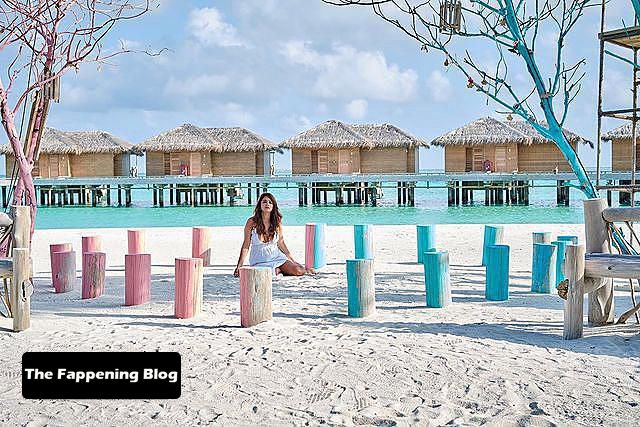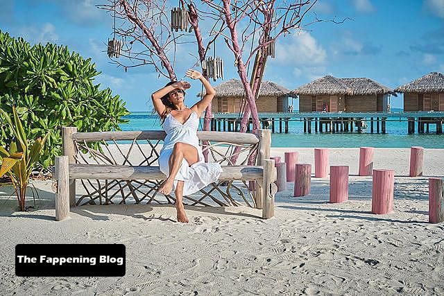 Chetna Pande luce deslumbrante con un vestido maxi blanco escotado durante su sesión sexy en la playa de Maldivas.