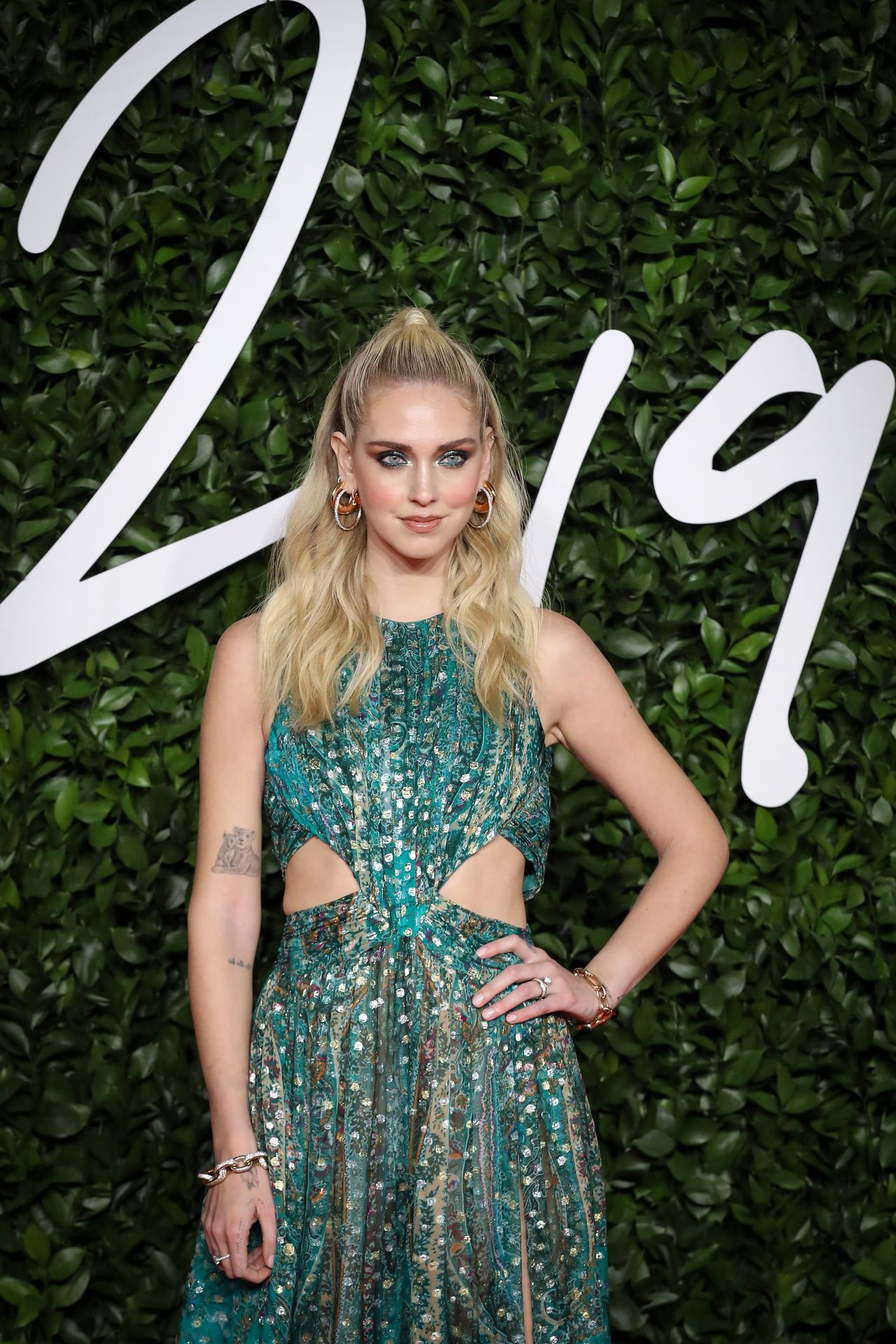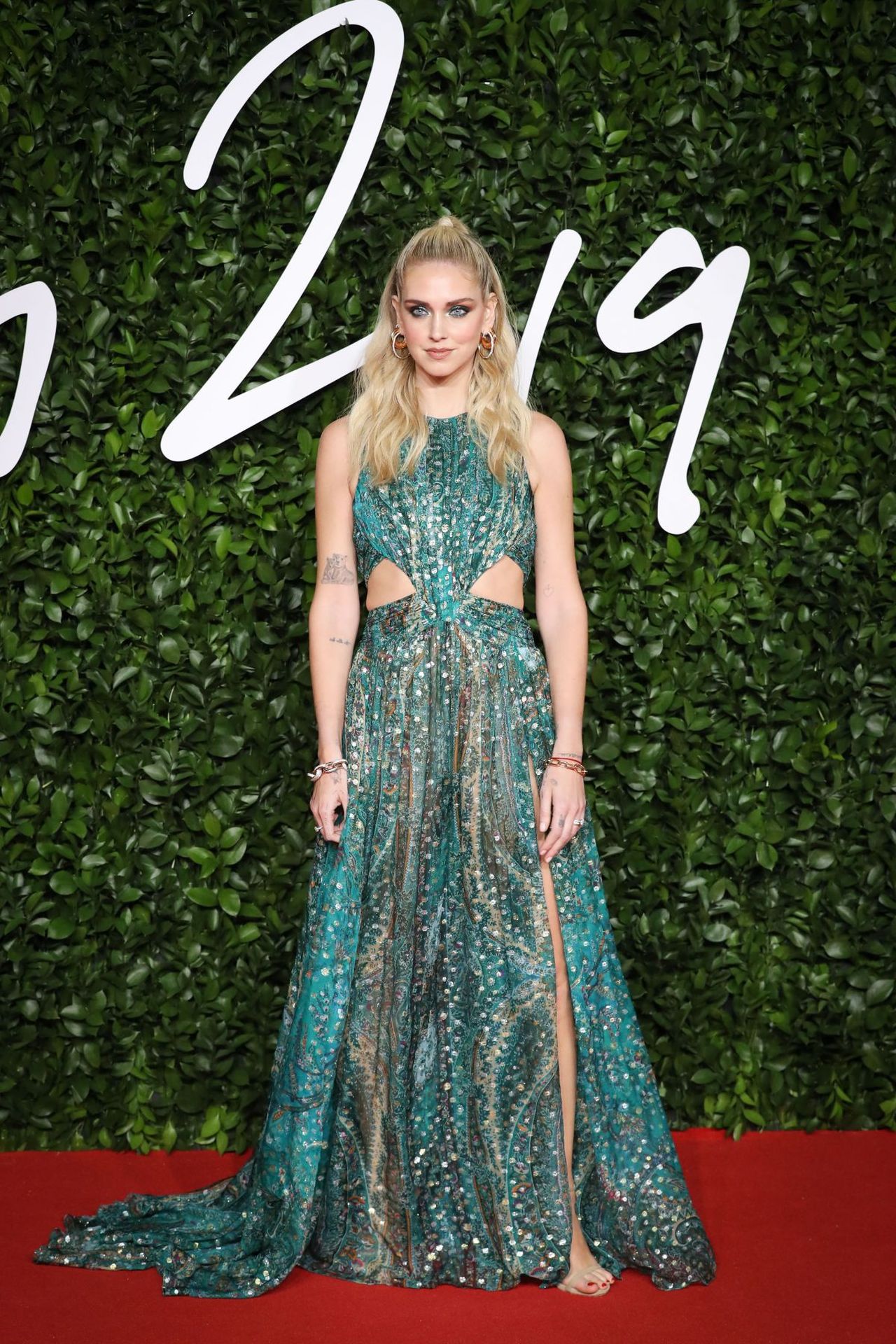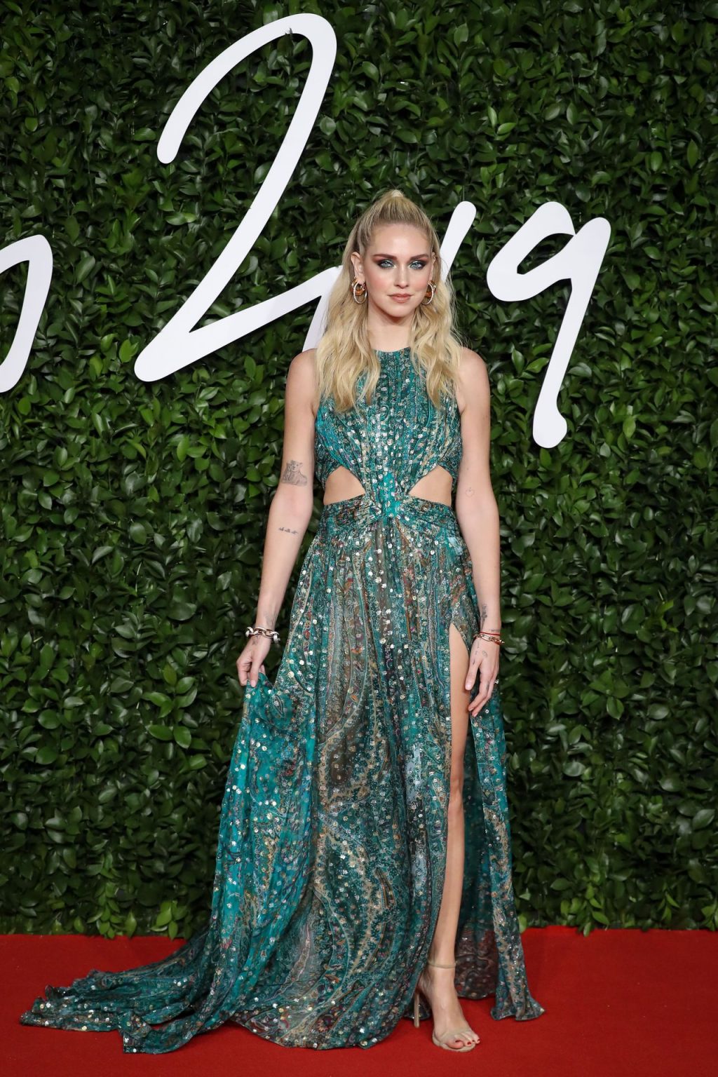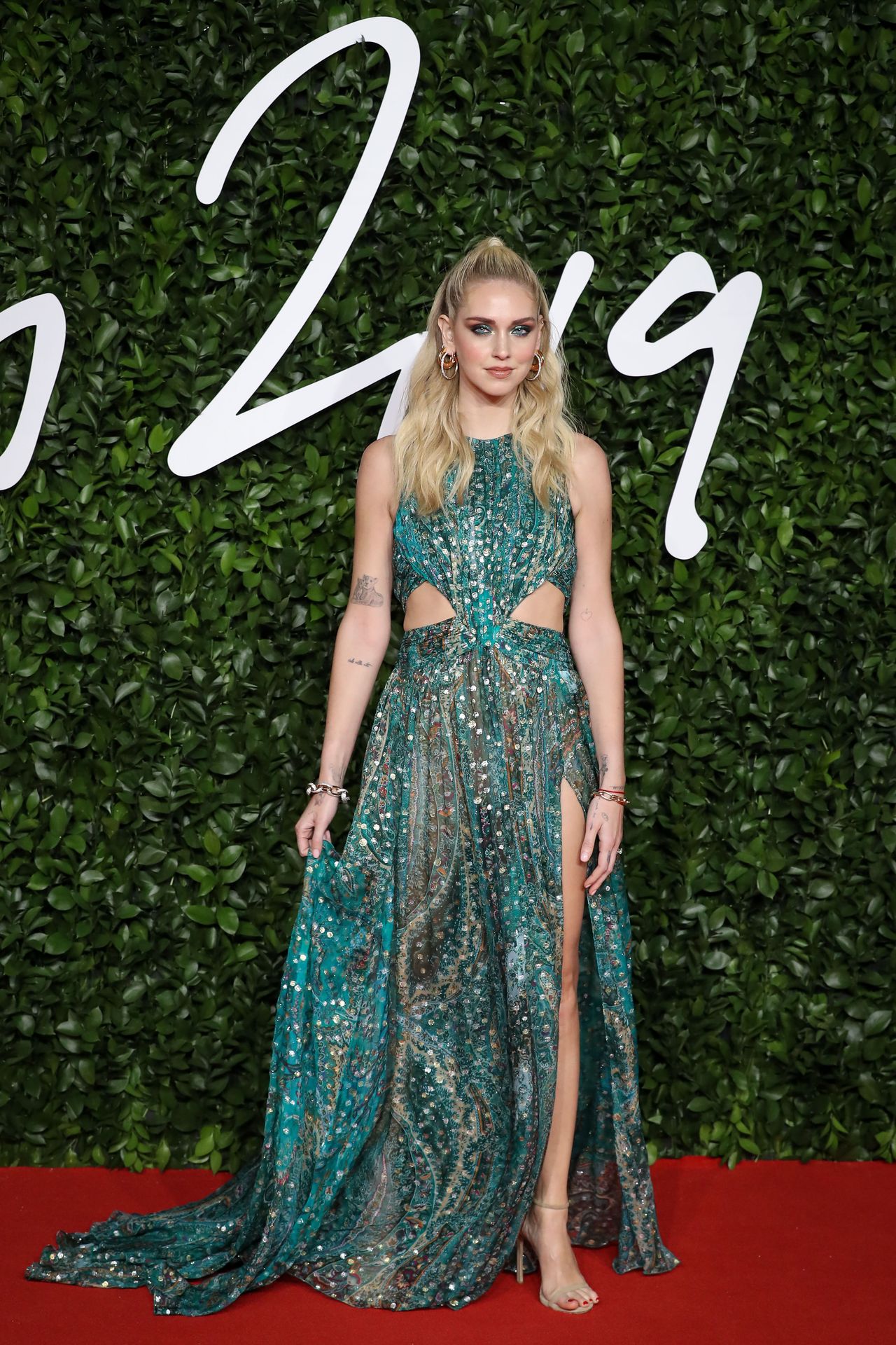 La estilizada bloguera de moda italiana Chiara Ferragni fue fotografiada en la alfombra roja de The Fashion Awards 2019 en el Royal Albert Hall de Londres, 12/02/2019.