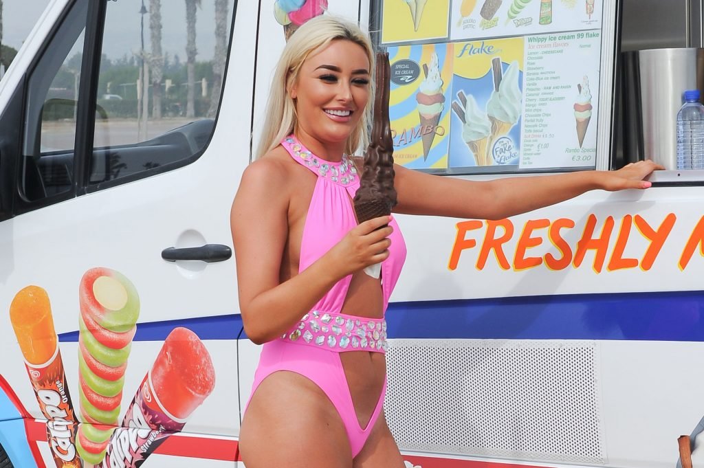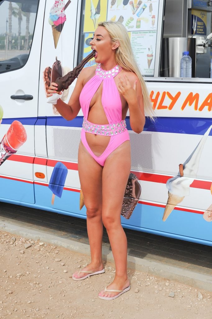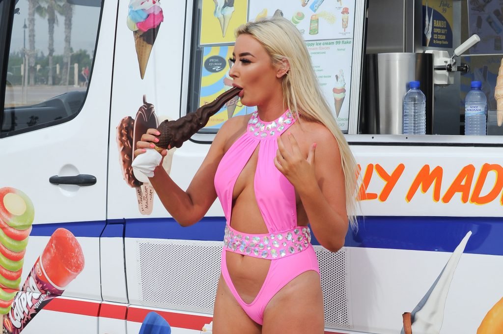 Love Island la estrella Chloe Crowhurst (21) disfruta de un largo helado cubierto de chocolate mientras está de vacaciones en Chipre, 19/04/2018. En lugar de helado, todos quieren ver otra cosa en su boca.