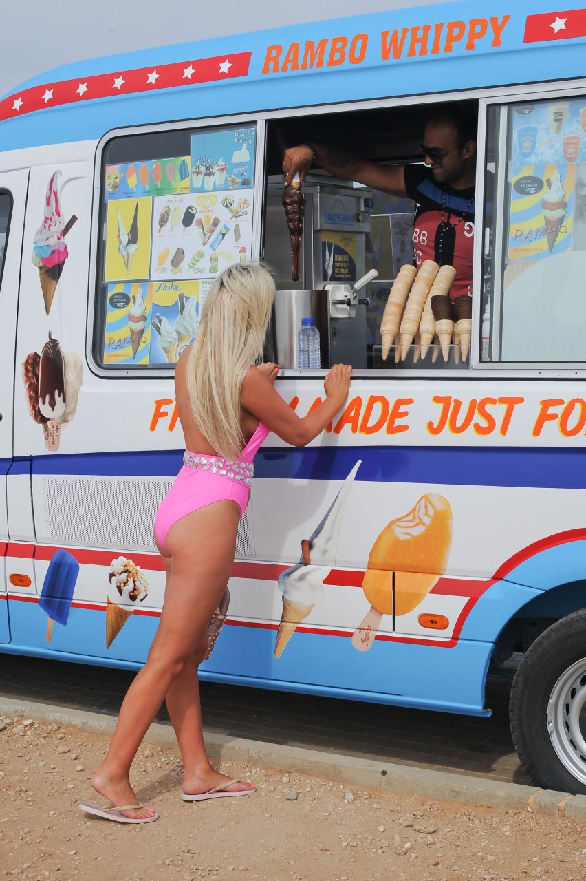 Love Island la estrella Chloe Crowhurst (21) disfruta de un largo helado cubierto de chocolate mientras está de vacaciones en Chipre, 19/04/2018. En lugar de helado, todos quieren ver otra cosa en su boca.