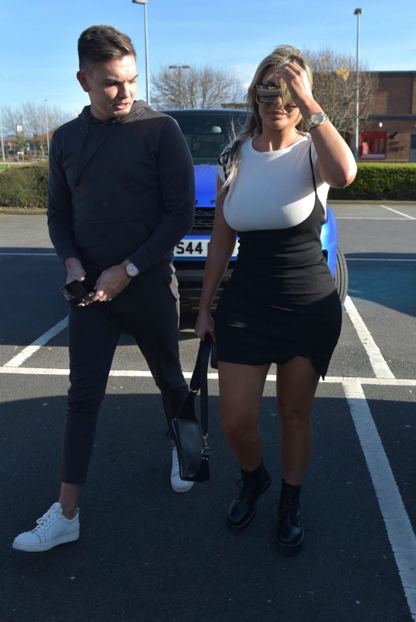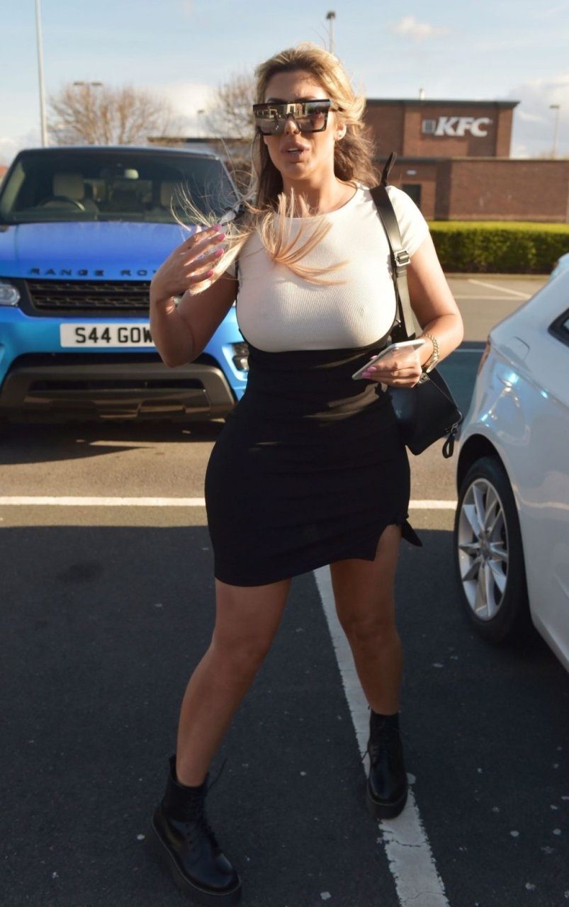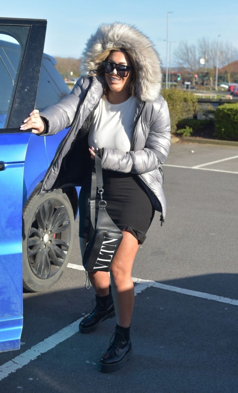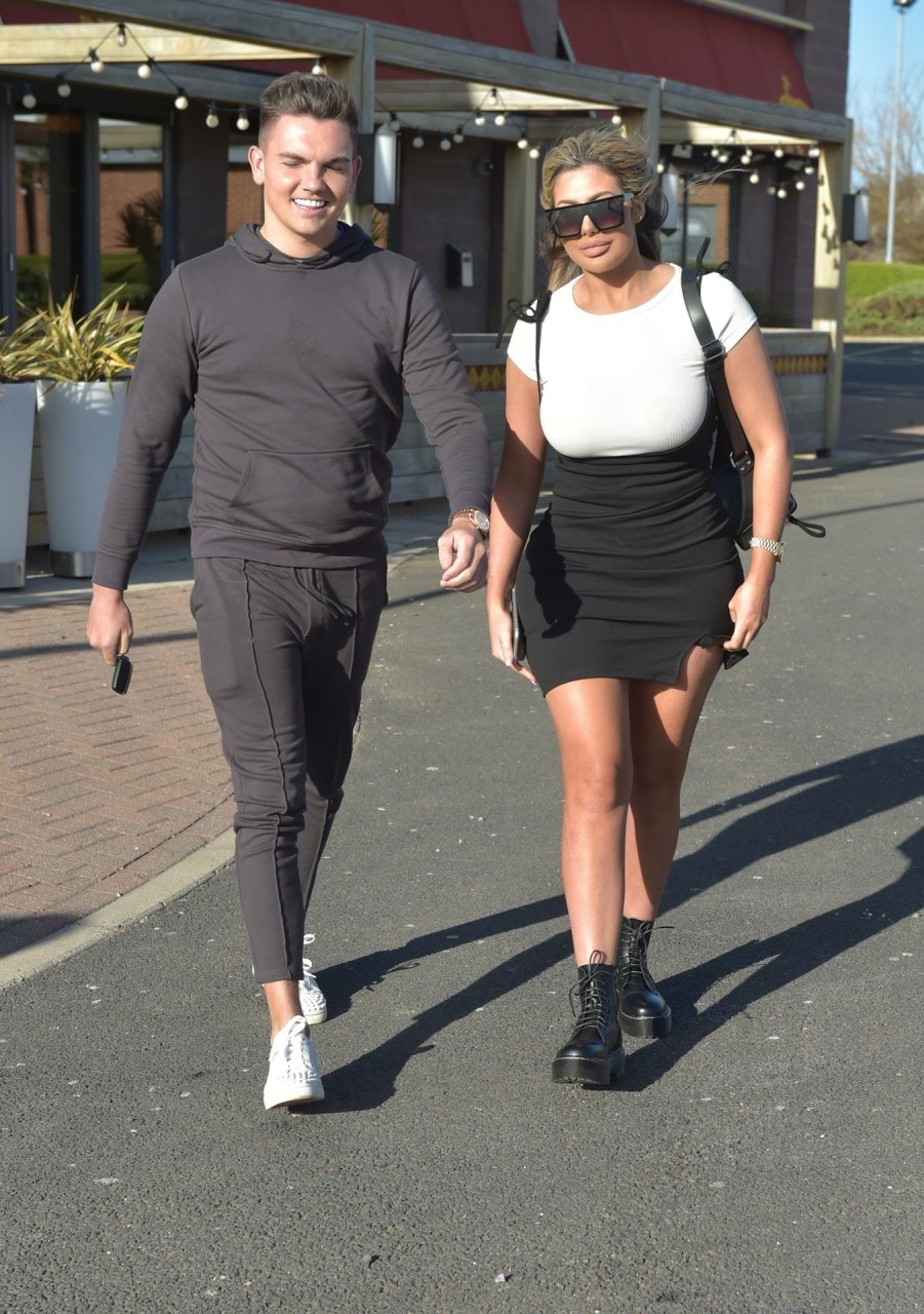 Chloe Ferry fue sin sujetador para un viaje a Chiquitos con su novio Sam Gowland y su hermano, 15/03/2019. Chloe y Sam disfrutaron de una sesión de compras en Teesside Shopping Park antes de detenerse a comer en Chiquitos en Stockton. La pareja salió en el nuevo Range Rover Sport Blue Wrapped de Sam que costó 70k.