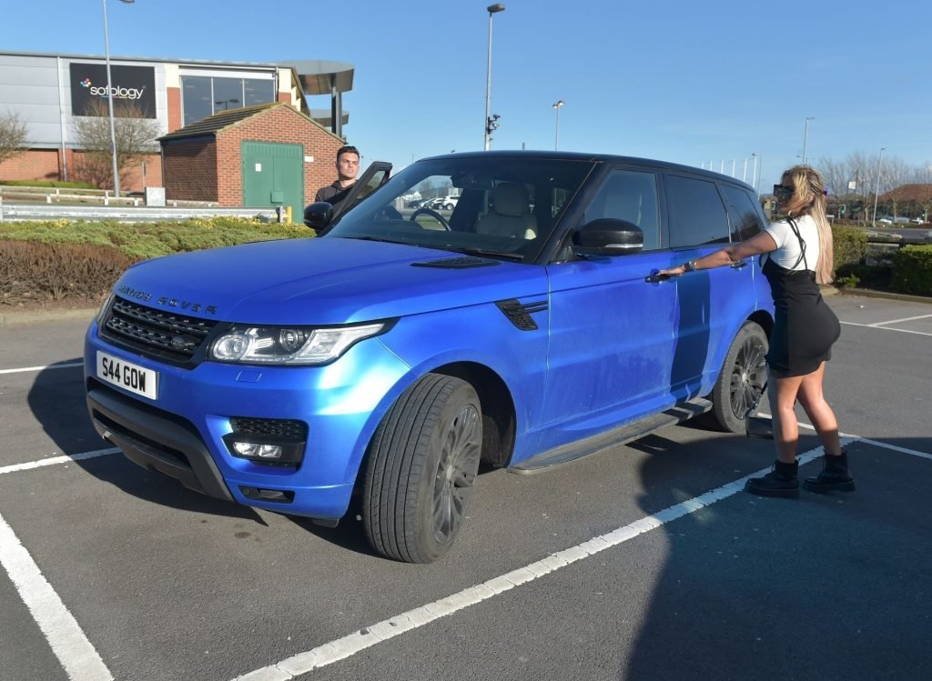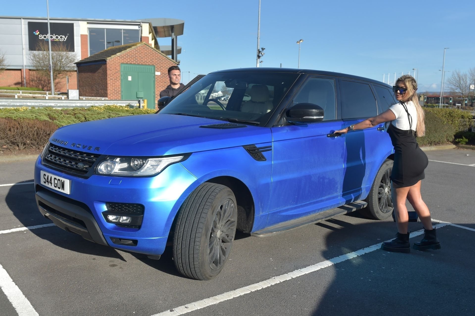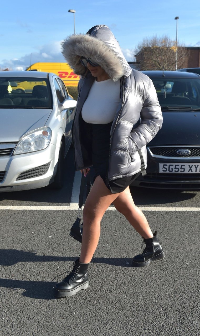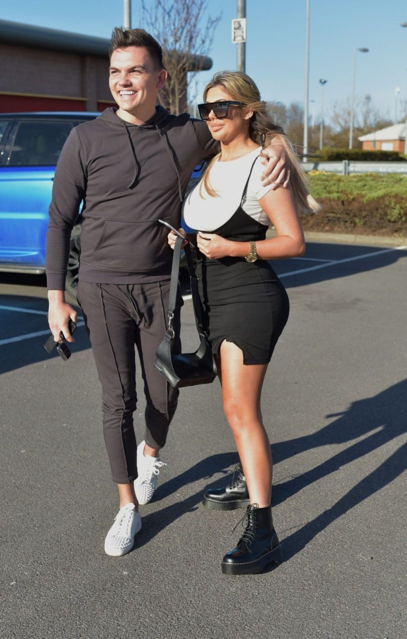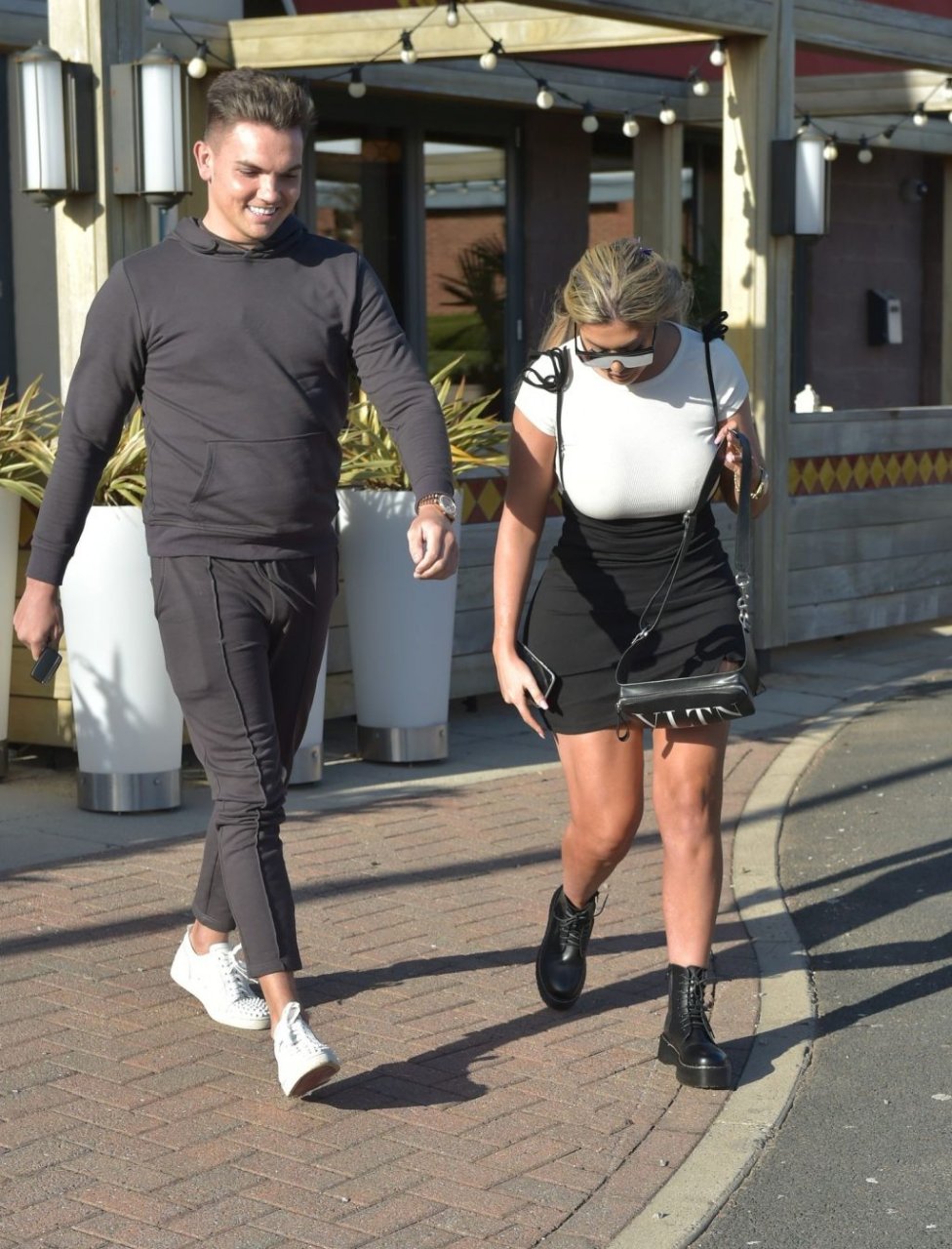 Chloe Ferry fue sin sujetador para un viaje a Chiquitos con su novio Sam Gowland y su hermano, 15/03/2019. Chloe y Sam disfrutaron de una sesión de compras en Teesside Shopping Park antes de detenerse a comer en Chiquitos en Stockton. La pareja salió en el nuevo Range Rover Sport Blue Wrapped de Sam que costó 70k.