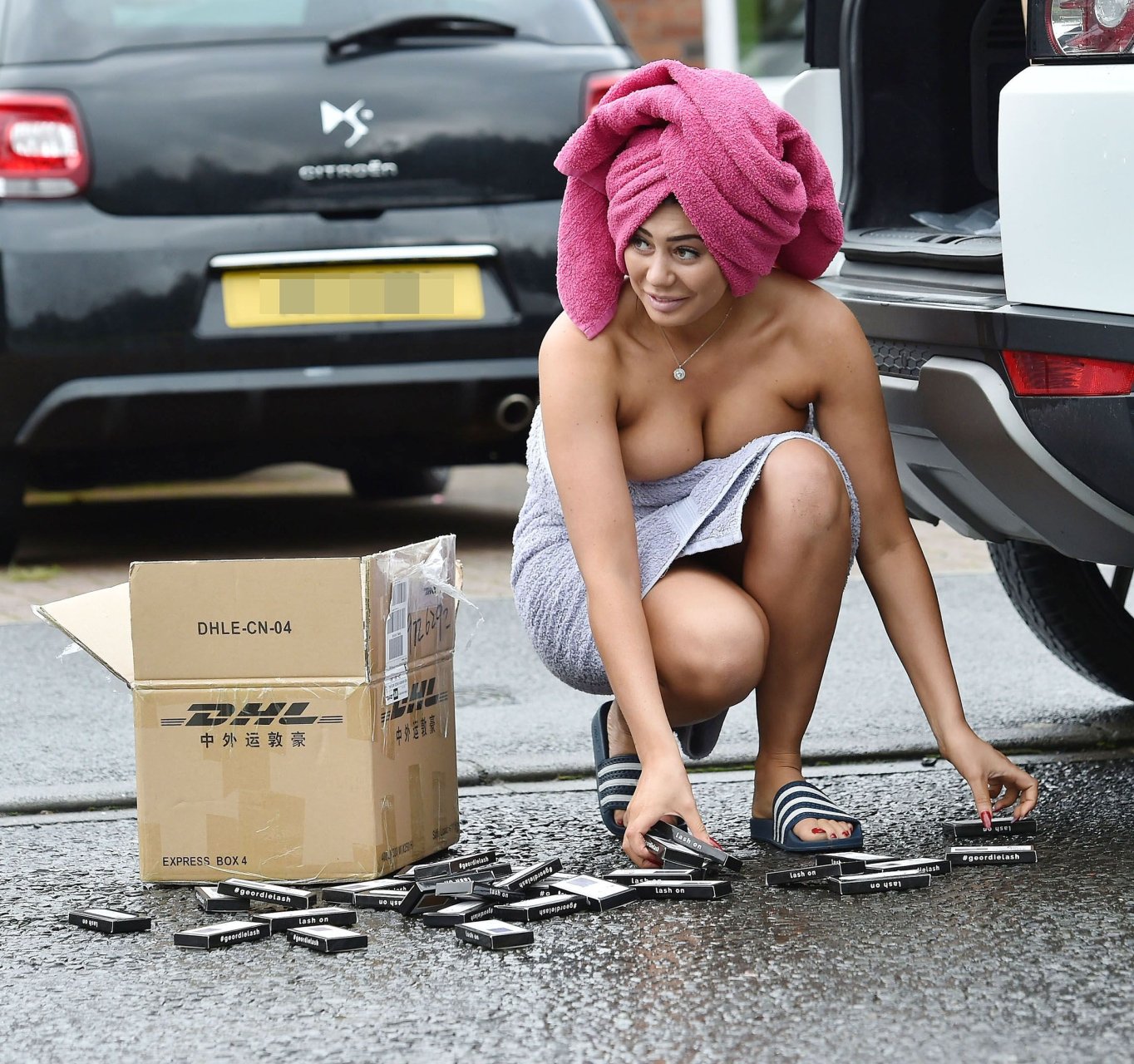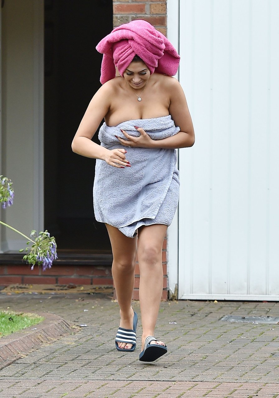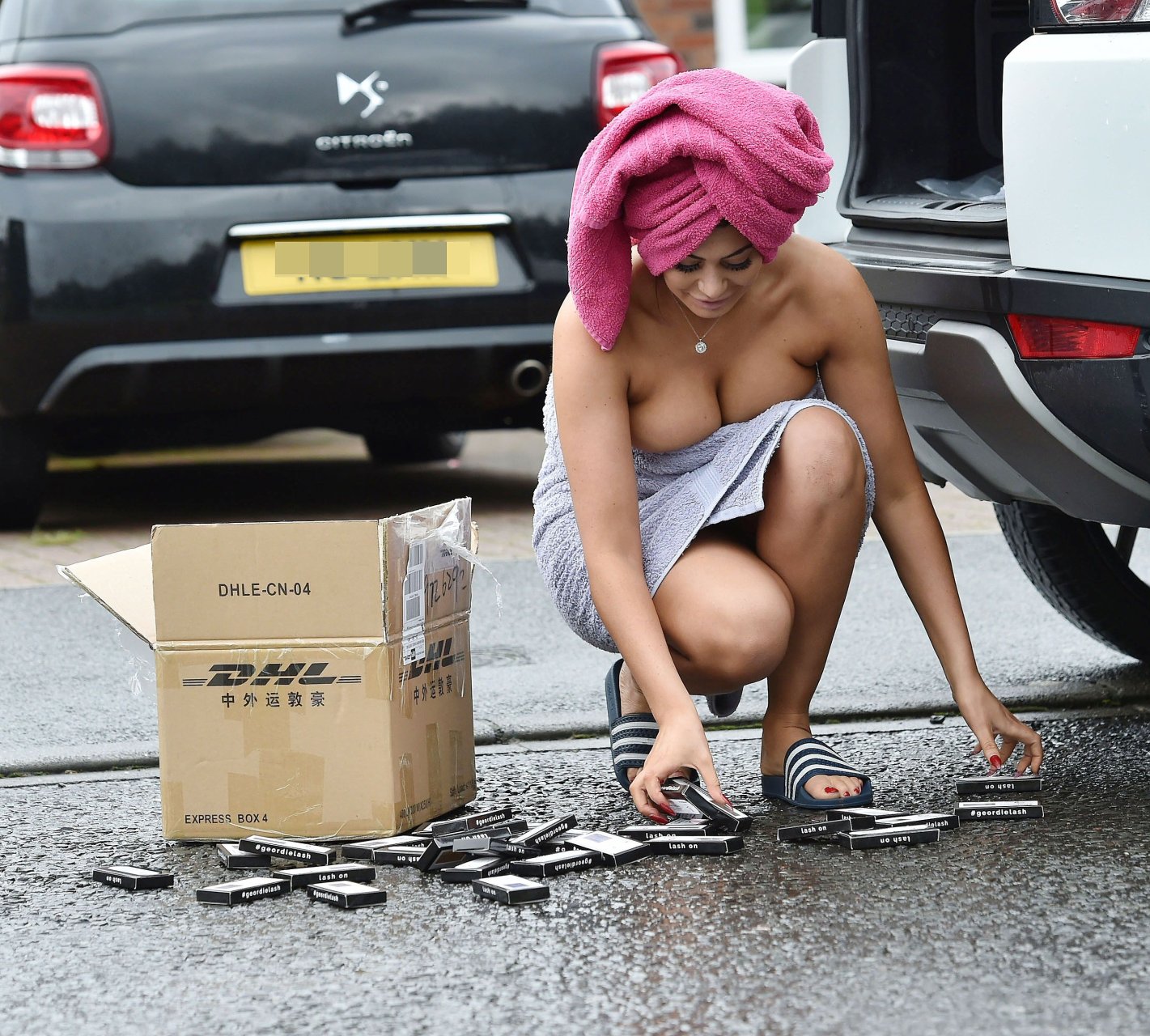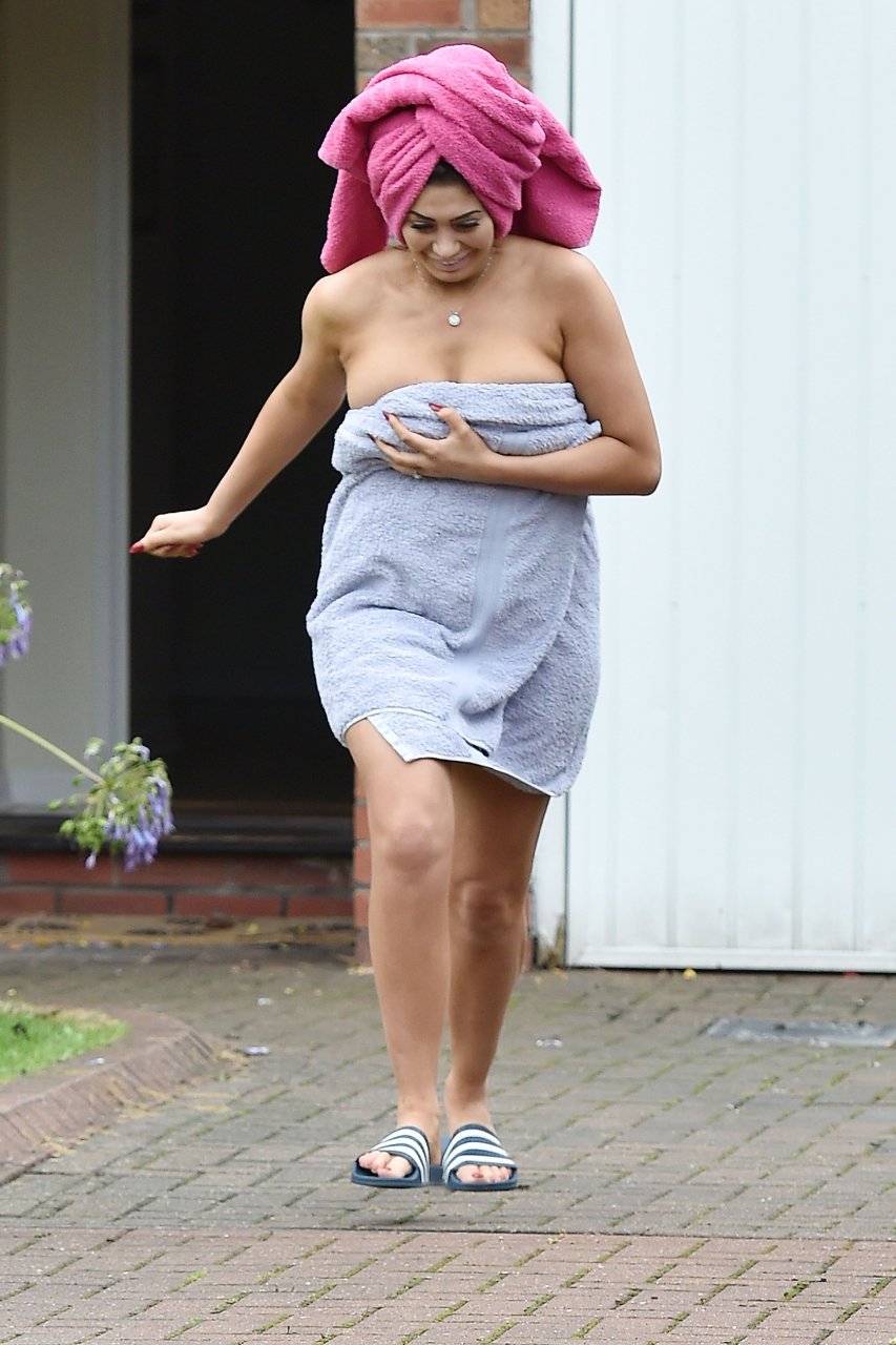 Desnuda cubierta con una toalla Chloe Ferry sale de su casa en Newcastle, 16/10/2016. Chloe Ferry es una estrella británica de reality (Geordie Shore). Edad: 21.