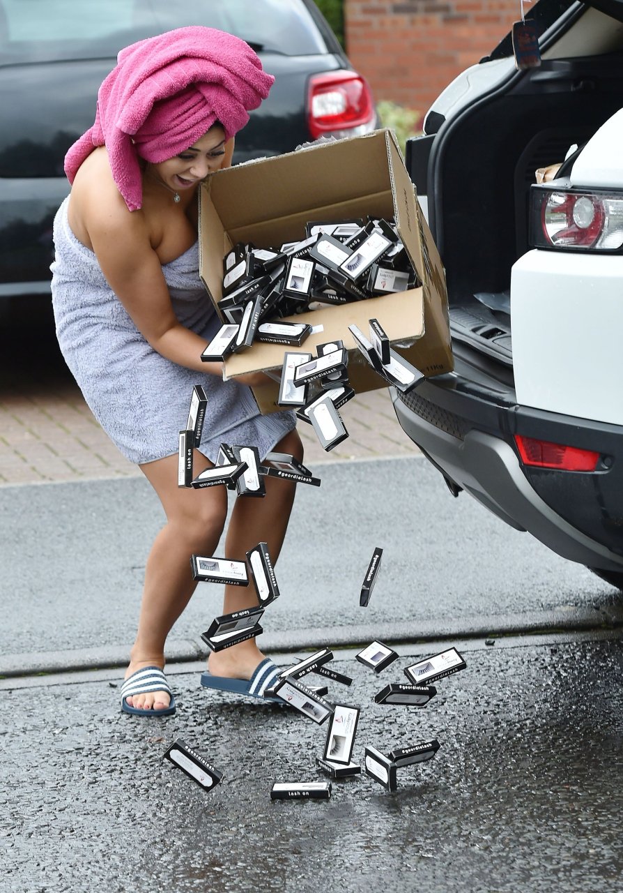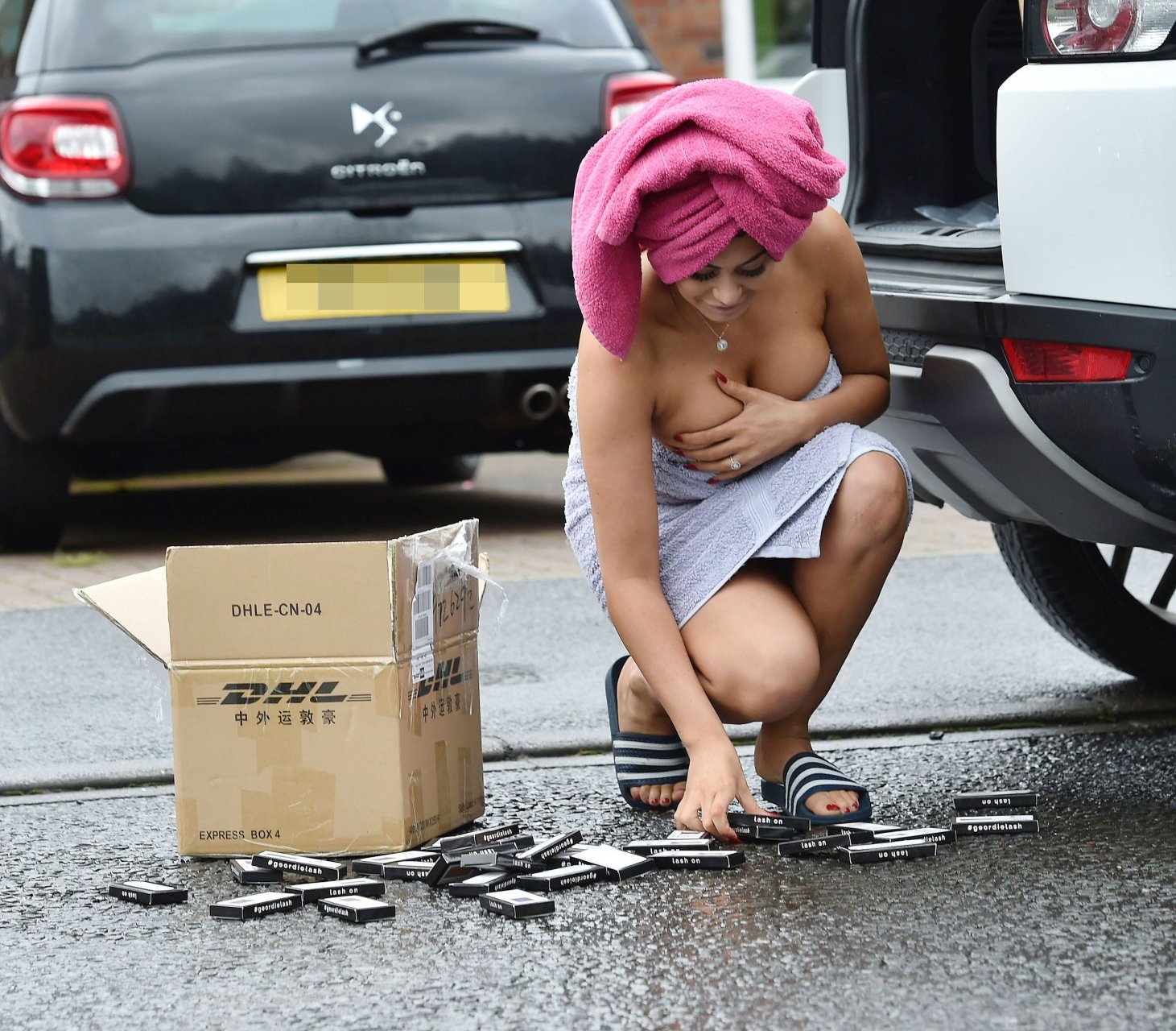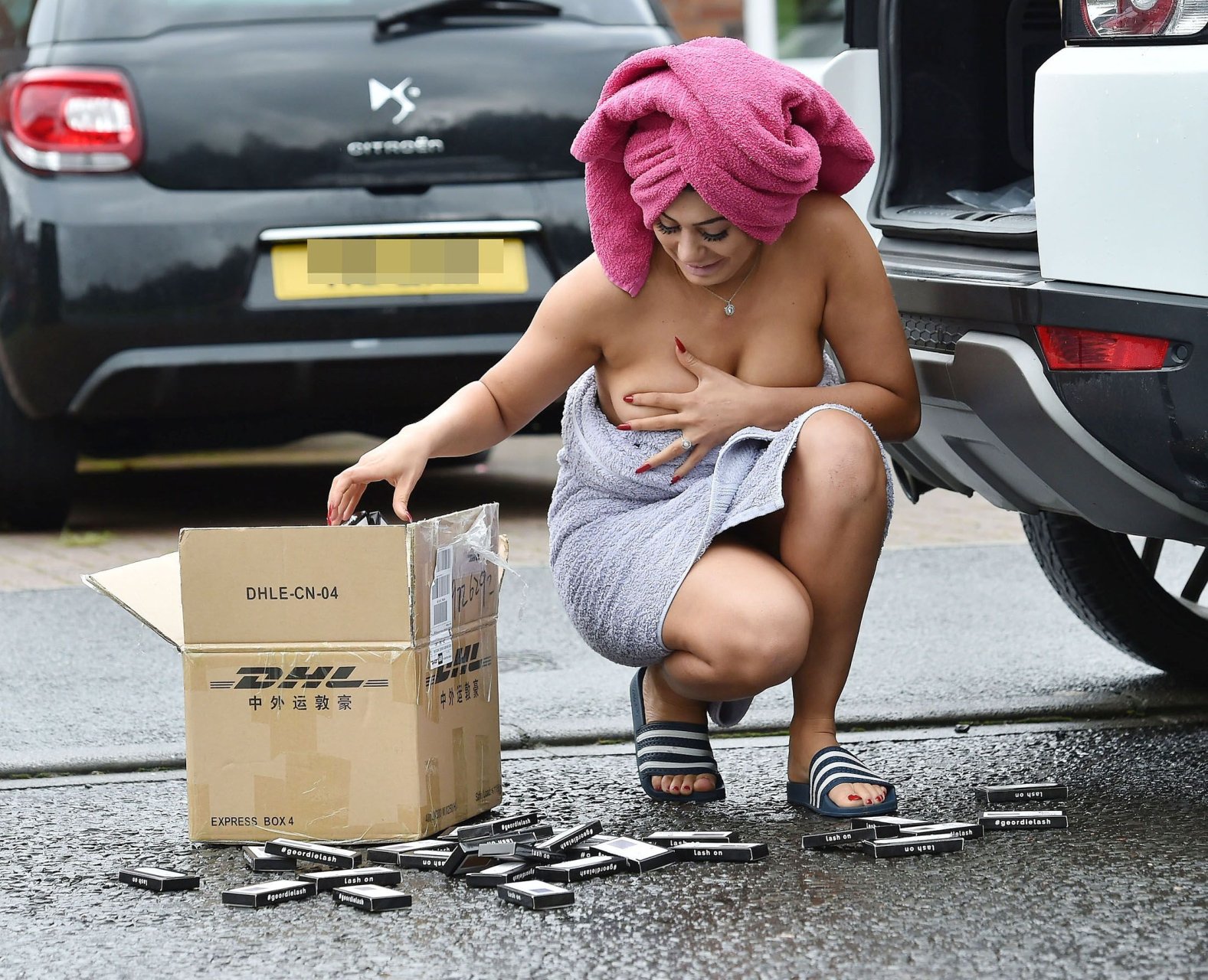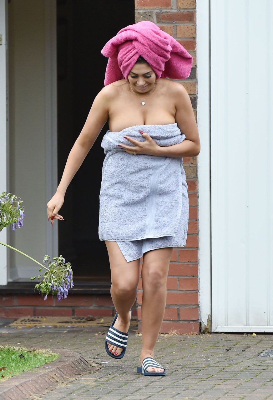 Desnuda cubierta con una toalla Chloe Ferry sale de su casa en Newcastle, 16/10/2016. Chloe Ferry es una estrella británica de reality (Geordie Shore). Edad: 21.