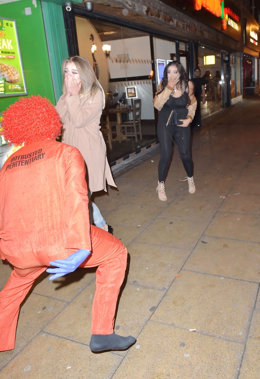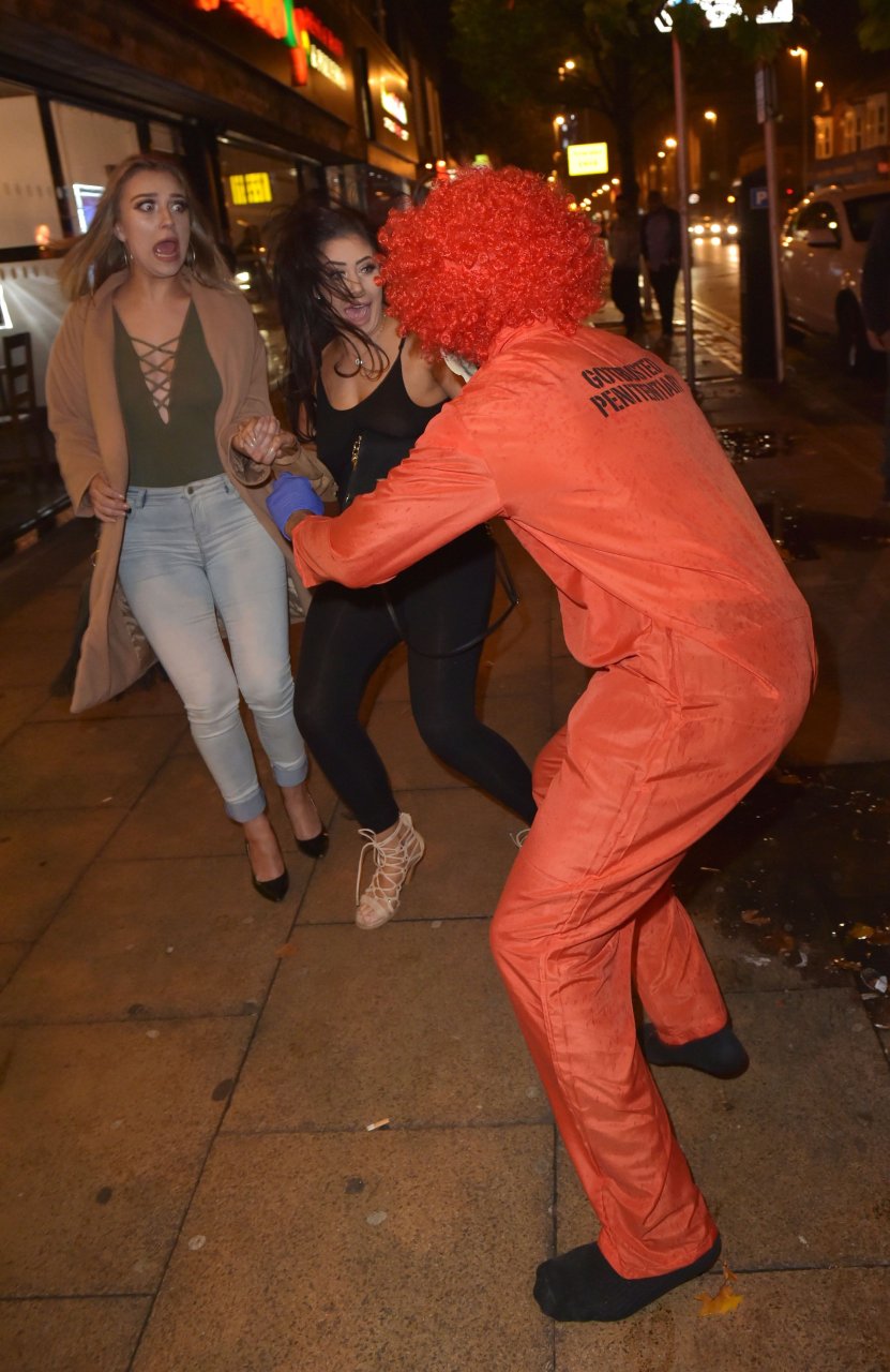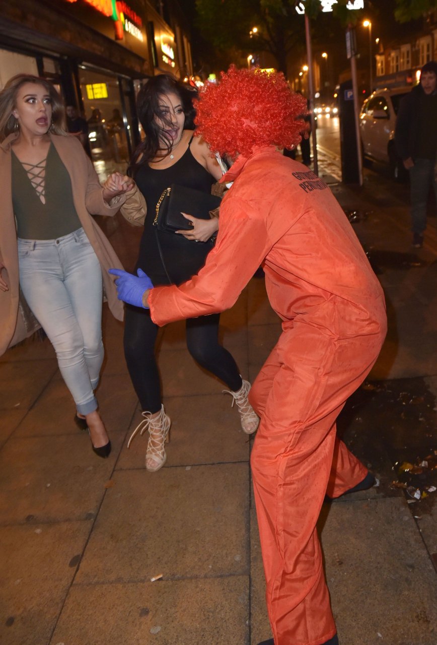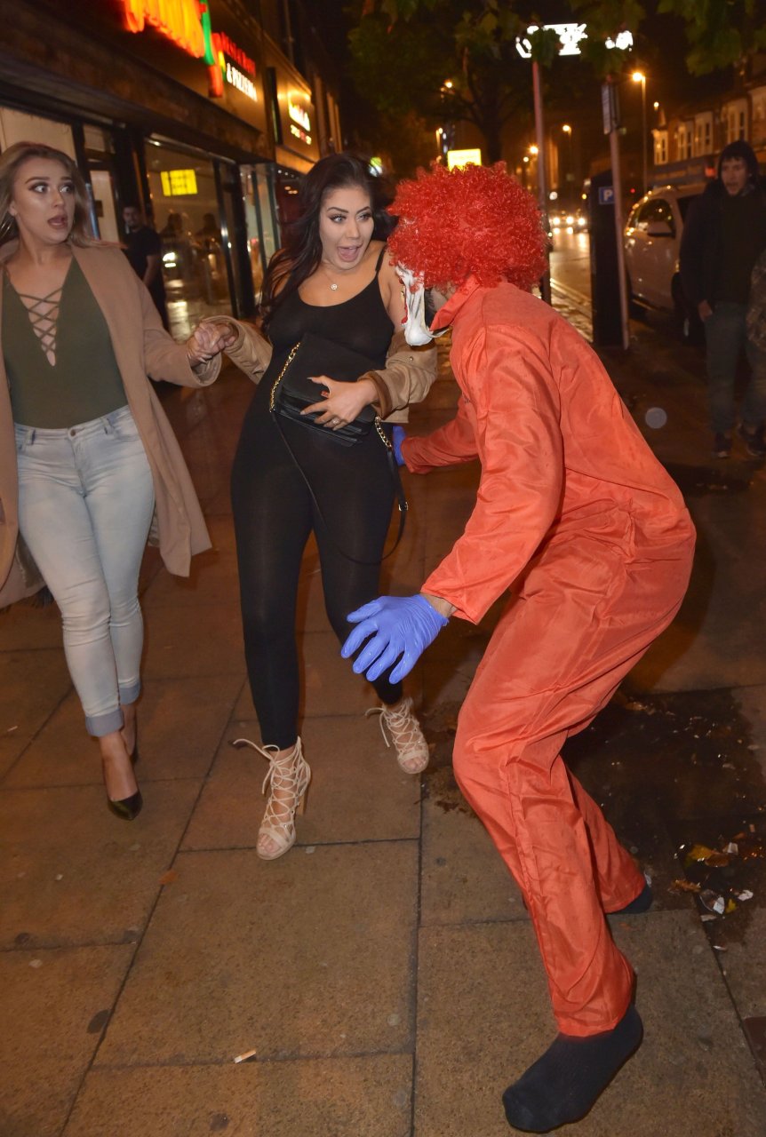 Chloe Ferry atacada por un payaso asesino en Middlesbrough, 13/10/2016. ¡Pechos perforados visibles! Chloe Ferry es una estrella británica de reality (Geordie Shore). Edad: 21.