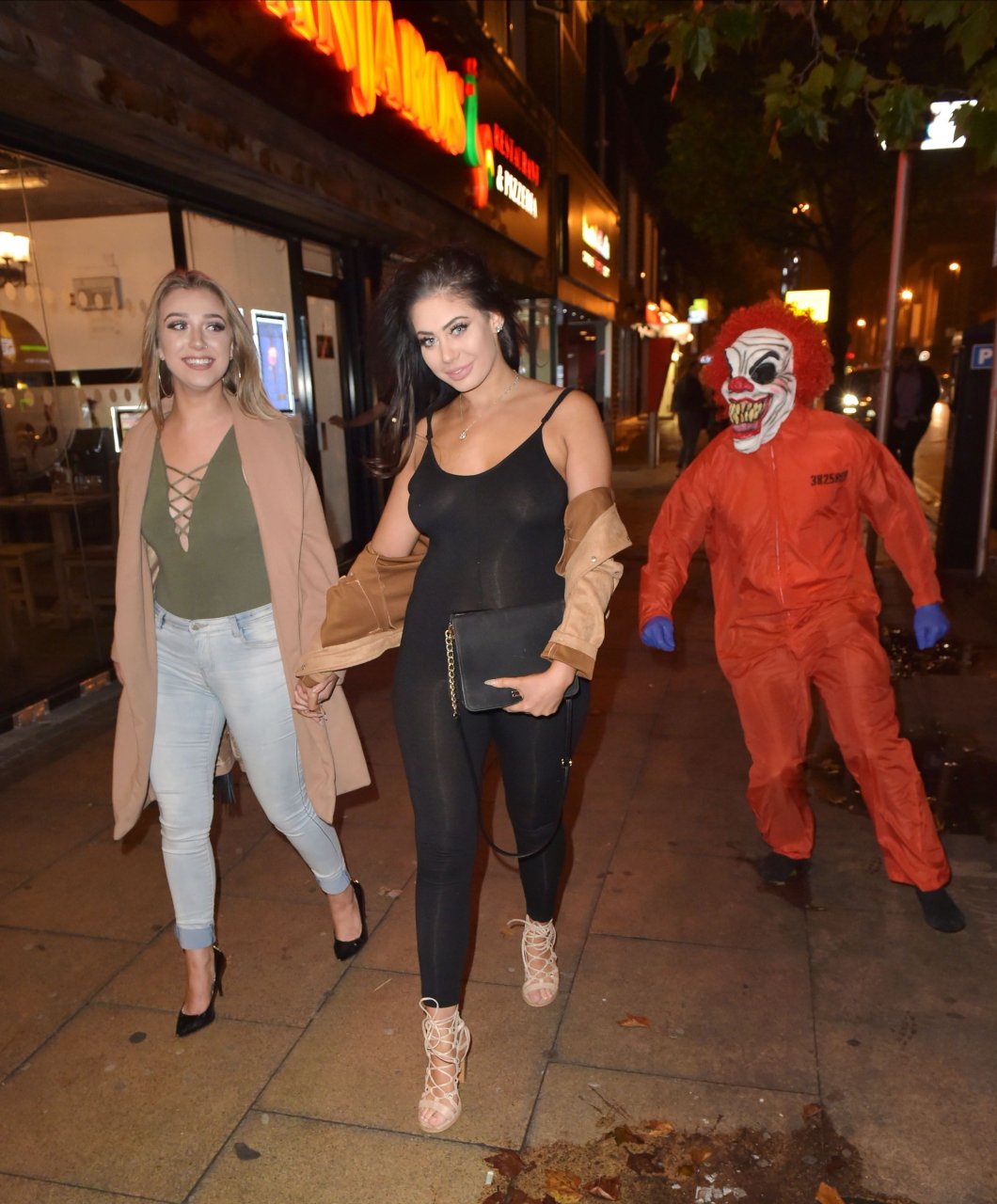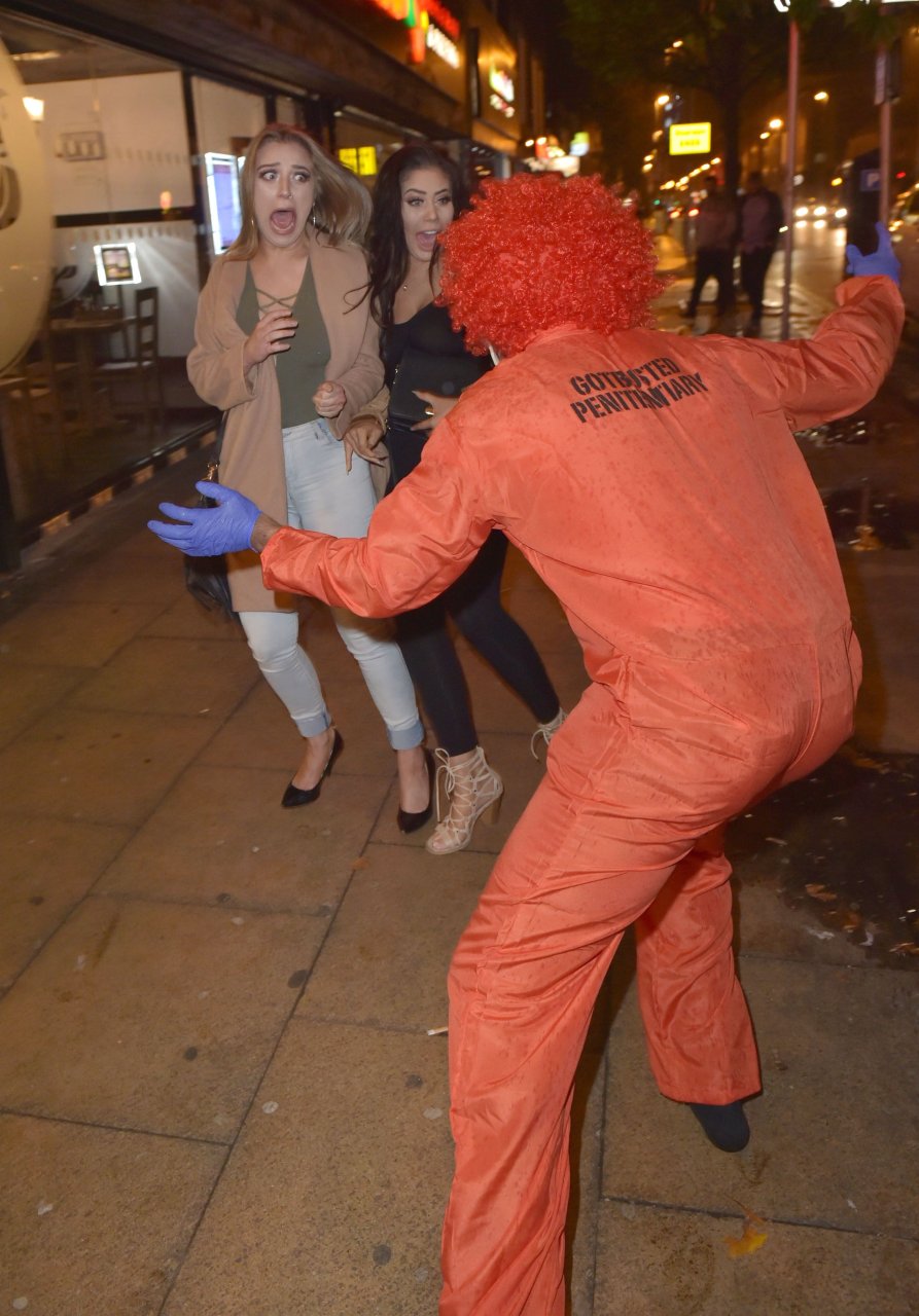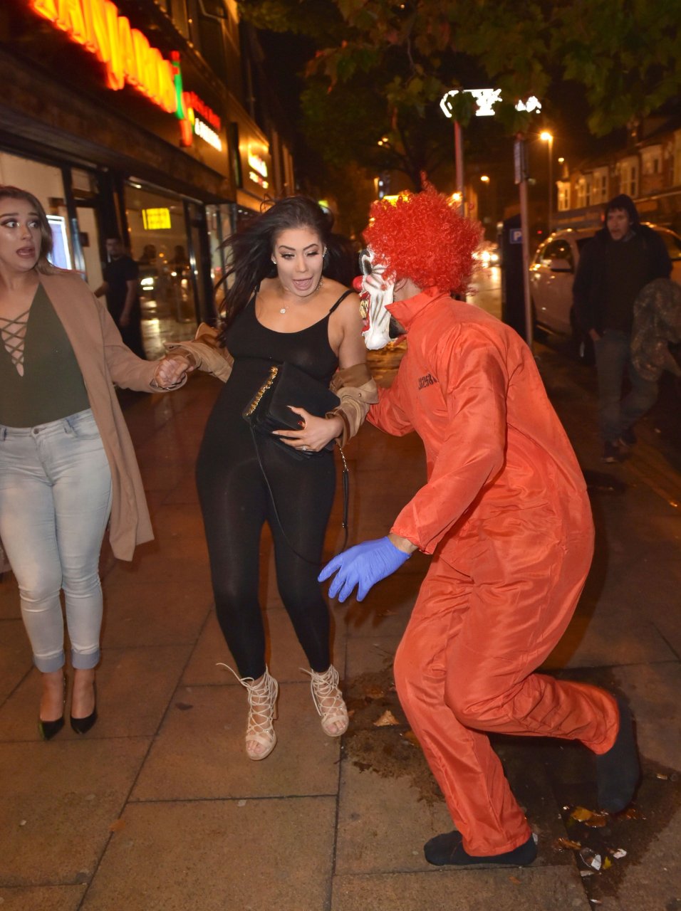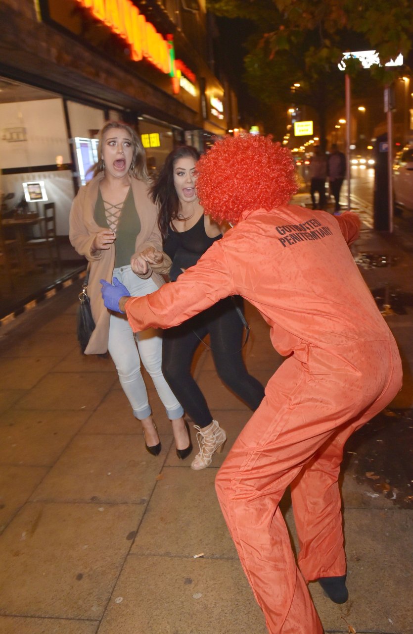 Chloe Ferry atacada por un payaso asesino en Middlesbrough, 13/10/2016. ¡Pechos perforados visibles! Chloe Ferry es una estrella británica de reality (Geordie Shore). Edad: 21.