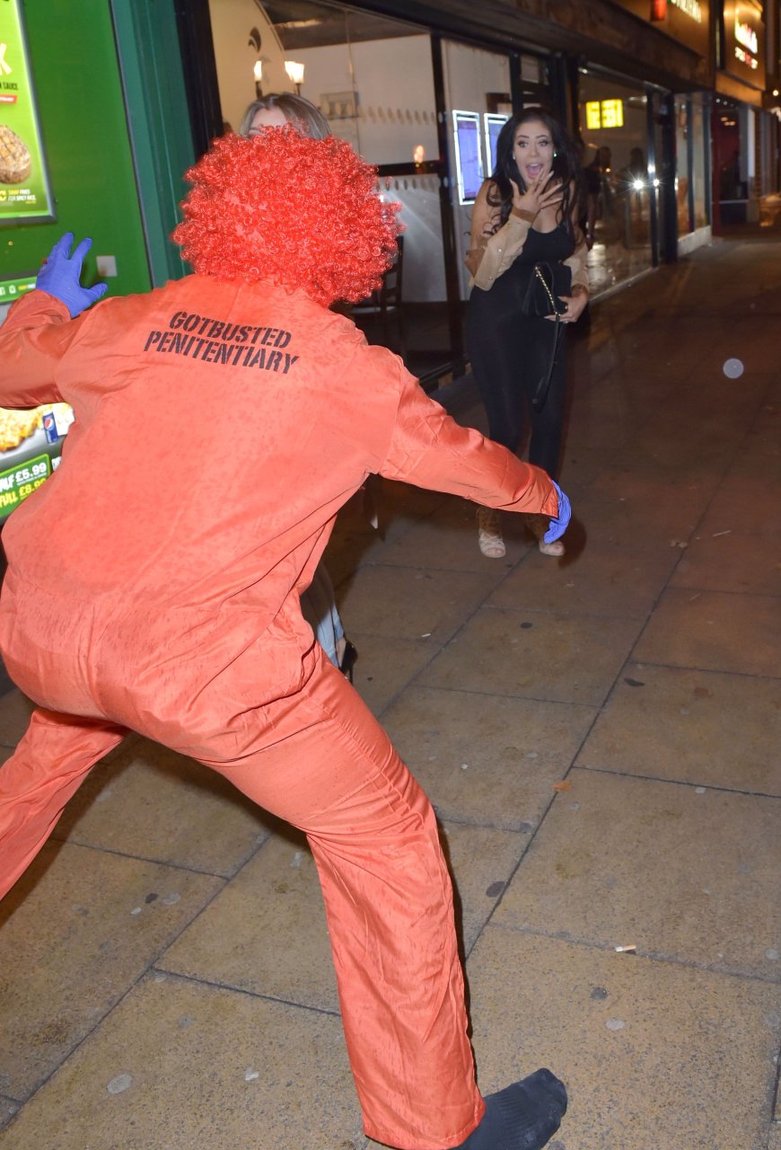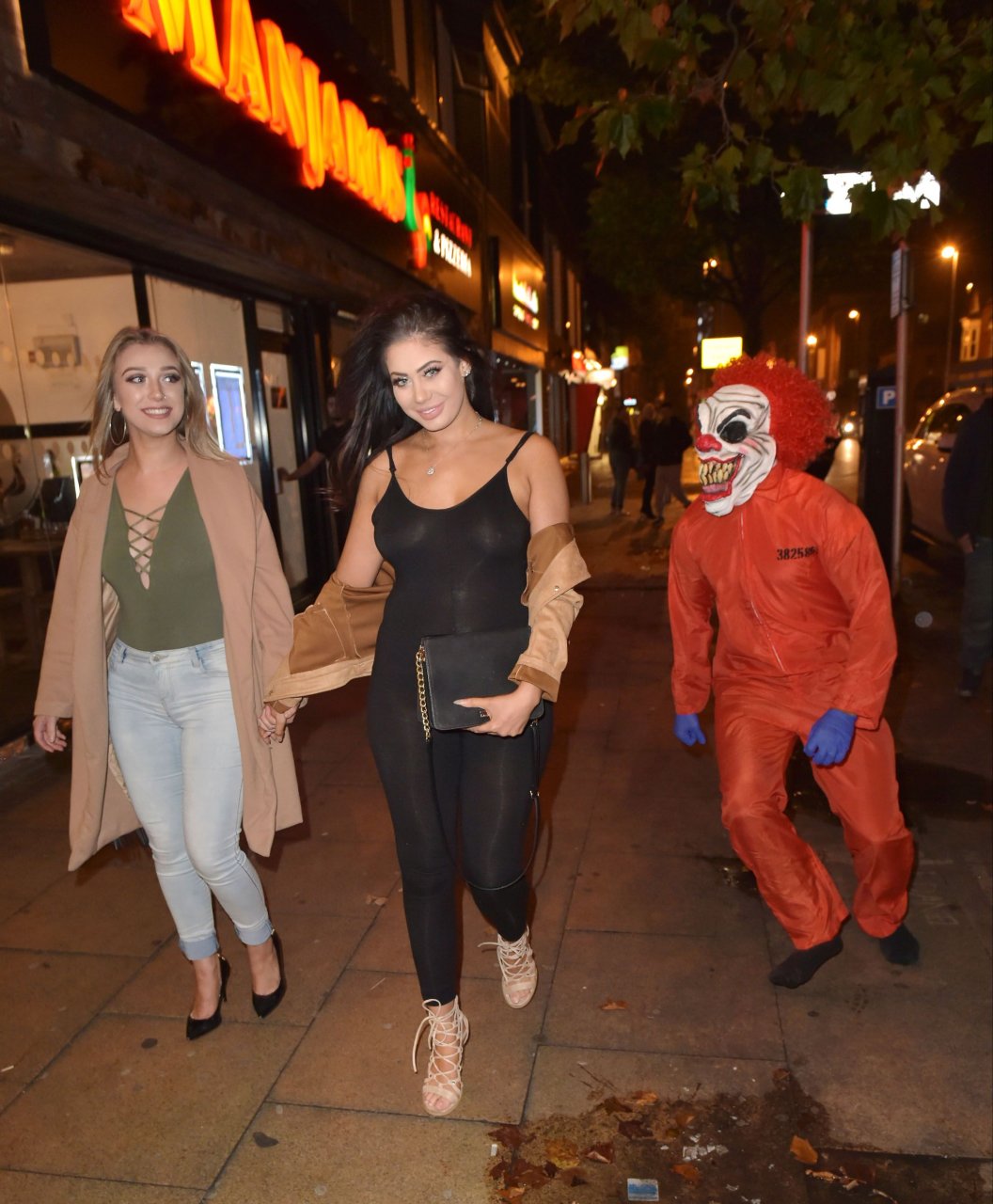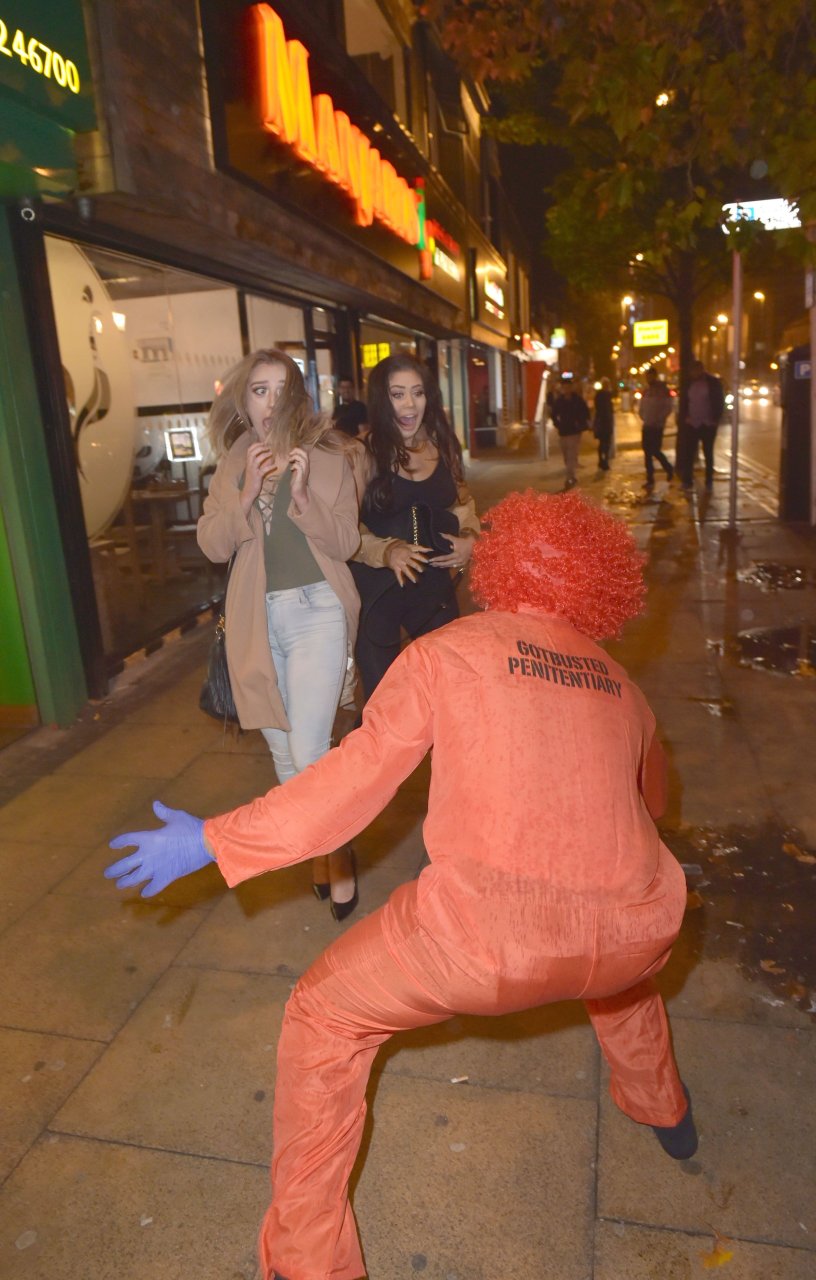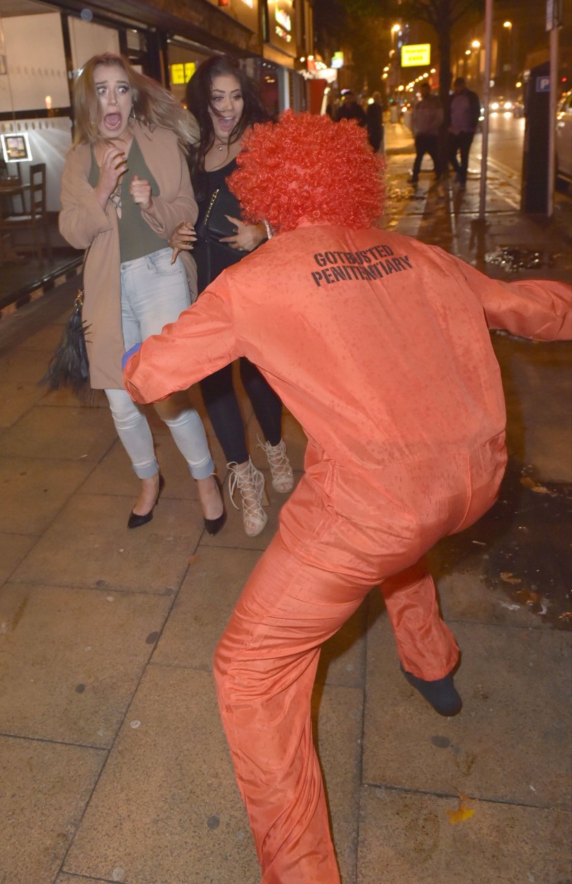 Chloe Ferry atacada por un payaso asesino en Middlesbrough, 13/10/2016. ¡Pechos perforados visibles! Chloe Ferry es una estrella británica de reality (Geordie Shore). Edad: 21.