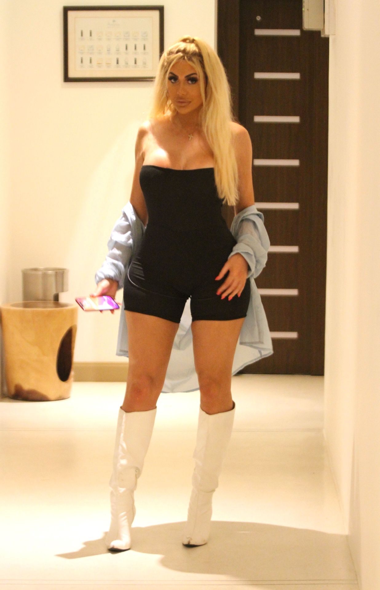 La sexy estrella de “Geordie Shore” ha cambiado sus habituales diversiones y fiestas nocturnas en Newcastle por el Lejano Oriente y se puso su pequeño mono negro y sus sexys botas blancas lista para salir de fiesta.