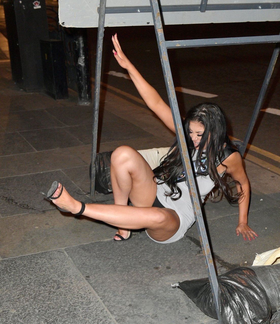 Parece que esta chica siempre es fotografiada demasiado borracha para mantenerse de pie y frecuentemente en el suelo con las piernas abiertas mostrando todo... ¡Creo que todas necesitan una intervención!