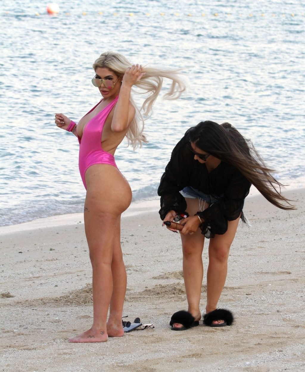 Es hora de que la sexy estrella de Geordie Shore, Chloe Ferry, salga a la playa y presuma de esa voluptuosa figura suya mientras está de vacaciones en Dubái, 15/10/2019.
