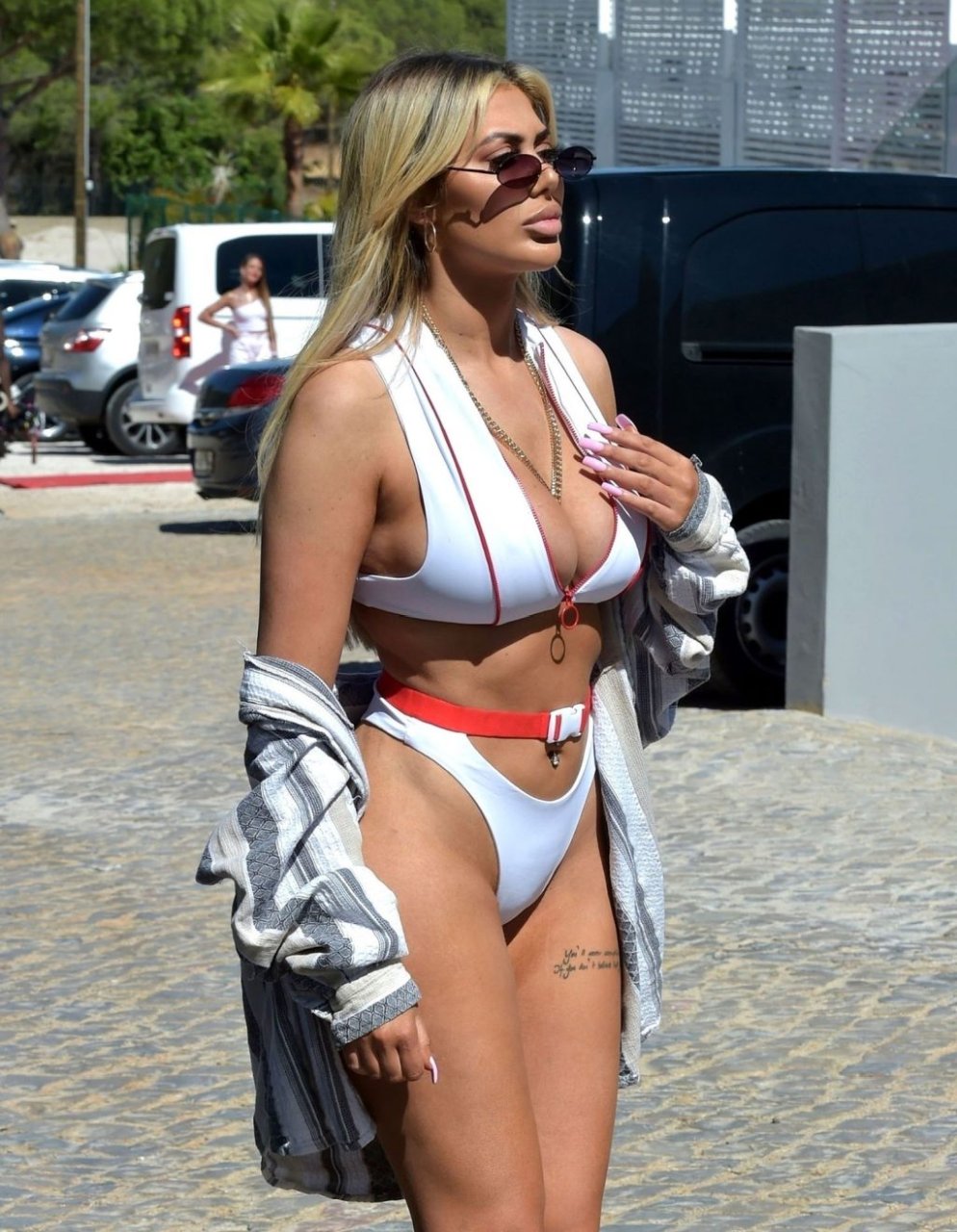Blanca Chloe Ferry estaba filmando en el día de apertura de la Fiesta en la Piscina Medusis con el elenco de The Geordie Shore en el Algarve, Portugal, 27/06/2019.