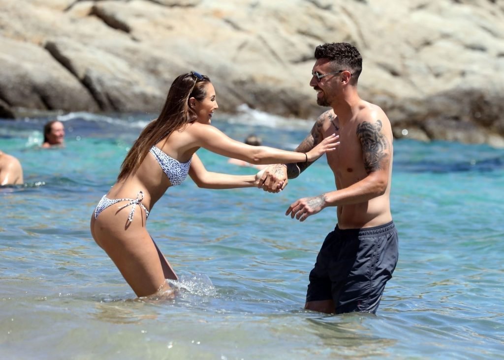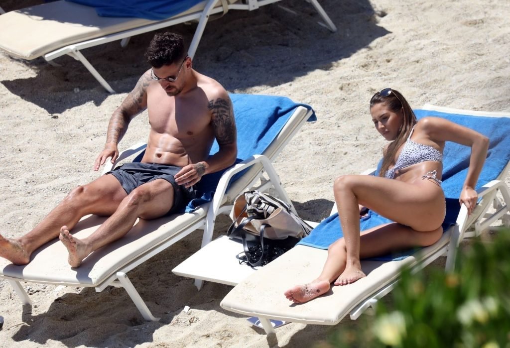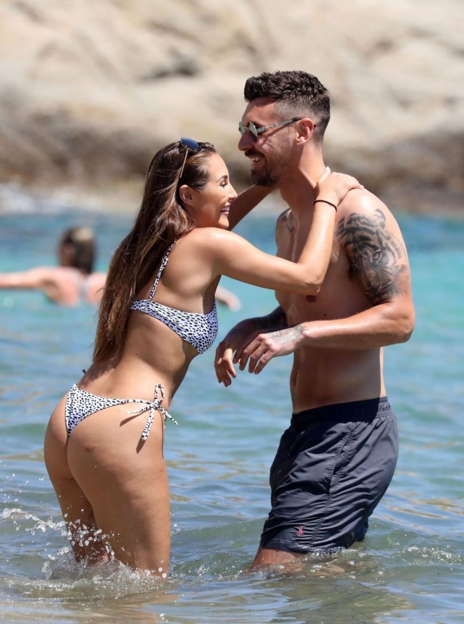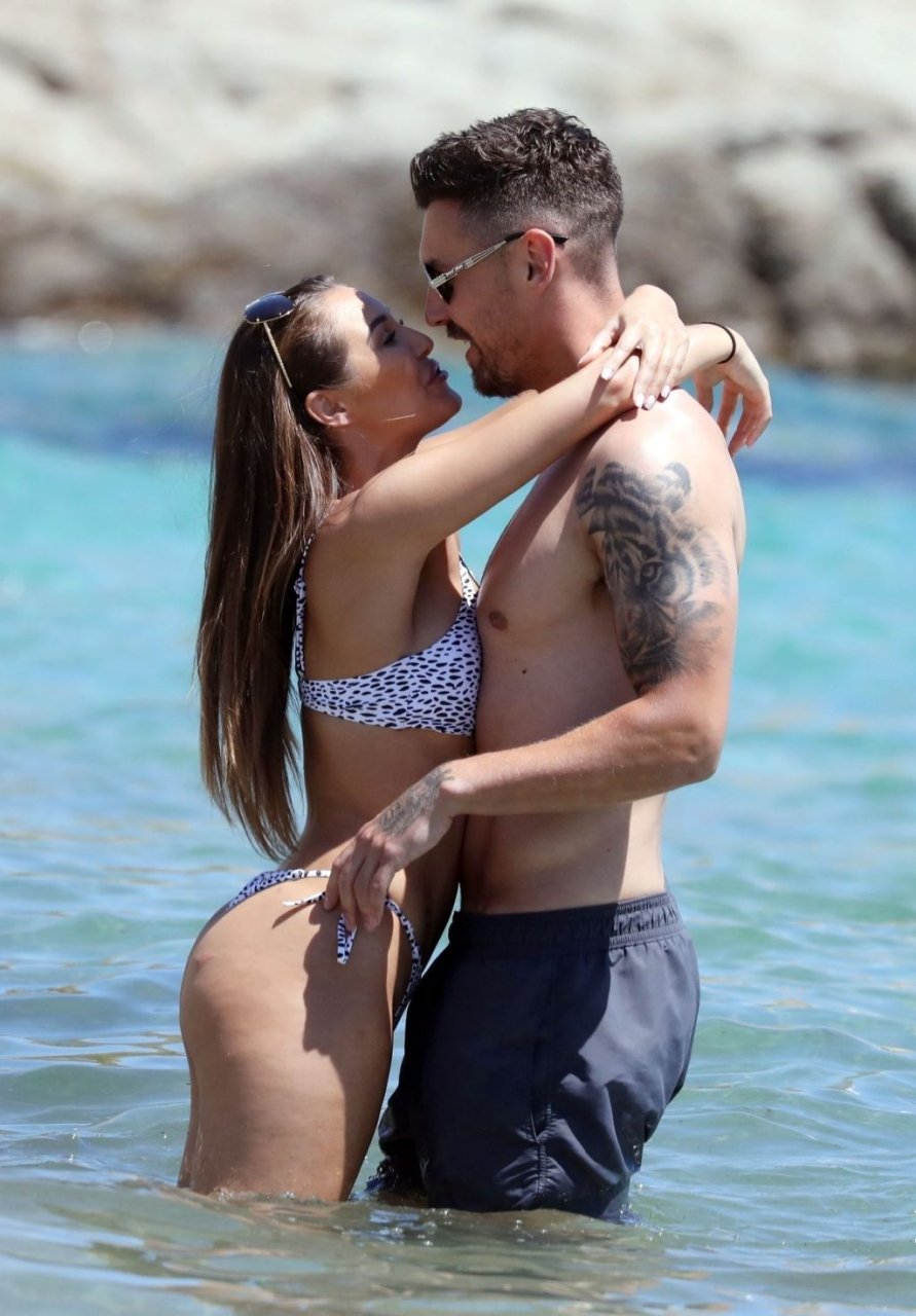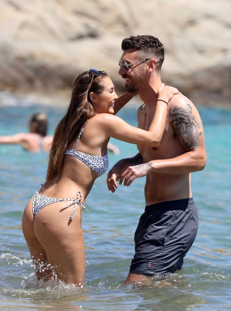 Reality star Chloe Goodman y el futbolista del QPR Grant Hall fotografiados en sus vacaciones bañadas por el sol en Mykonos, 16/05/2019. La pareja parecía estar sintiendo el amor mientras se abrazaban y compartían algunos besos mientras chapoteaban en el agua.