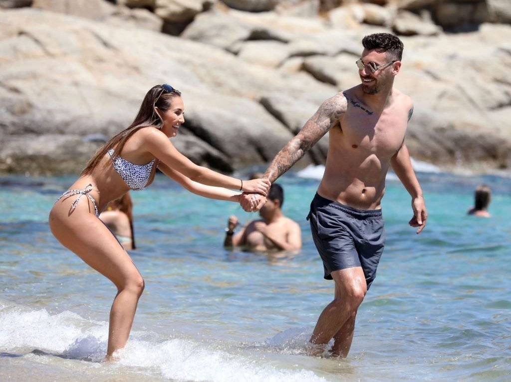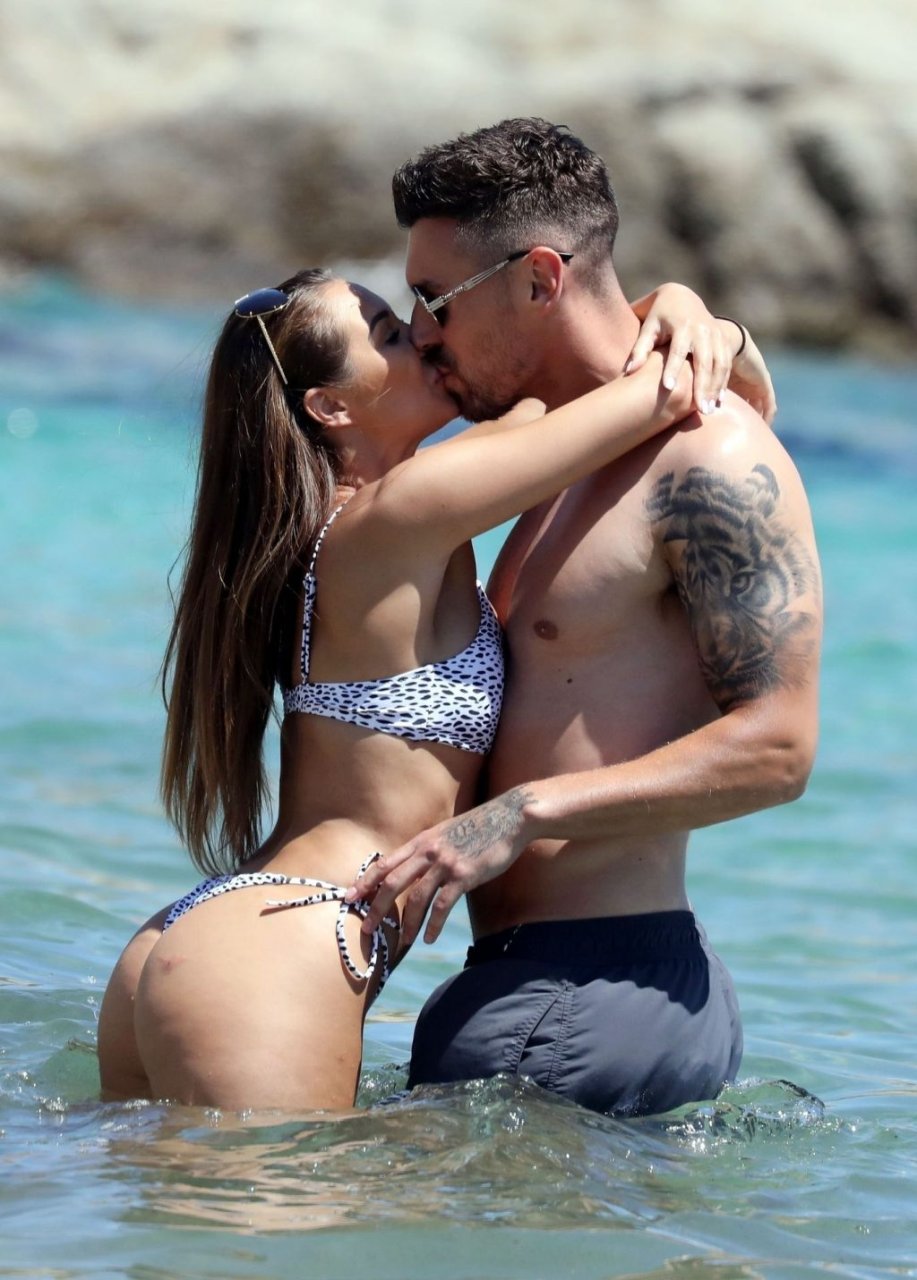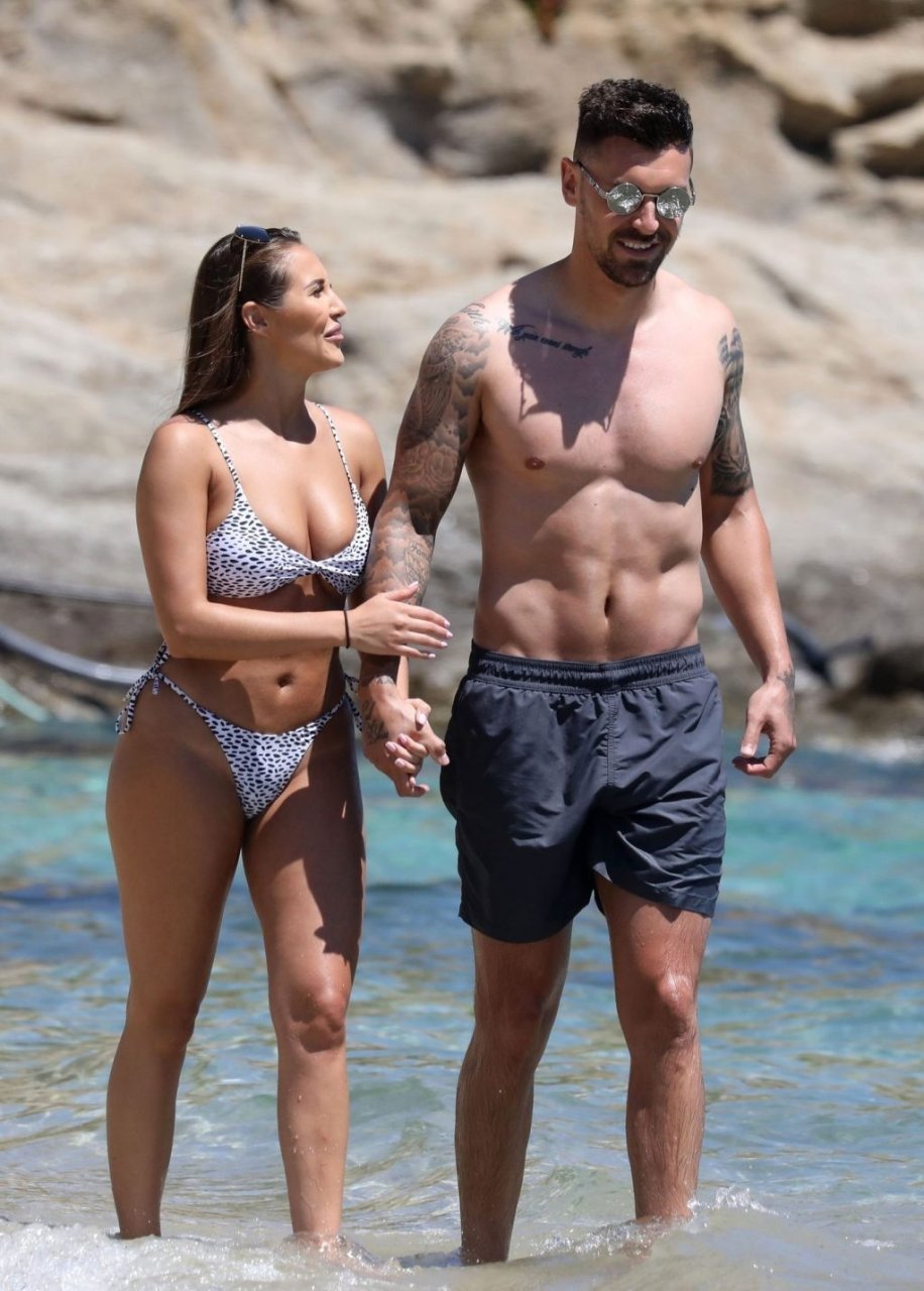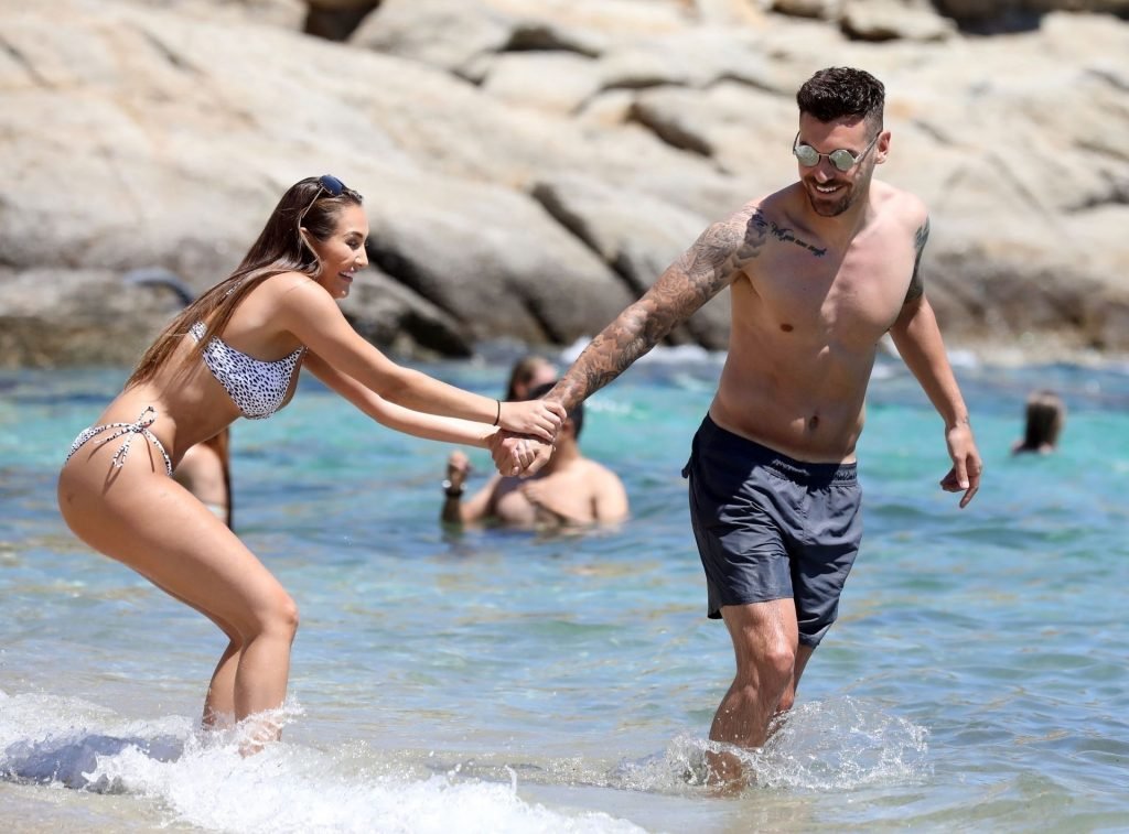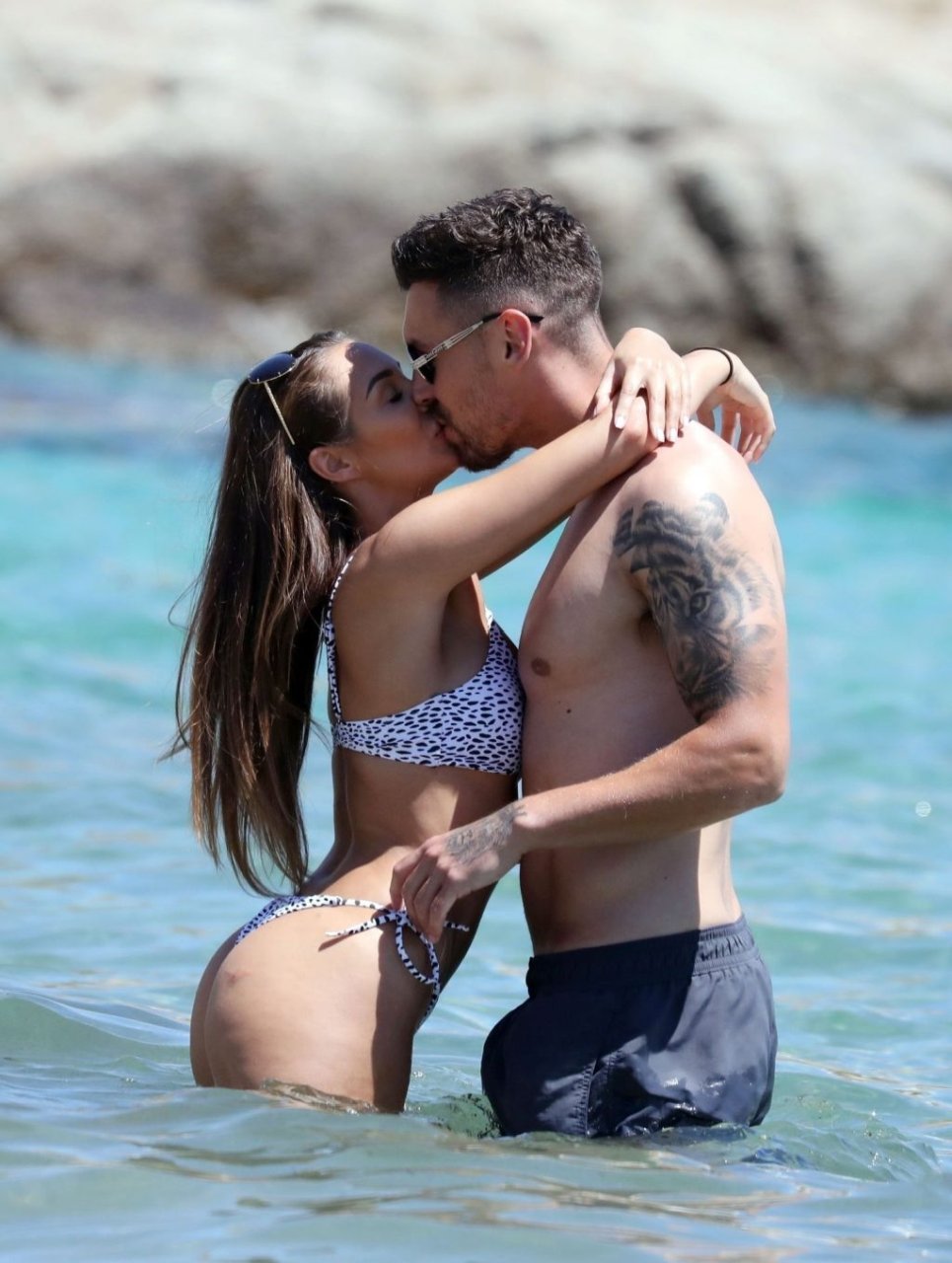 Reality star Chloe Goodman y el futbolista del QPR Grant Hall fotografiados en sus vacaciones bañadas por el sol en Mykonos, 16/05/2019. La pareja parecía estar sintiendo el amor mientras se abrazaban y compartían algunos besos mientras chapoteaban en el agua.