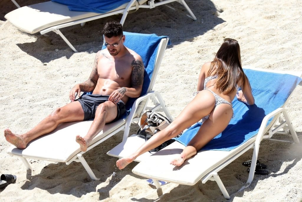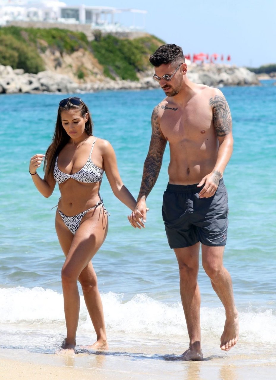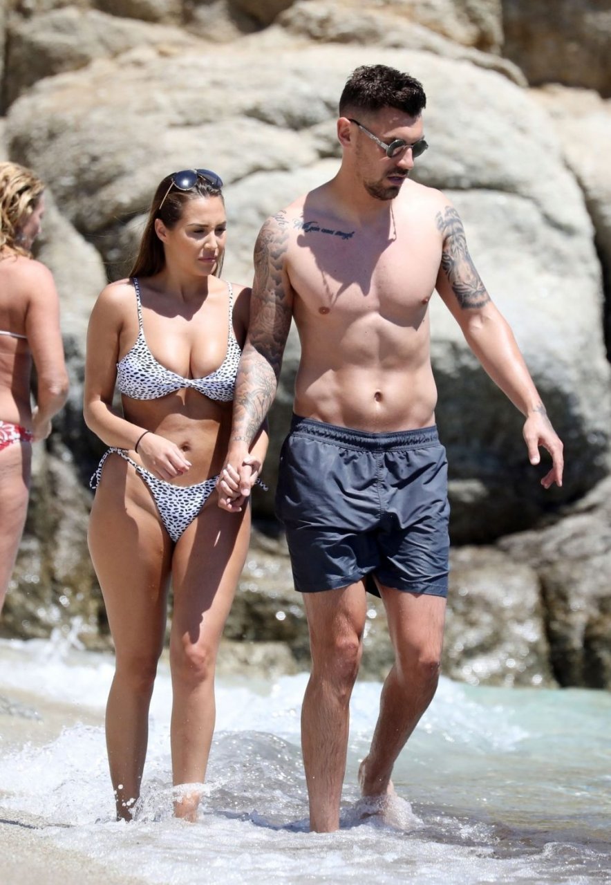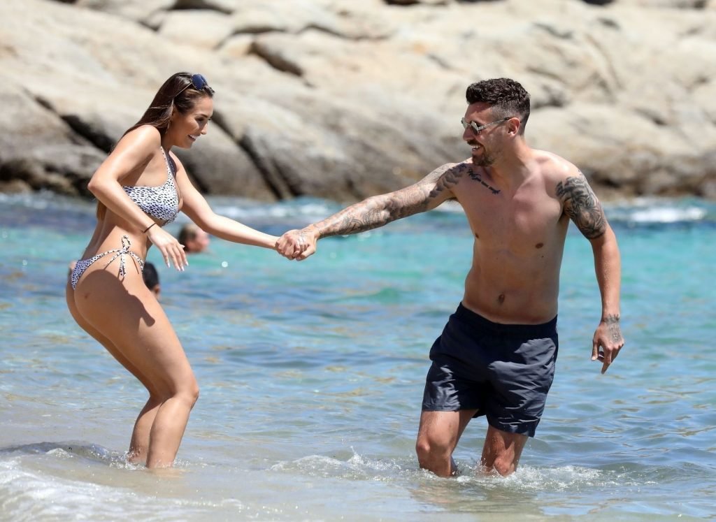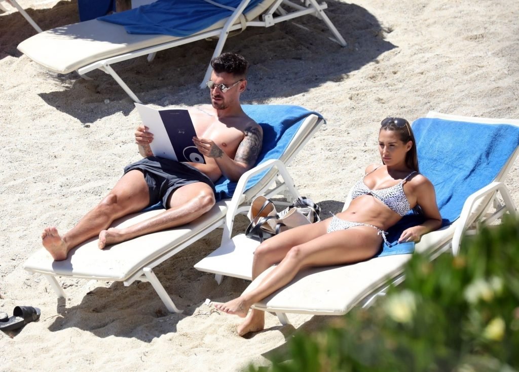 Reality star Chloe Goodman y el futbolista del QPR Grant Hall fotografiados en sus vacaciones bañadas por el sol en Mykonos, 16/05/2019. La pareja parecía estar sintiendo el amor mientras se abrazaban y compartían algunos besos mientras chapoteaban en el agua.