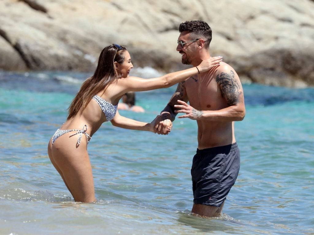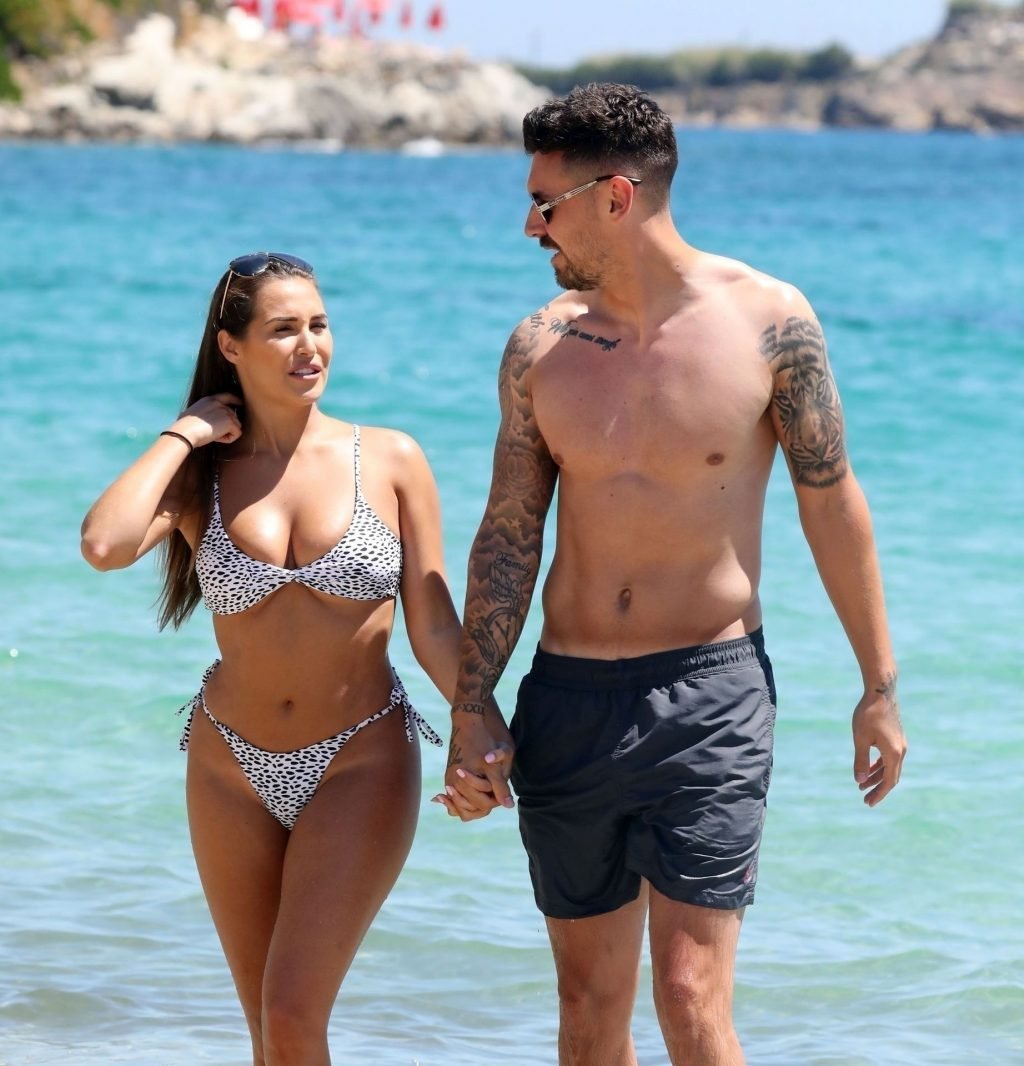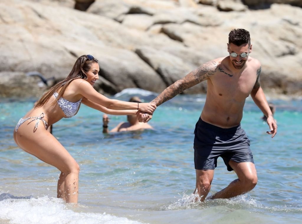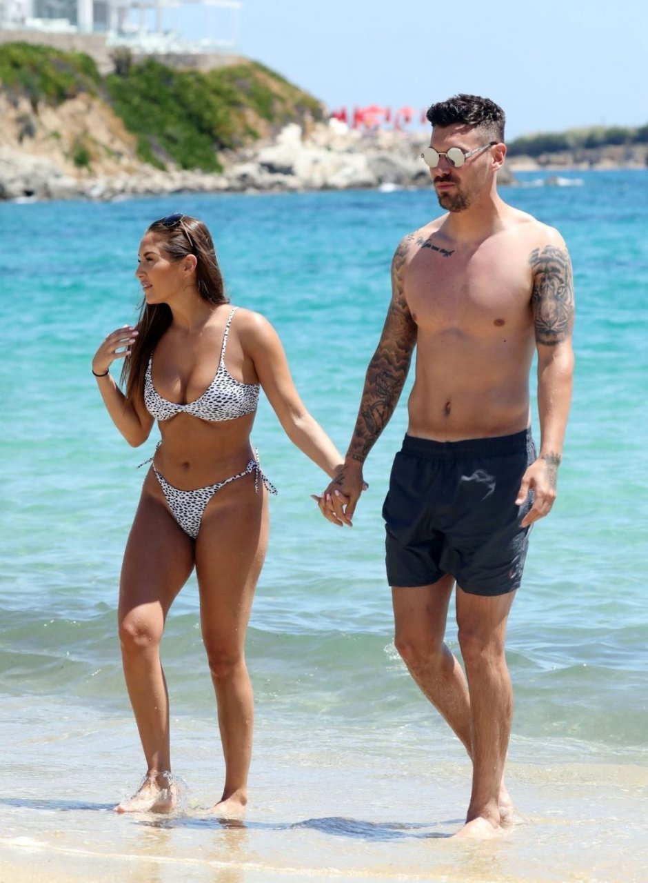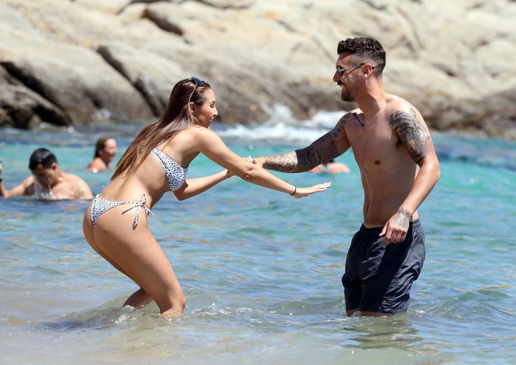 Reality star Chloe Goodman y el futbolista del QPR Grant Hall fotografiados en sus vacaciones bañadas por el sol en Mykonos, 16/05/2019. La pareja parecía estar sintiendo el amor mientras se abrazaban y compartían algunos besos mientras chapoteaban en el agua.
