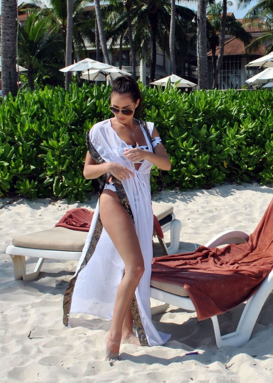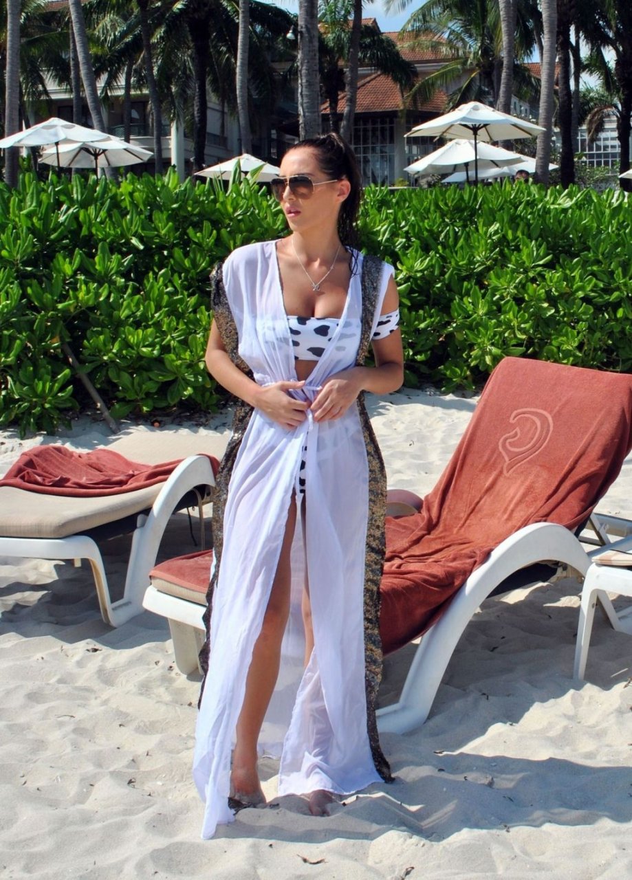 Reality star and model Chloe Goodman se toma un merecido descanso en Tailandia después de lanzar su propia clínica Opiah Cosmetics en Brighton (2018). Chloe luce sexy disfrutando de los rayos del lejano oriente, bebiendo su agua de coco y relajándose en la tumbona con su sexy bikini blanco y negro.
