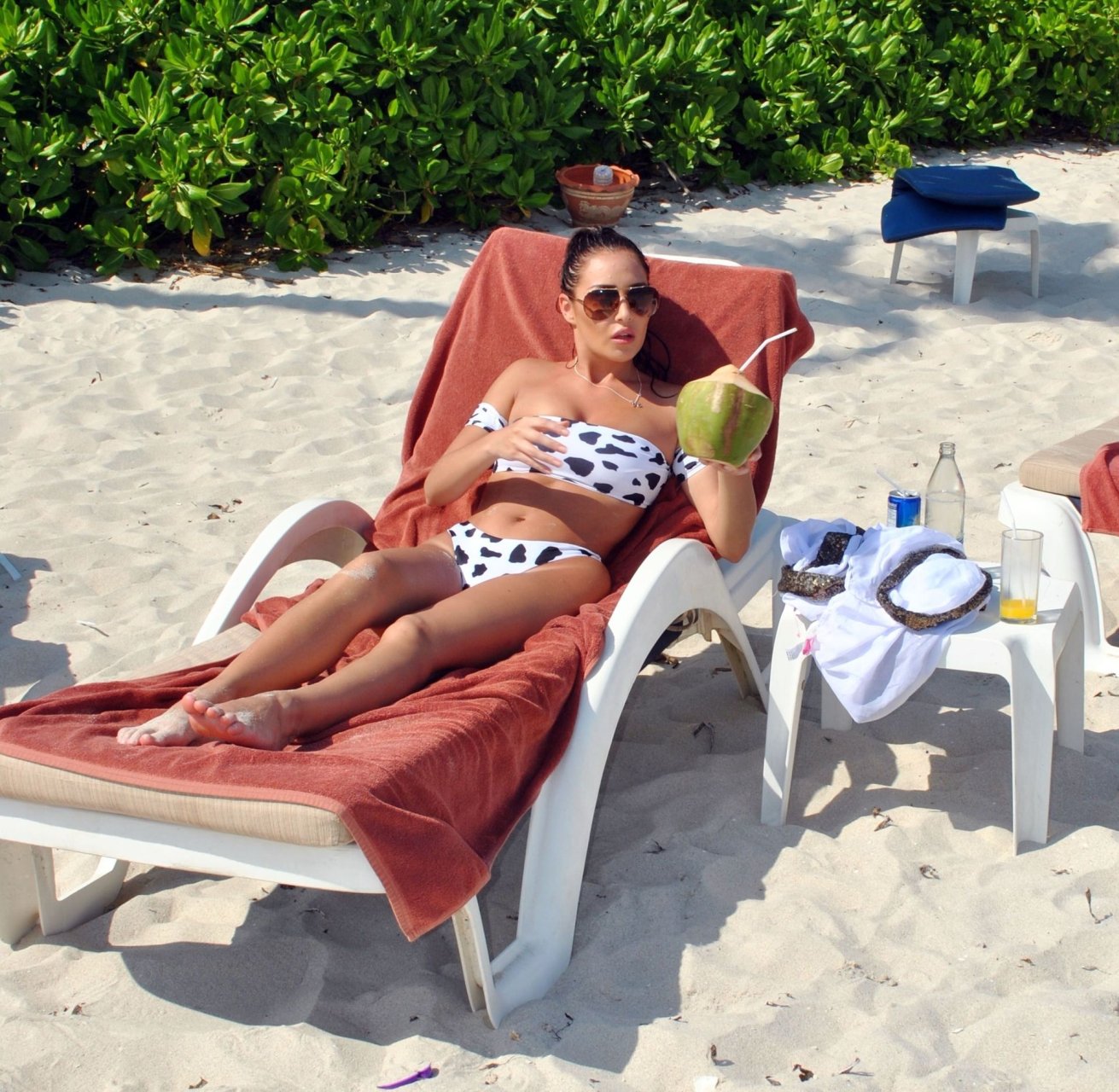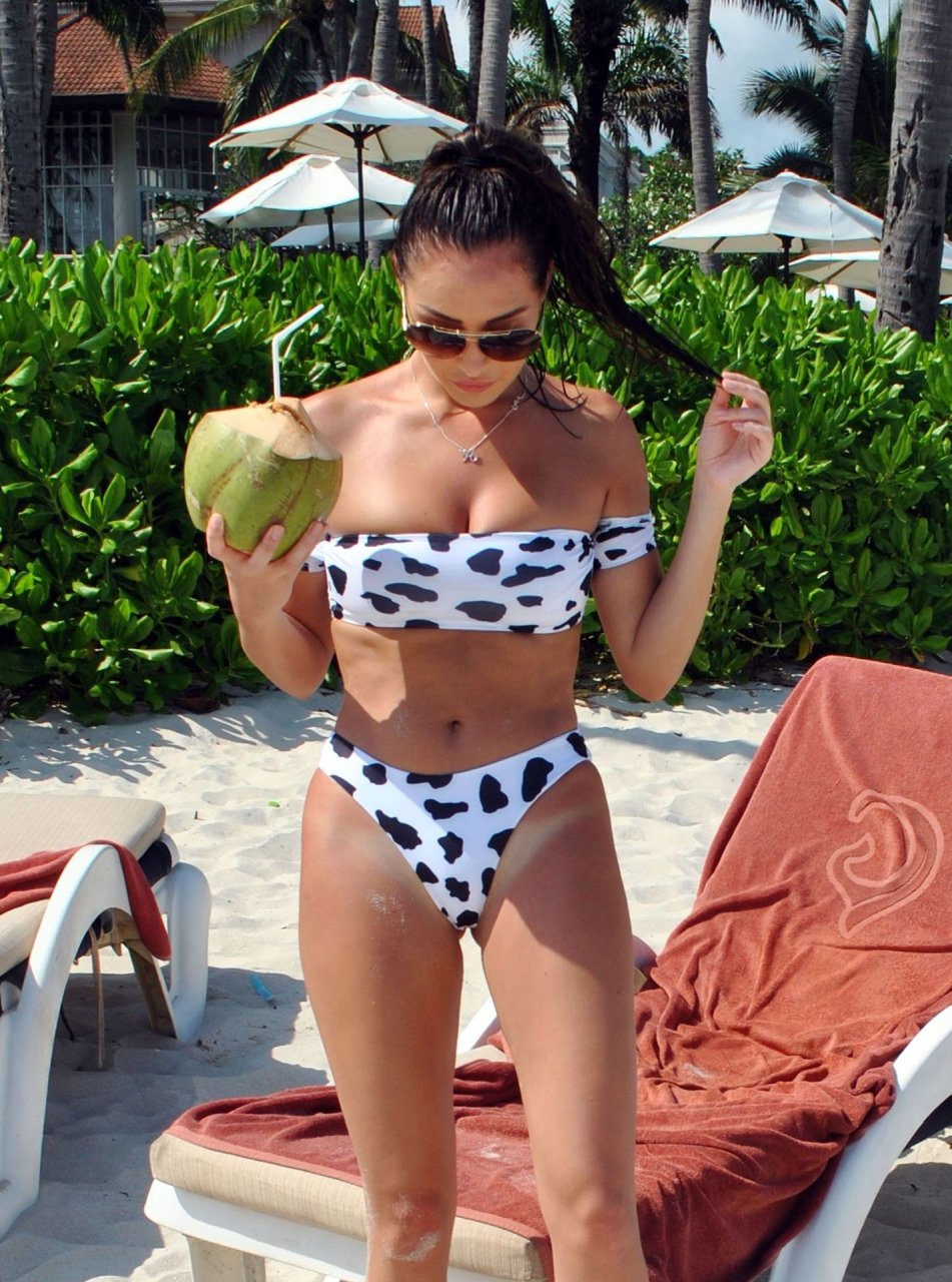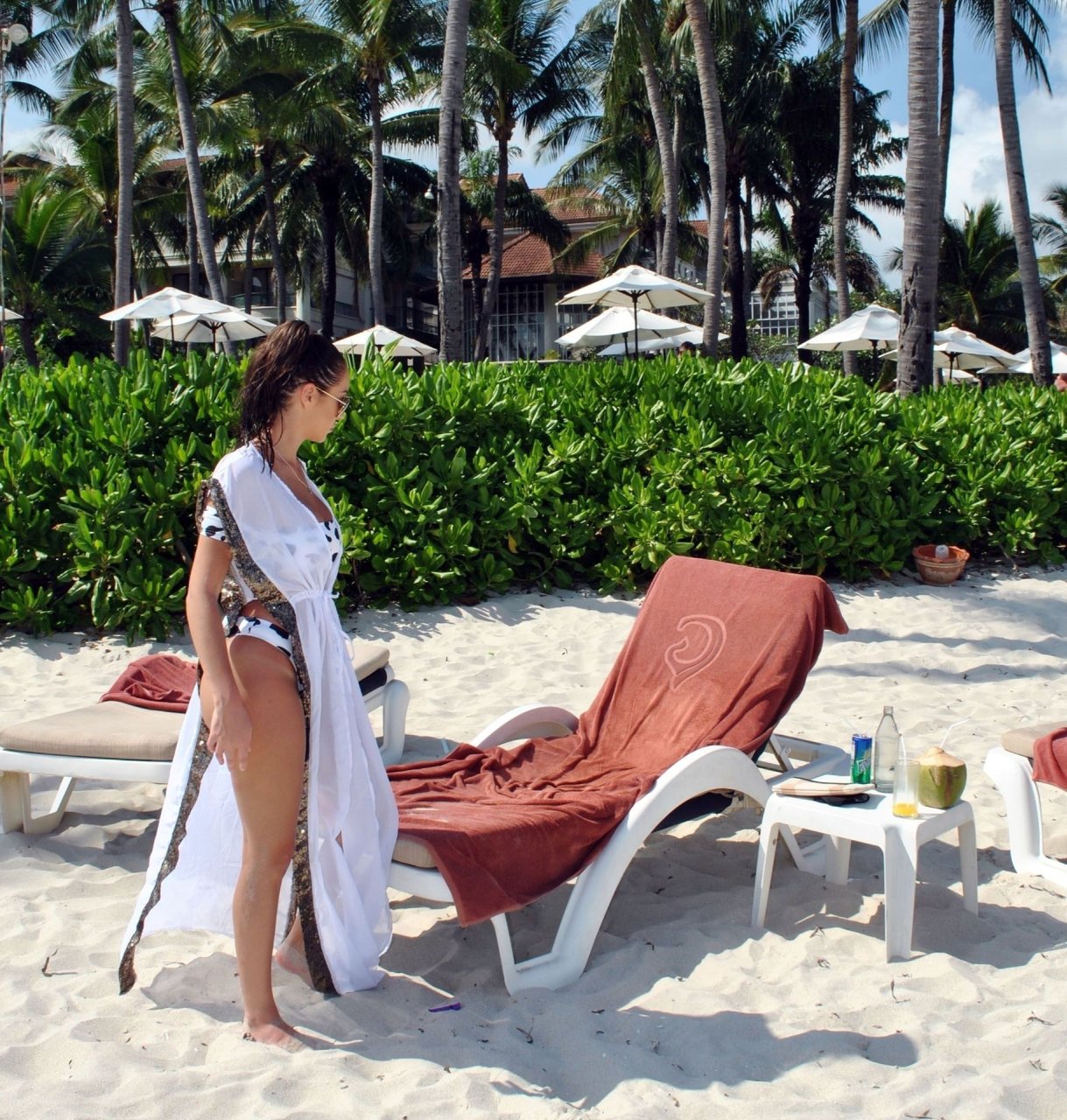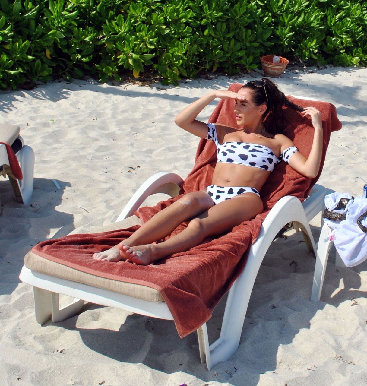 Reality star and model Chloe Goodman se toma un merecido descanso en Tailandia después de lanzar su propia clínica Opiah Cosmetics en Brighton (2018). Chloe luce sexy disfrutando de los rayos del lejano oriente, bebiendo su agua de coco y relajándose en la tumbona con su sexy bikini blanco y negro.