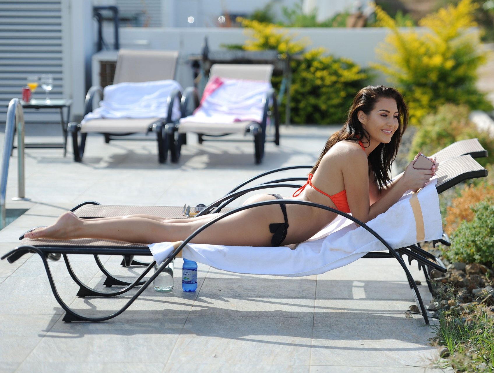Chloe Goodman disfruta del sol español con un bikini naranja y negro en Tenerife, 02/09/2017. Chloe Goodman es una modelo (Zoo, Daily Star, Nuts) y estrella de la televisión de realidad (Ex On The Beach). Edad: 23 años (19 de junio de 1993)
