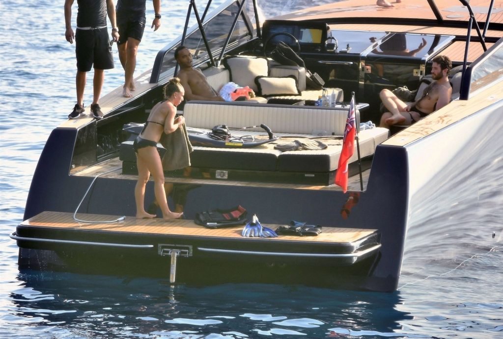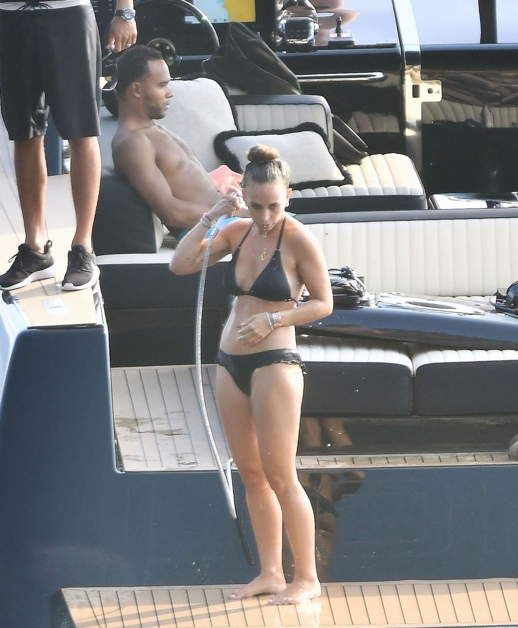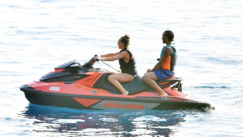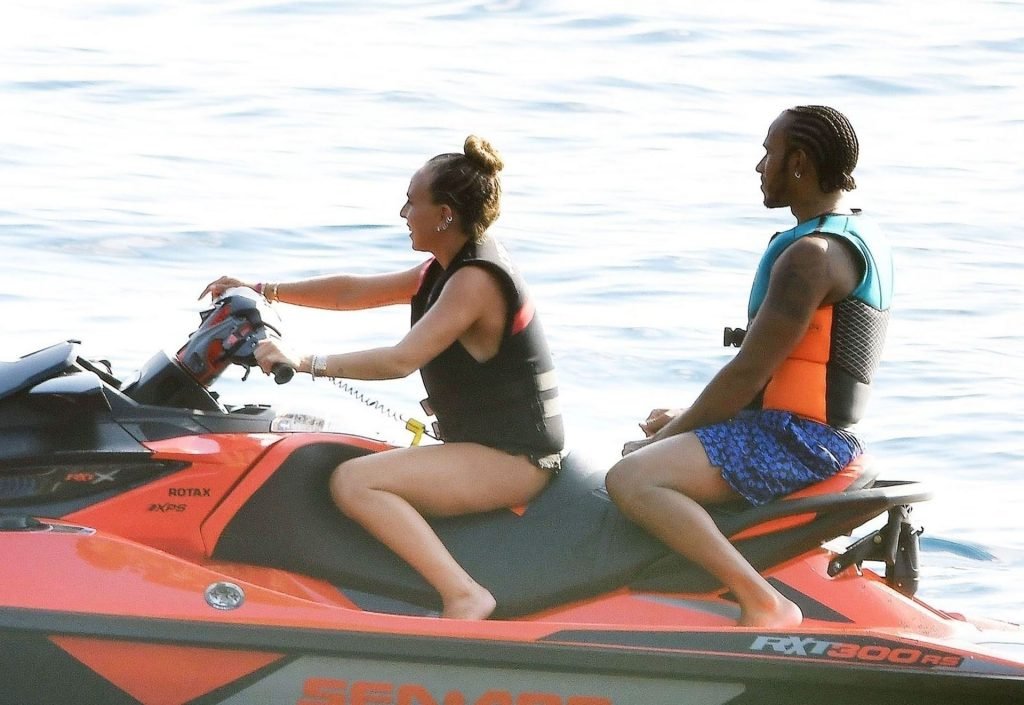Vestida con su pequeño bikini negro bajo el sol francés, Chloe decidió divertirse a pesar de su relación muy publicitada con Jeremy Meeks, dando un emocionante paseo en moto acuática con el piloto de Fórmula Uno Lewis Hamilton.