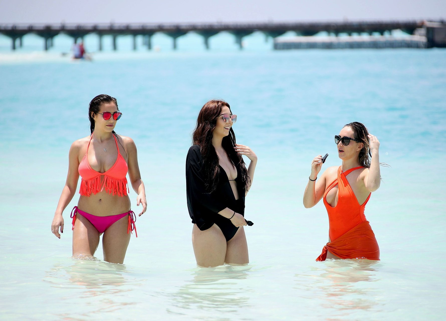 Me encantó la parte donde la hermana con monokini naranja intenta separar sus mejillas del trasero (foto 68 o 69).