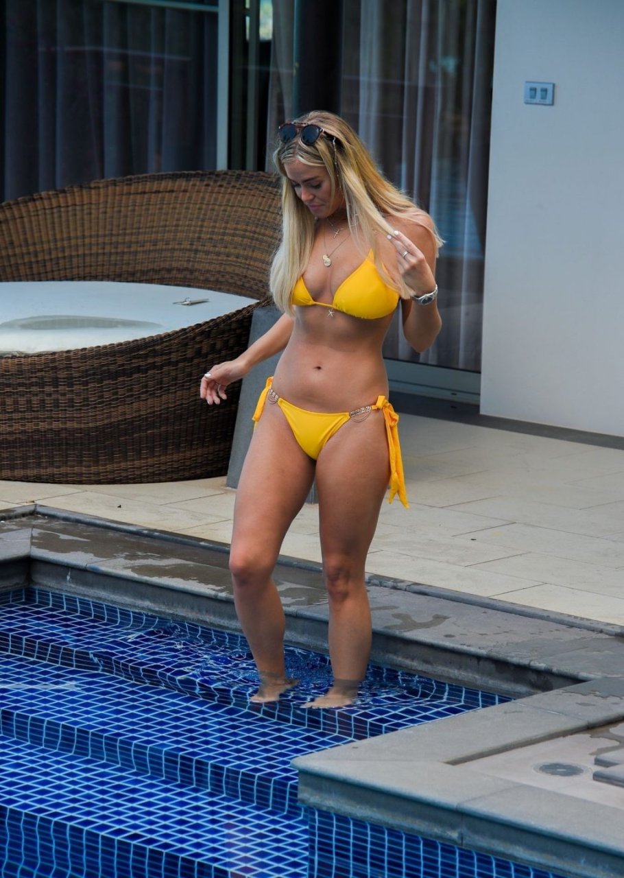 Chloe Meadows de The Only Way Is Essex se ve disfrutando del sol en Ibiza, 25/05/2019. La estrella de reality TV de 27 años mostró su figura perfecta, vistiendo un bikini amarillo.