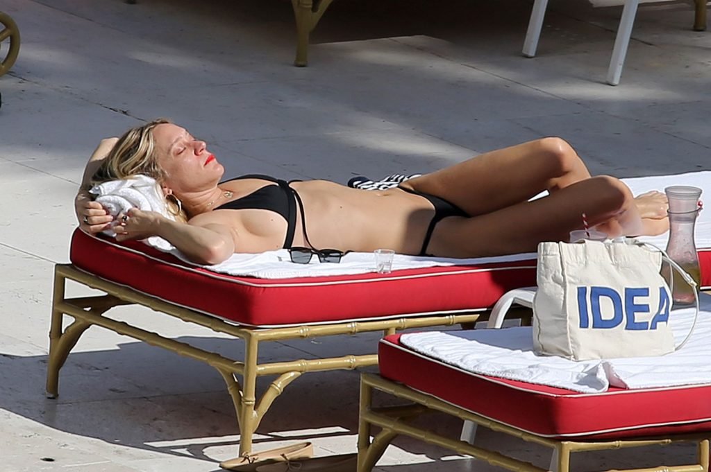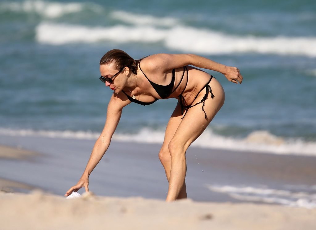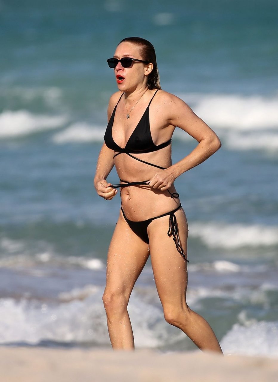 Actriz Chloe Sevigny (44) fue vista en un bikini negro en la playa de Miami, 12/07/2018.