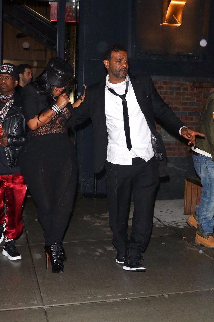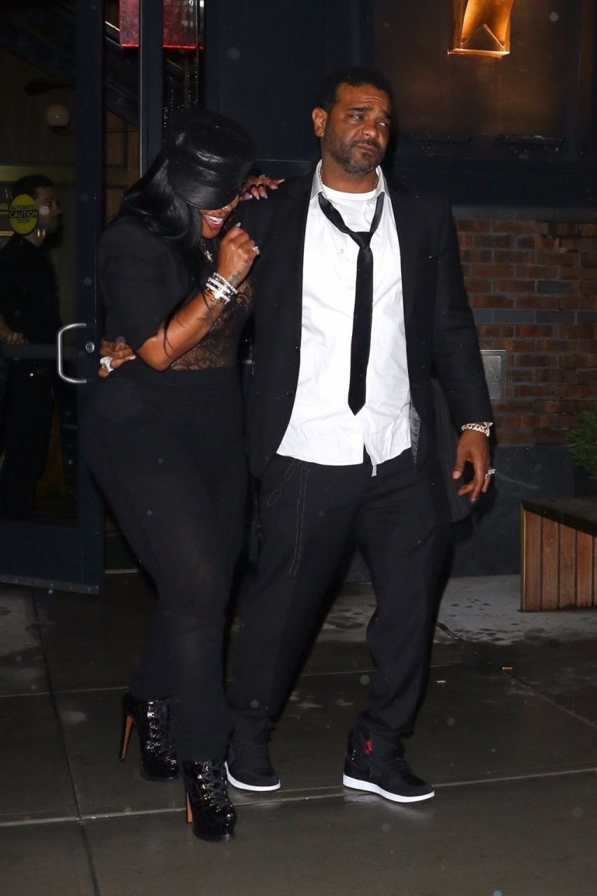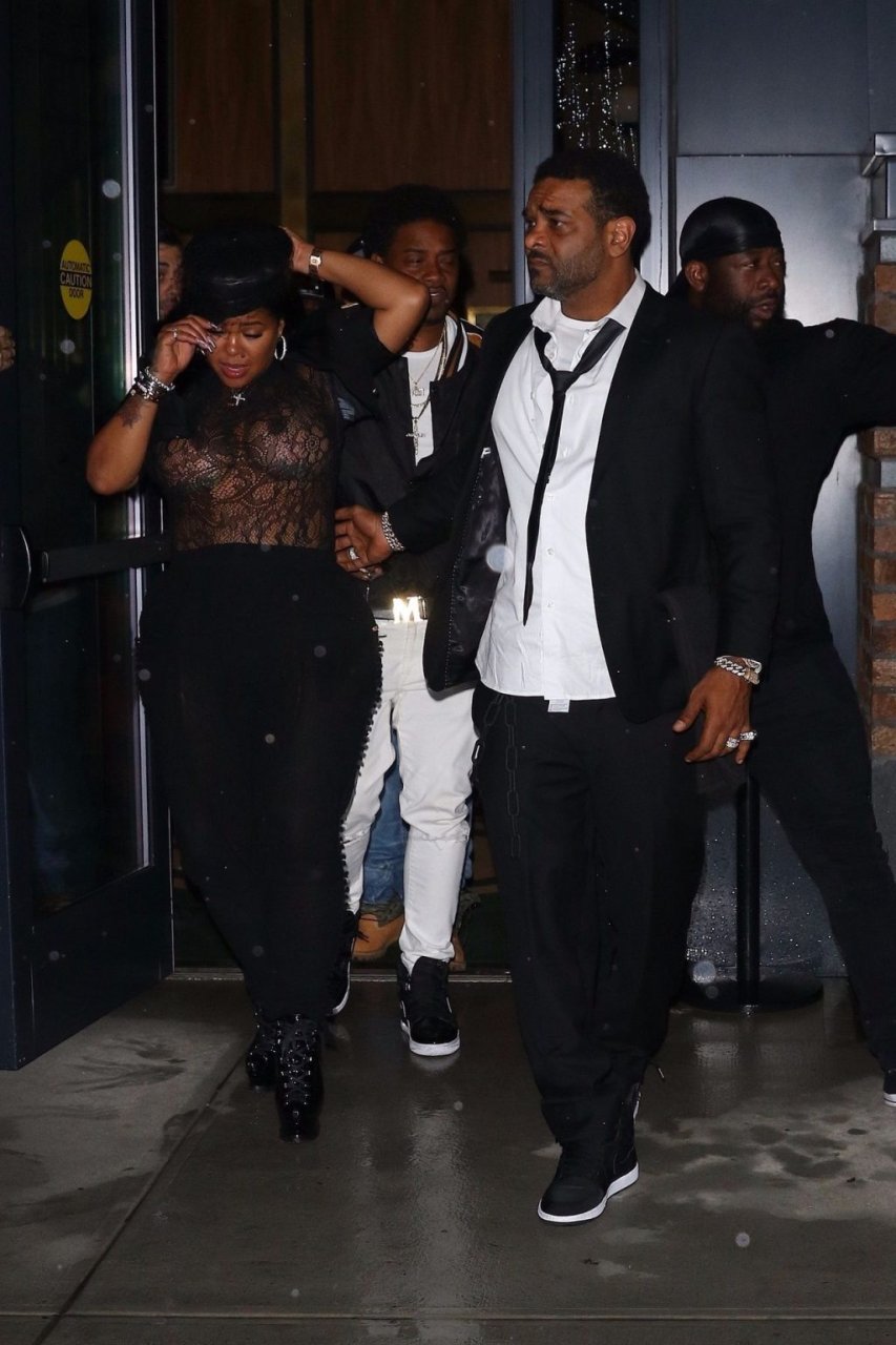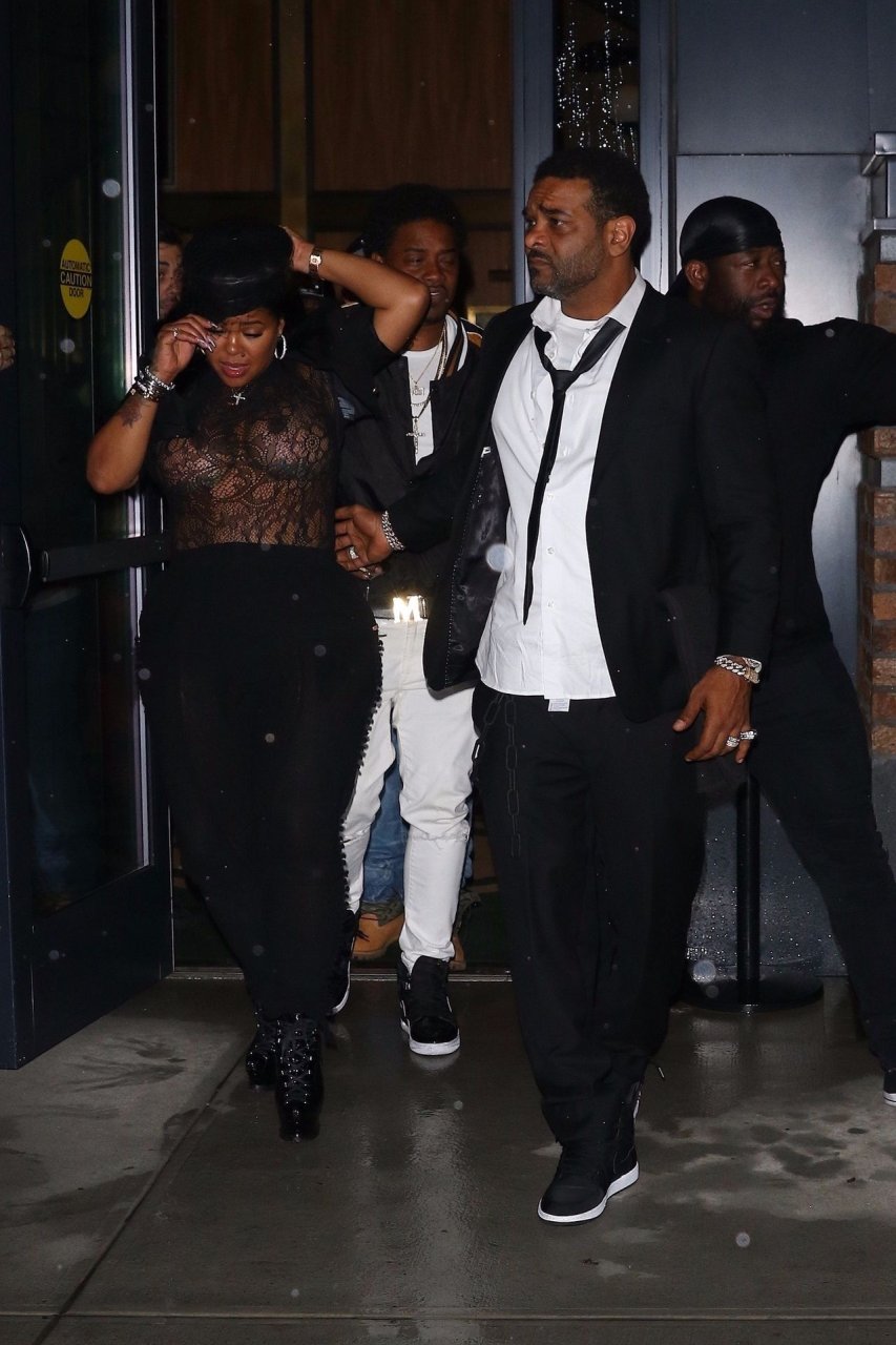 El rapero de Nueva York, Jim Jones, y su esposa Chrissy Lampkin fueron vistos saliendo del restaurante Henry Hall, 27/04/2019. La pareja estaba sonriente mientras disfrutaban de una comida de celebración después de que Jim actuara con Jay Z en Webster Hall.