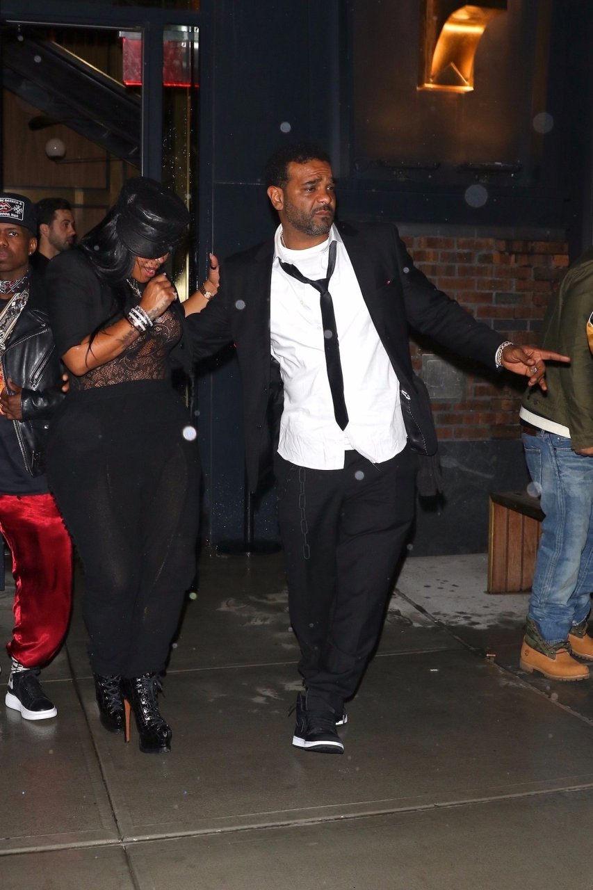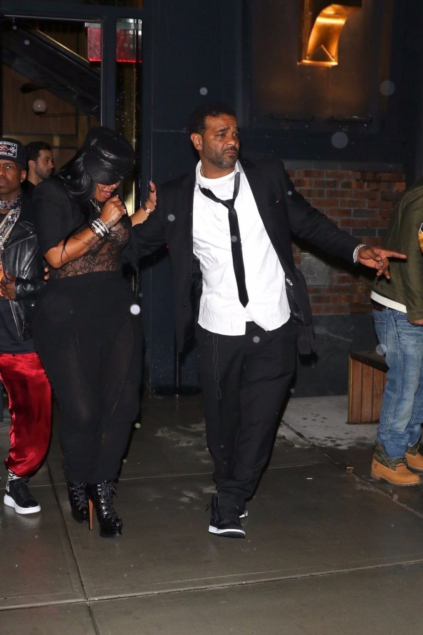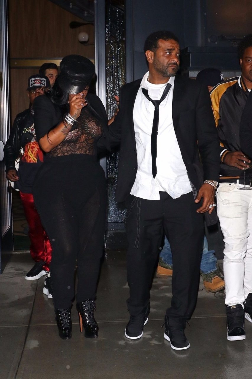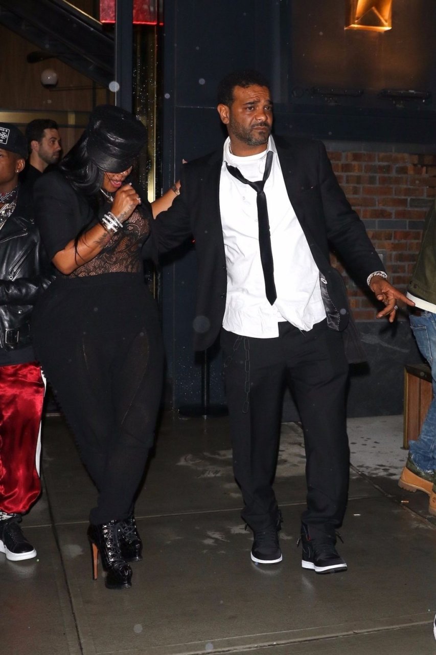 El rapero de Nueva York, Jim Jones, y su esposa Chrissy Lampkin fueron vistos saliendo del restaurante Henry Hall, 27/04/2019. La pareja estaba sonriente mientras disfrutaban de una comida de celebración después de que Jim actuara con Jay Z en Webster Hall.