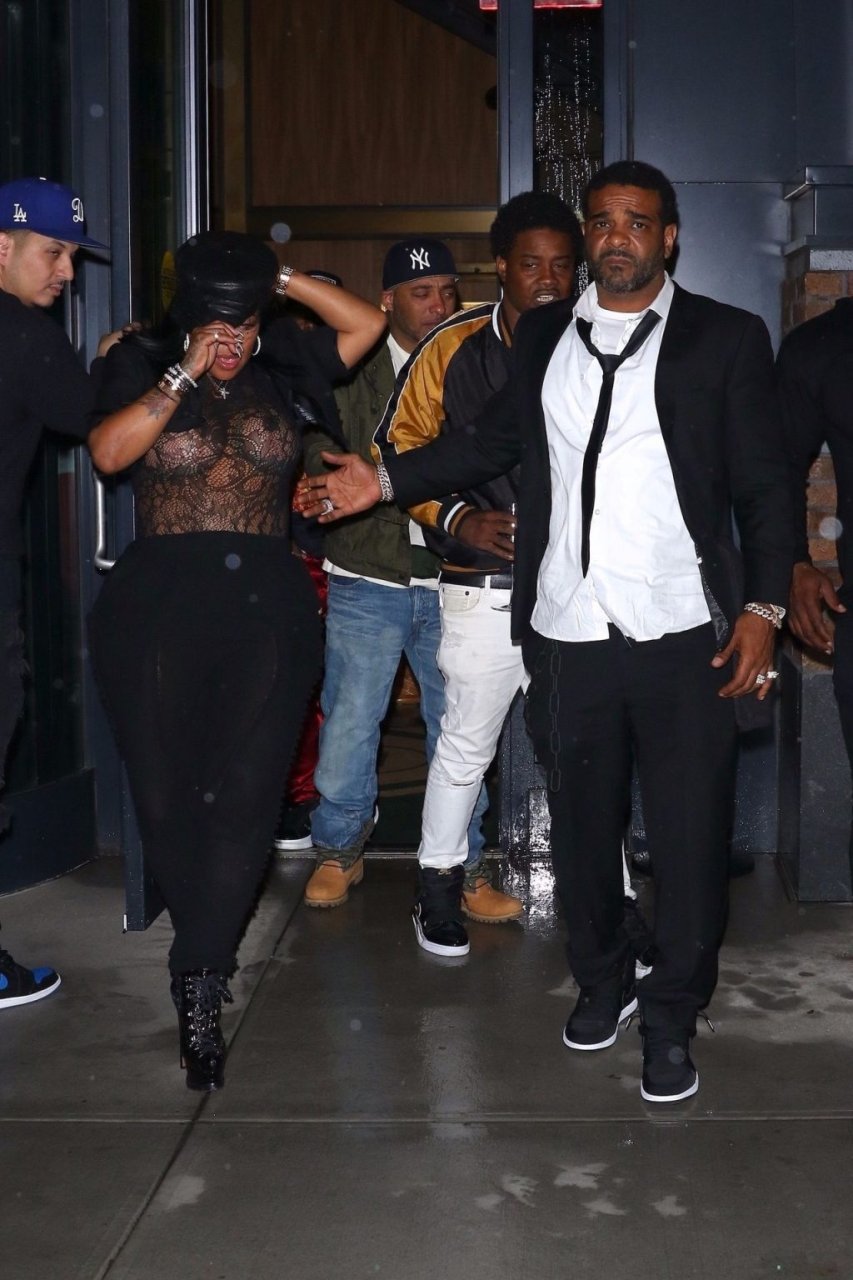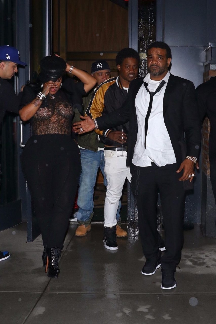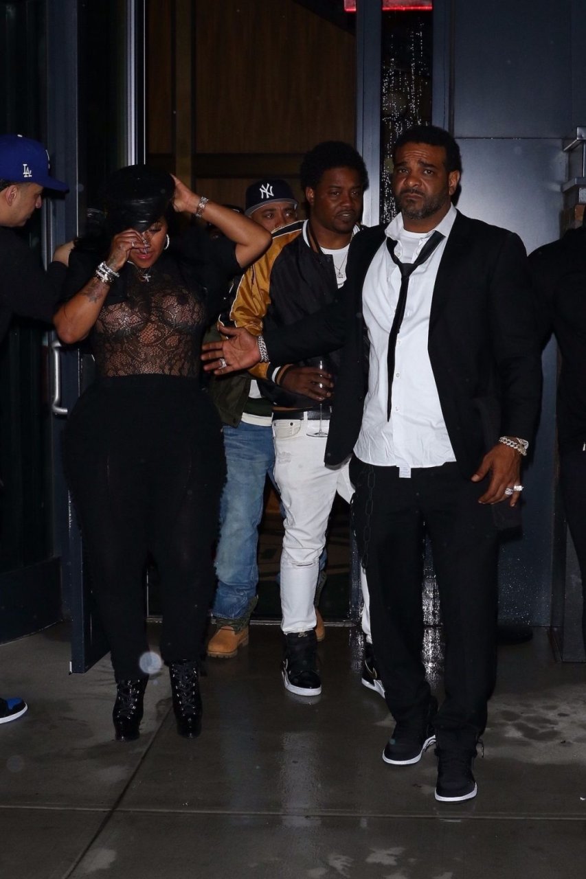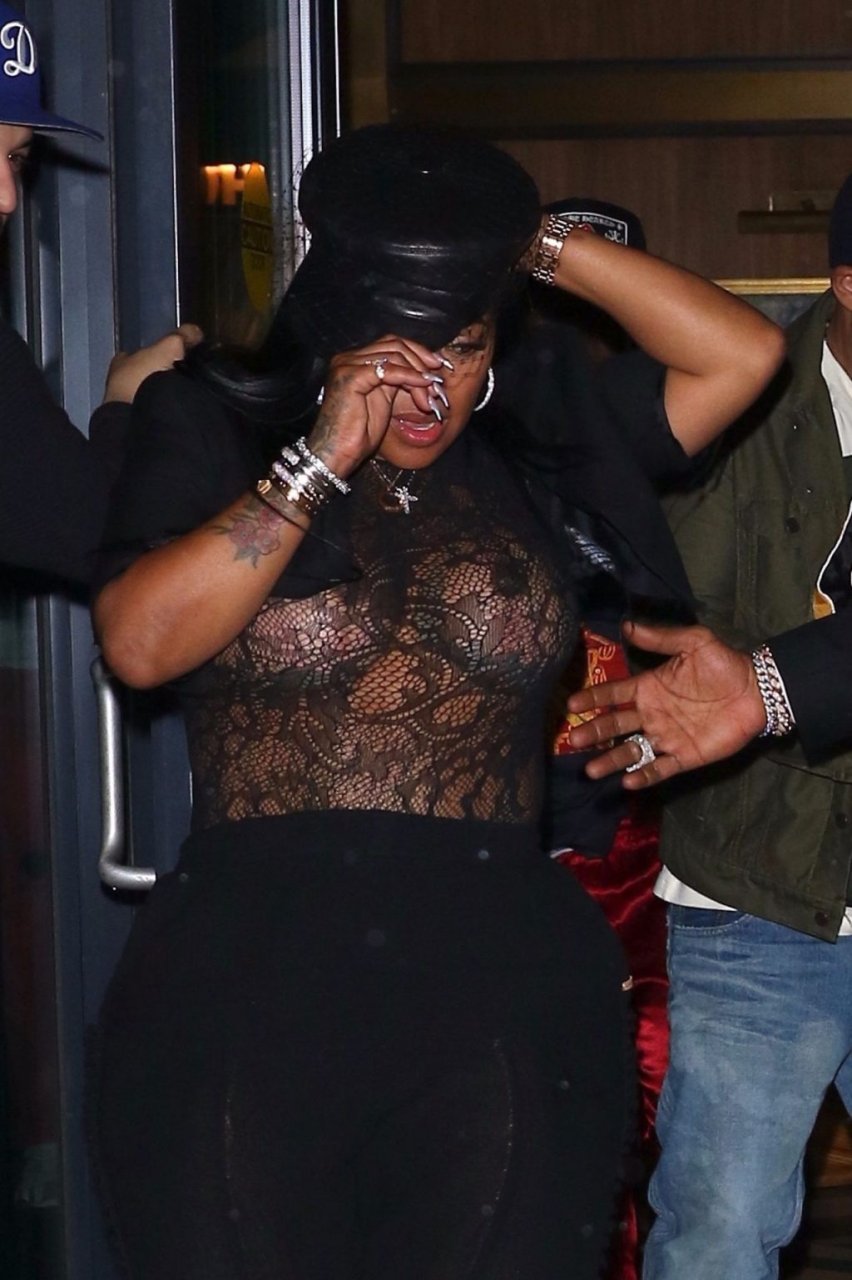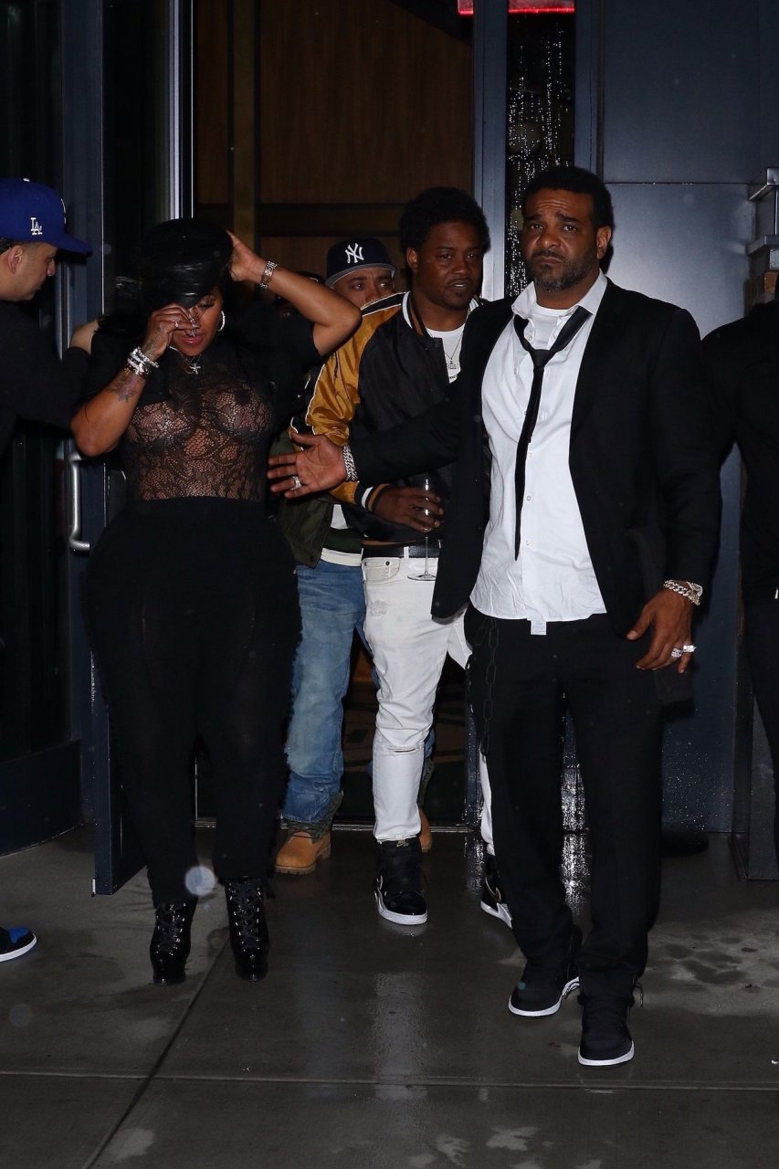 Sin embargo, todas las miradas estaban puestas en Chrissy, ya que la estrella de reality mostró sus pechos con una camiseta de malla transparente. Jim intenta apresurar a su esposa, y ella intenta cubrirse mientras salían del restaurante.