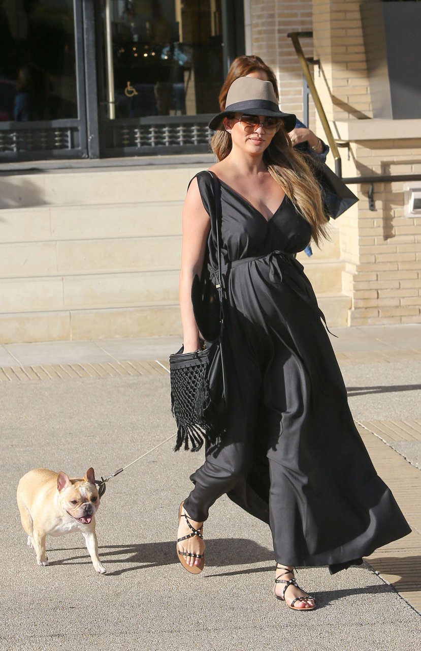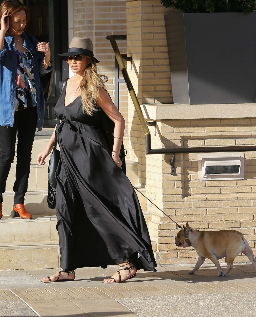 Chrissy Teigen con vestido negro en Barneys New York en Los Ángeles, 14/03/2016. ¡¡Pechos súper lechosos!! Chrissy Teigen es una modelo estadounidense. Edad 30 (30 de noviembre de 1985). Altura 174 cm.