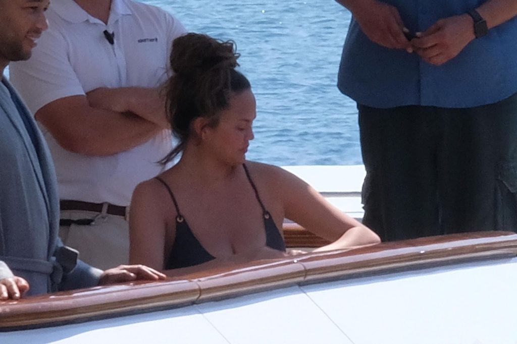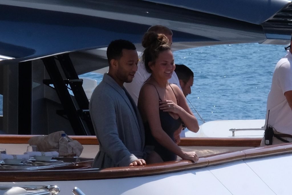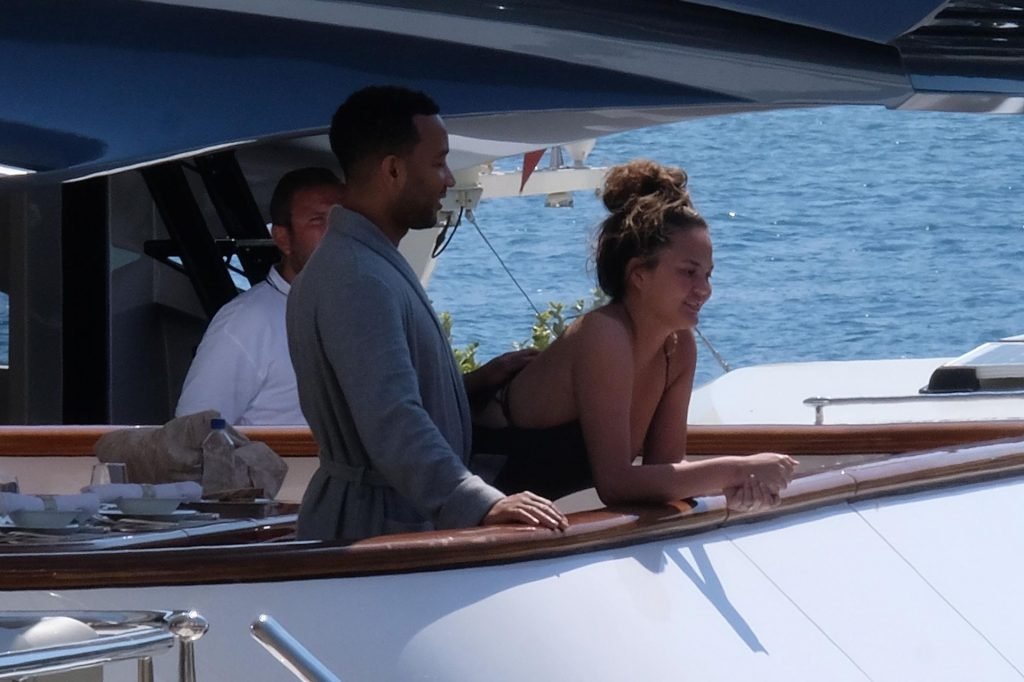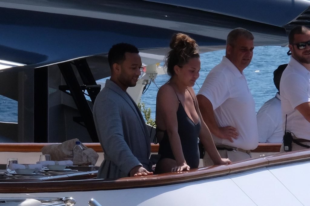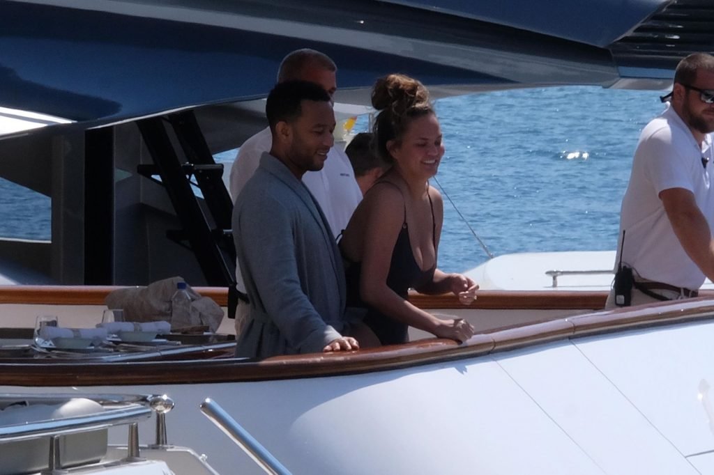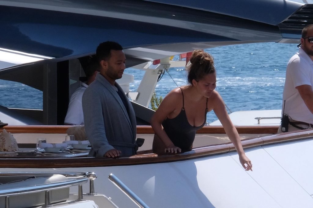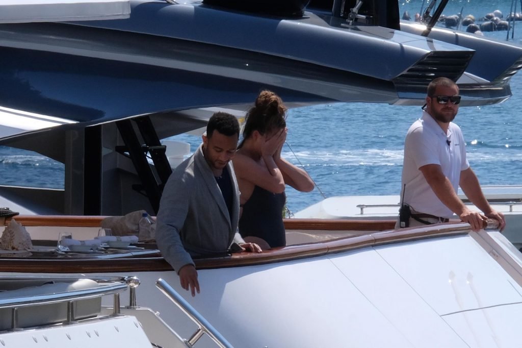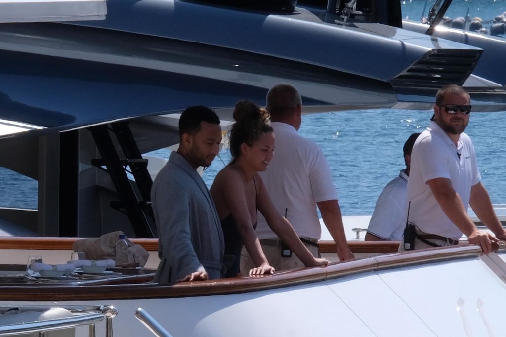 El cantante de soul americano John Legend y su esposa Chrissy Teigen descansan en su yate durante sus vacaciones bañadas por el sol en Portovenere, Italia, 04/07/2019.