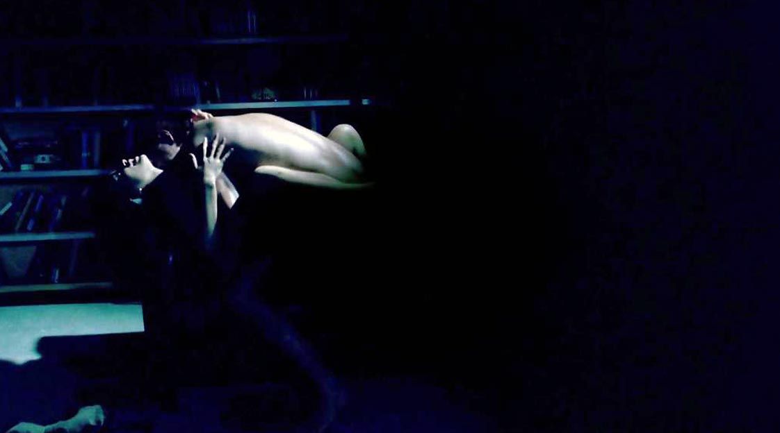 Christian Serratos está acostada de espaldas en un sofá, teniendo sexo con un hombre encima de ella, cuando ve a otro hombre acechándolos y el hombre con quien está le dice que lo olvide.