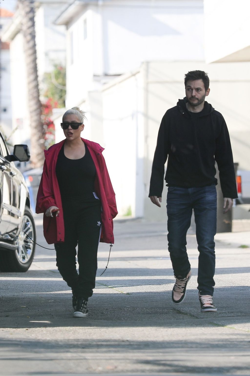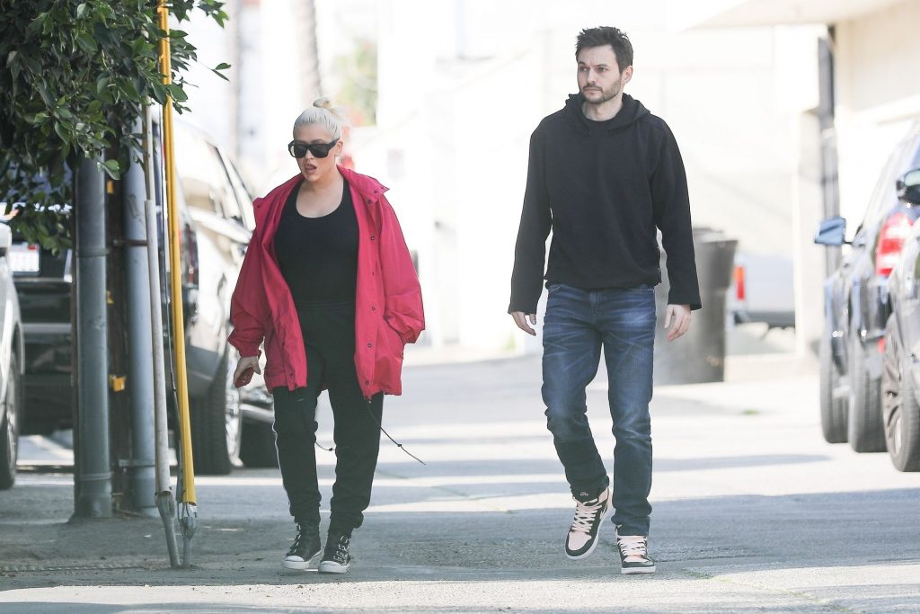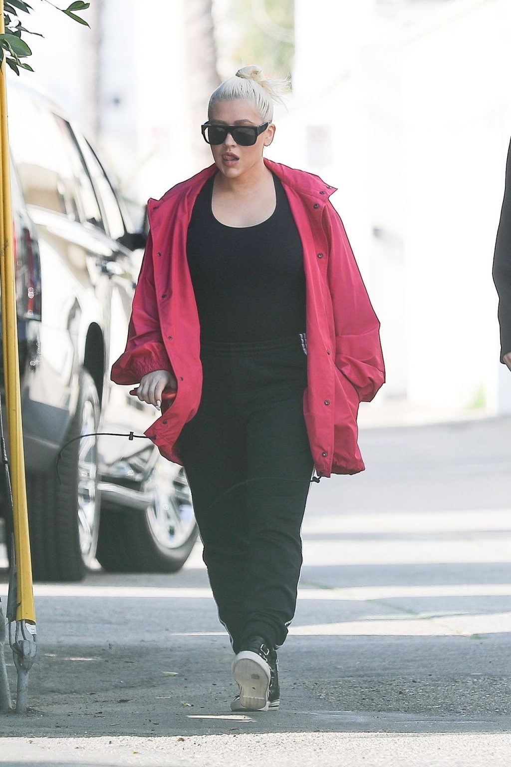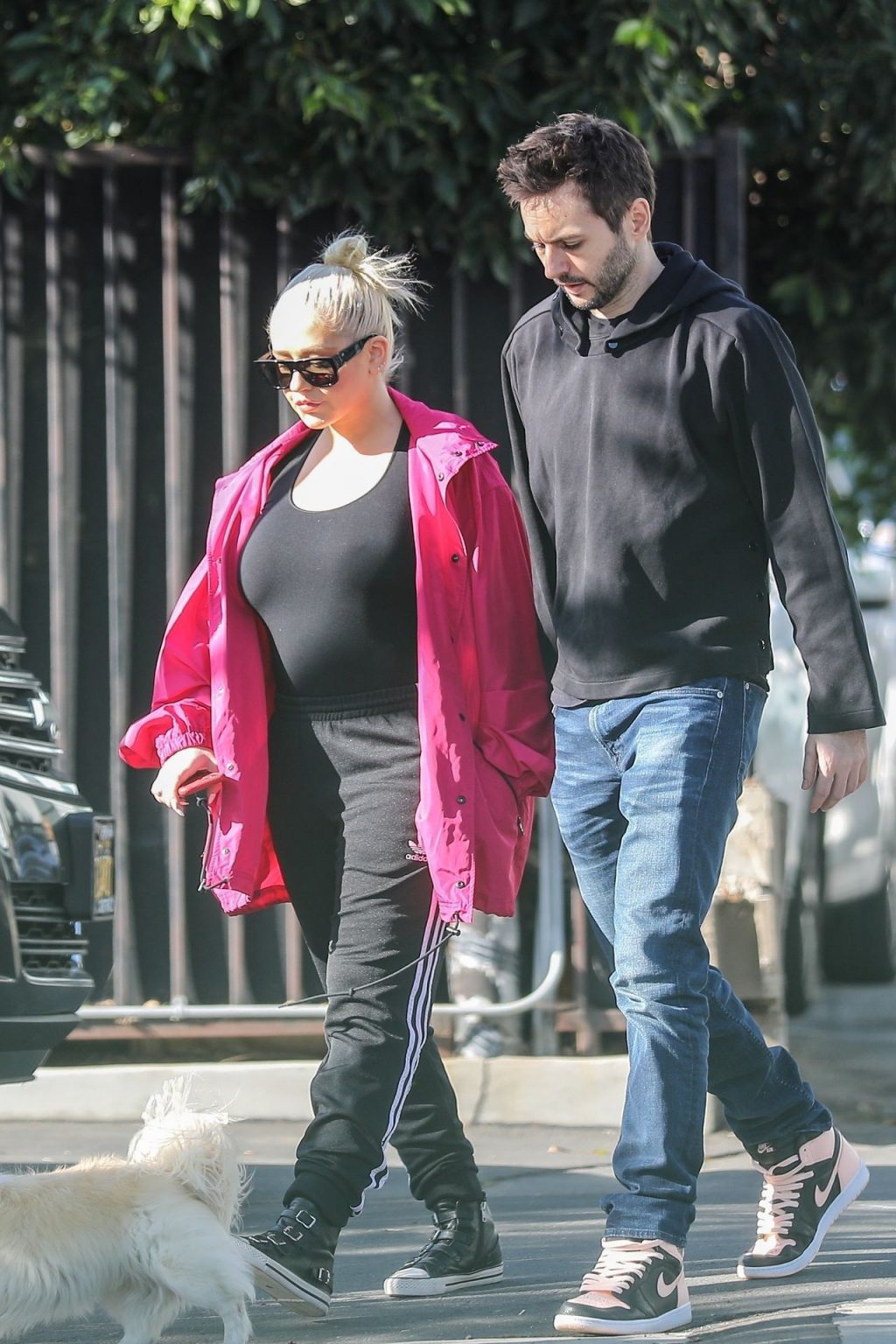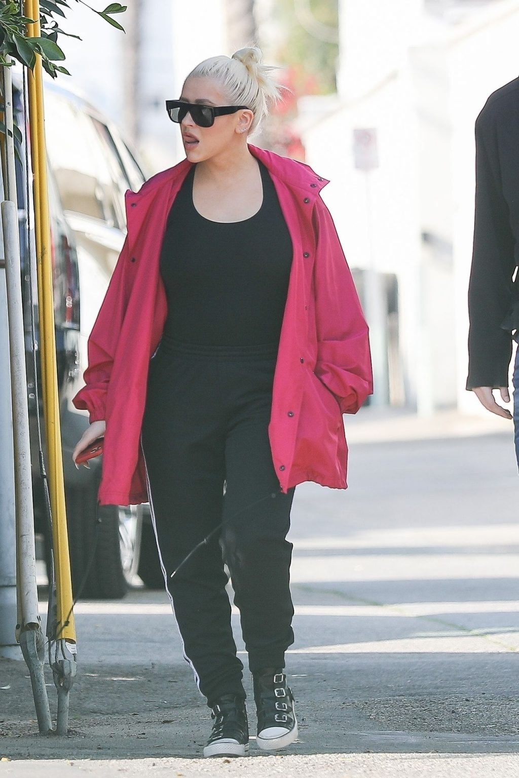 La cantante Christina Aguilera junto a su pareja Matthew Rutler llegan a la escuela de su hija Summer Rain Rutler para recogerla – Santa Mónica, 14/01/2020. Christina lleva una chaqueta cortavientos Balenciaga rosa fuerte y gafas de sol YSL. Luce su figura sin sostén, mostrando sus pechos a través de su top negro transparente.