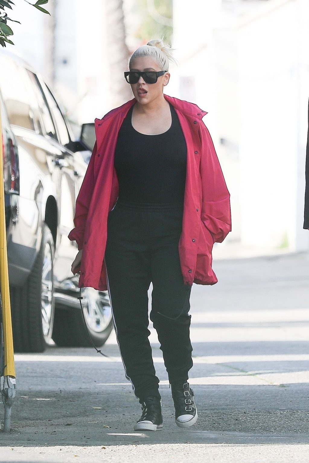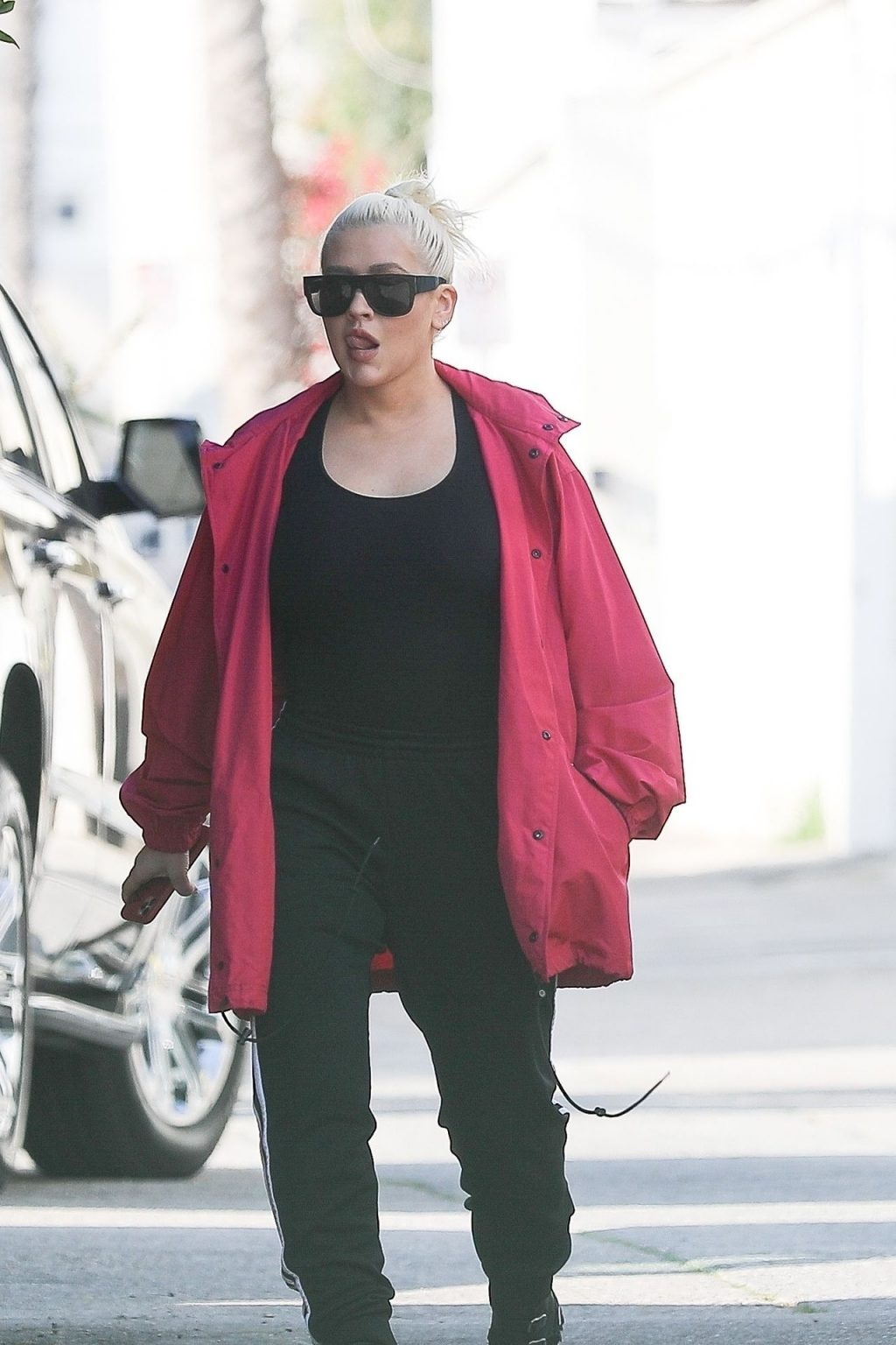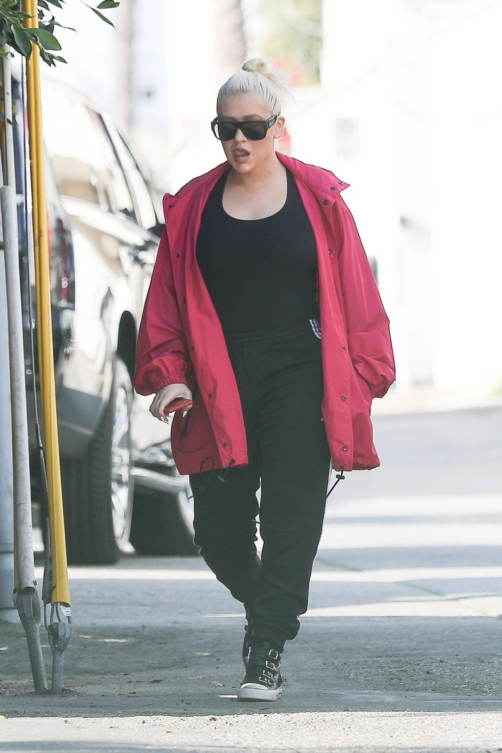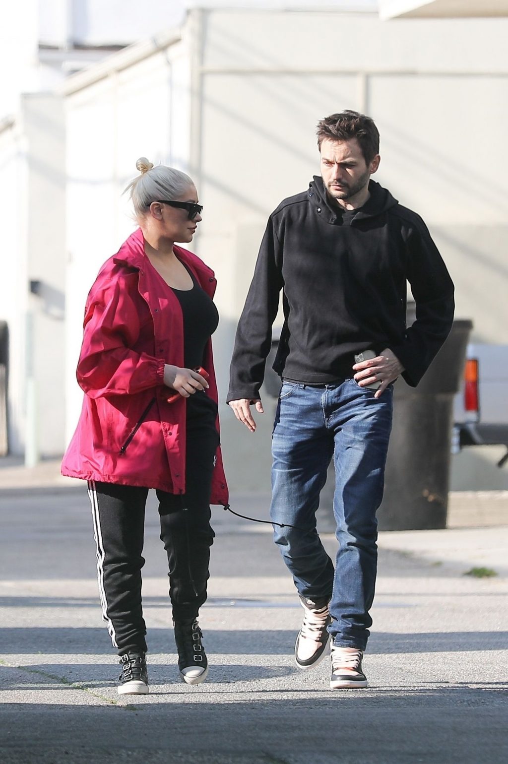 La cantante Christina Aguilera junto a su pareja Matthew Rutler llegan a la escuela de su hija Summer Rain Rutler para recogerla – Santa Mónica, 14/01/2020. Christina lleva una chaqueta cortavientos Balenciaga rosa fuerte y gafas de sol YSL. Luce su figura sin sostén, mostrando sus pechos a través de su top negro transparente.