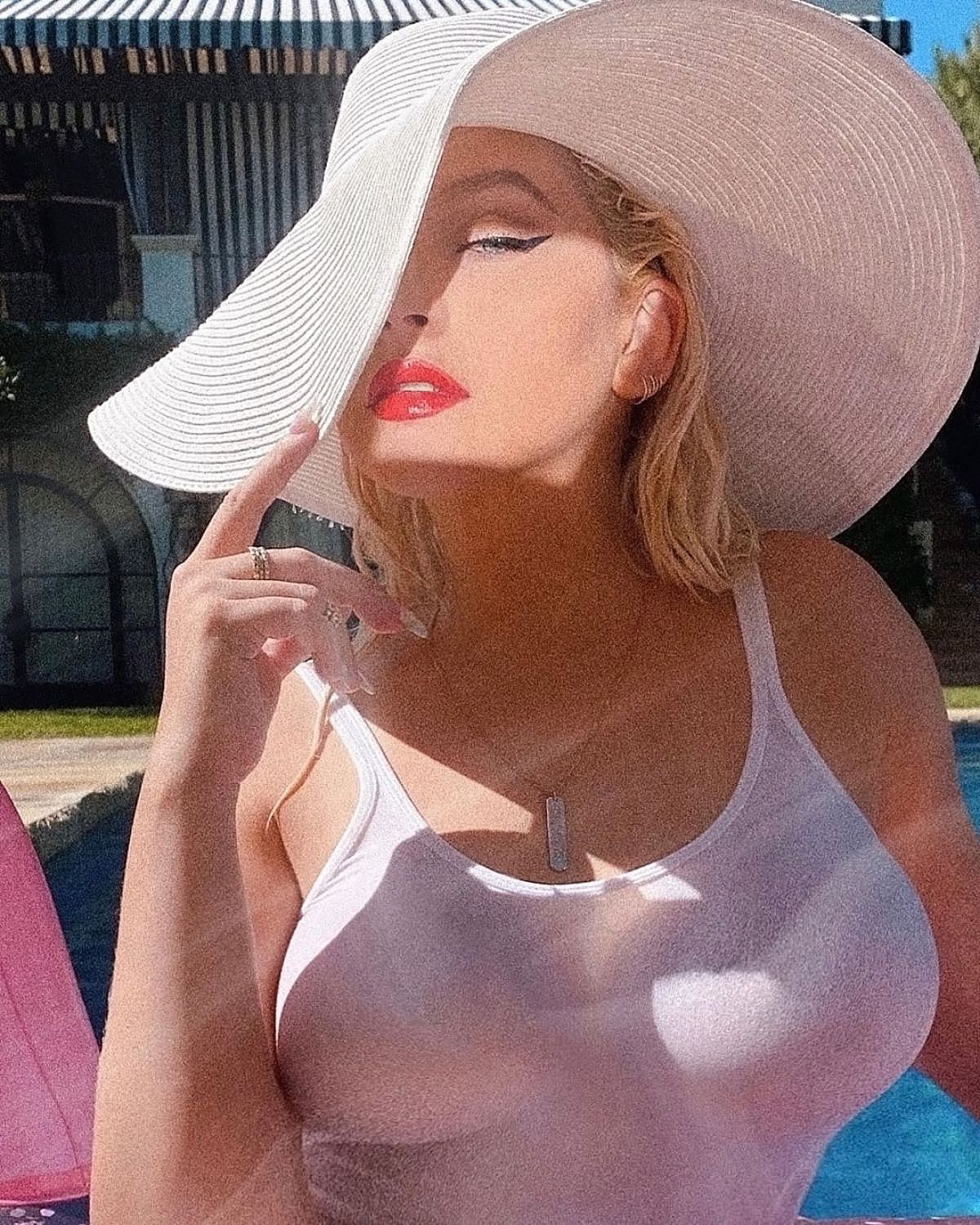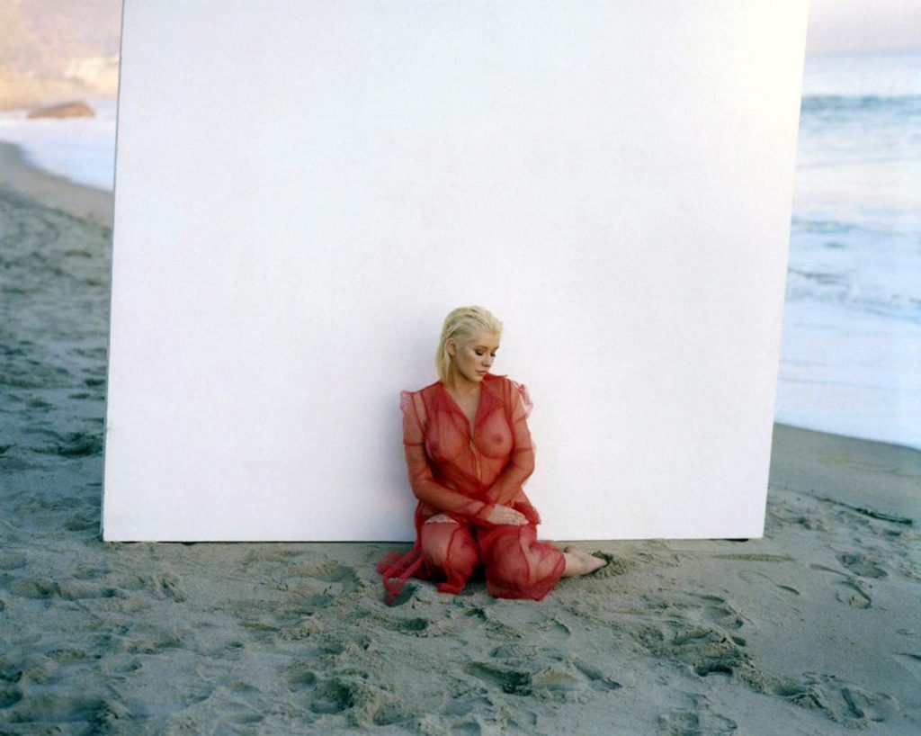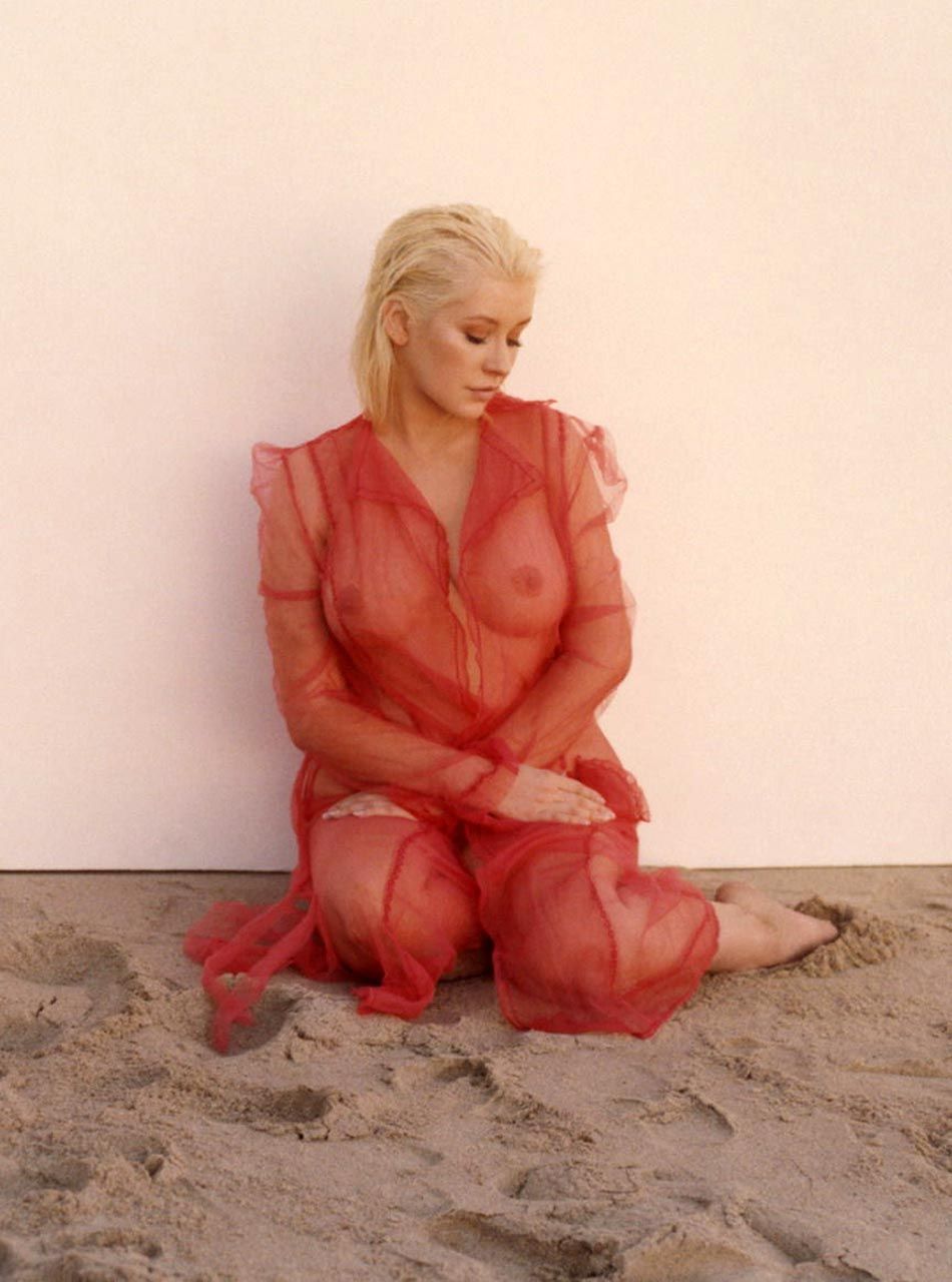 Christina Aguilera’s topless photo shooting is here, and you can see the big nude tits of beautiful Xtina! She was out of the public media for a while, but she got back stronger and more naked than ever! She showed her nipples and boobs through a red transparent shirt in the gallery below while posing at the beach. When Xtina posted these pics on her Instagram account, she said: ‘I may not be perfect, but I’m at least not fake’. Although I’m not sure about that fake shit, her face changed a bit strange through the years.