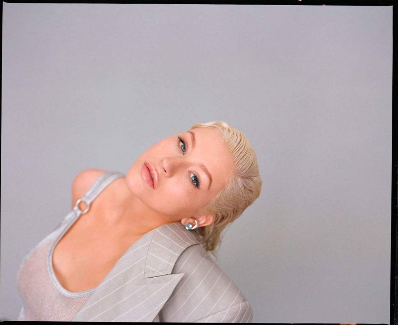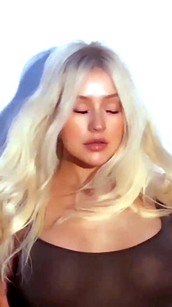 Here is Christina Aguilera nude again. In this photoshoot, she promotes an increasingly provocative image of herself. Showing her bare breasts, and in that way, she shows sexuality that reflected her personality. Watch Aguilera’s boobs and nipples with nipple rings in the MTV Diary TV show. This petite but dynamite beauty is a real sex bomb, with platinum blonde hair and bright red lipstick. For that reason, she has many sexy nicknames: X-Tina, Baby Jane, Candy, Madam X. In this video, Aguilera is doing a photoshoot and posing topless with slight blur marks covering her pointed piercing nipples. Enjoy watching Christina’s juicy boobs!