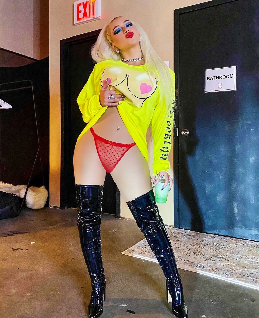 Check out these new Christina Aguilera’s hot pics! She posed around for a bit backstage before her concert! She showed off the tits on her shirt and her red lacey panties! Though she had some bodysuit underneath, I am still happy about her outfit! Although, I have to say it made me hard just by looking at the pictures.