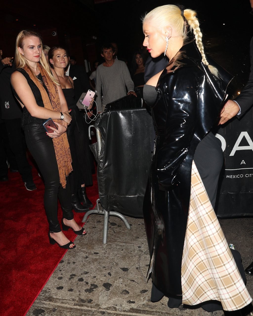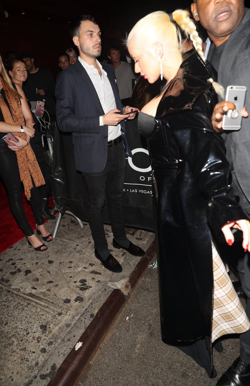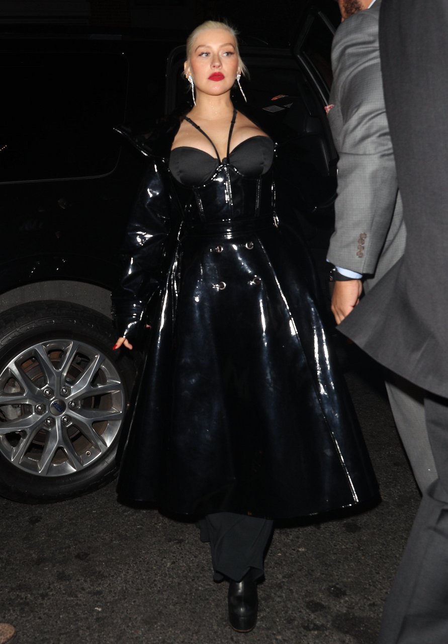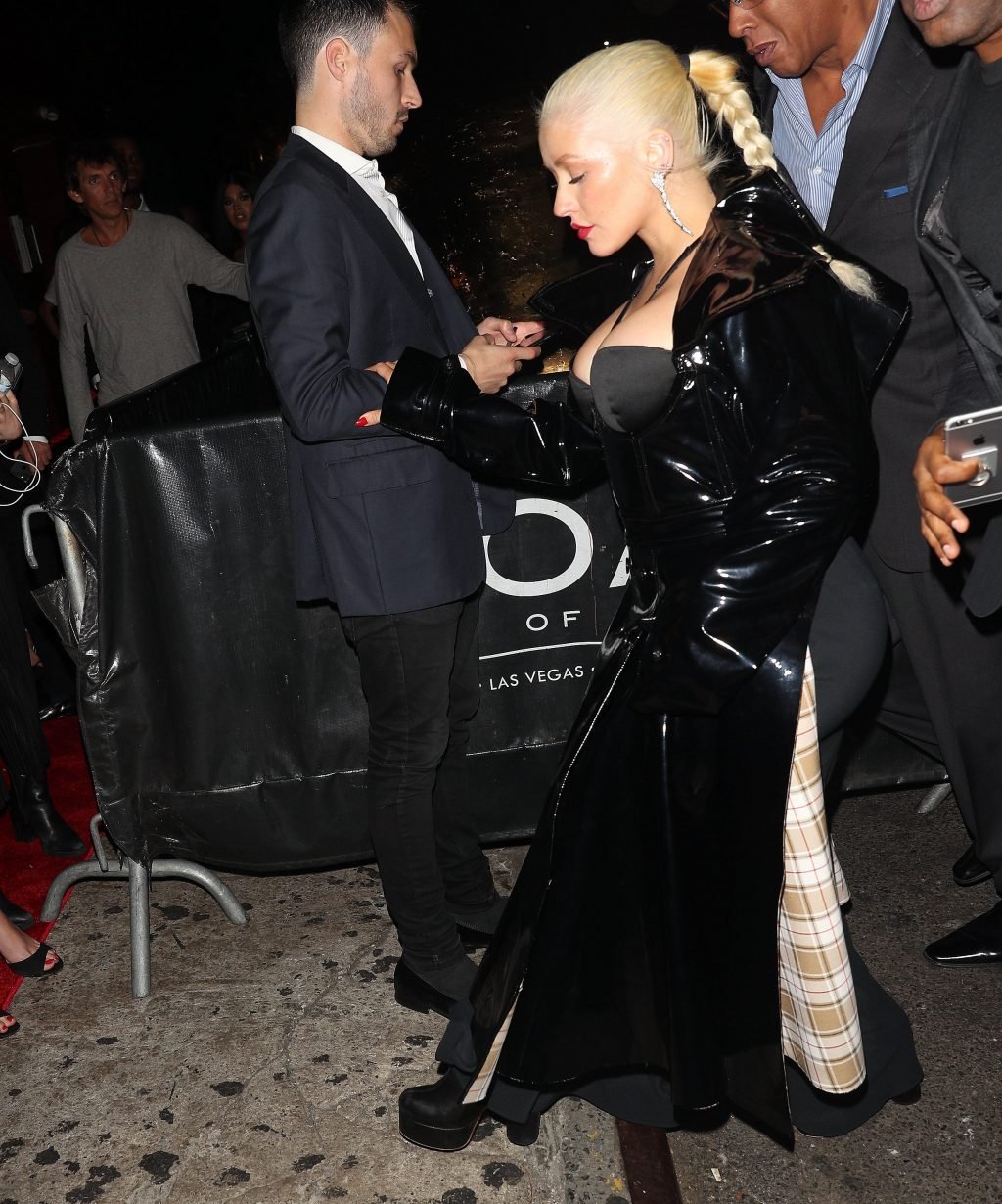 La rubia voluptuosa Christina Aguilera llega a la fiesta posterior de 1 Oak Harper vestida completamente de negro en la ciudad de Nueva York, 08/09/2018. Christina María Aguilera es una cantante, compositora, bailarina, actriz, productora, estrella de televisión y filántropa estadounidense. Edad: 37.