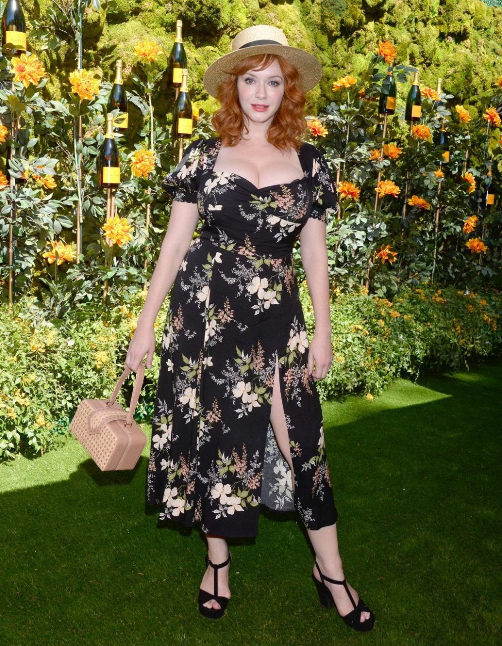 La actriz estadounidense de busto prominente Christina Hendricks llega al 10º Veuve Clicquot Polo Classic anual en Los Ángeles en el Parque Histórico Estatal Will Rogers en Pacific Palisades, 05/10/2019.