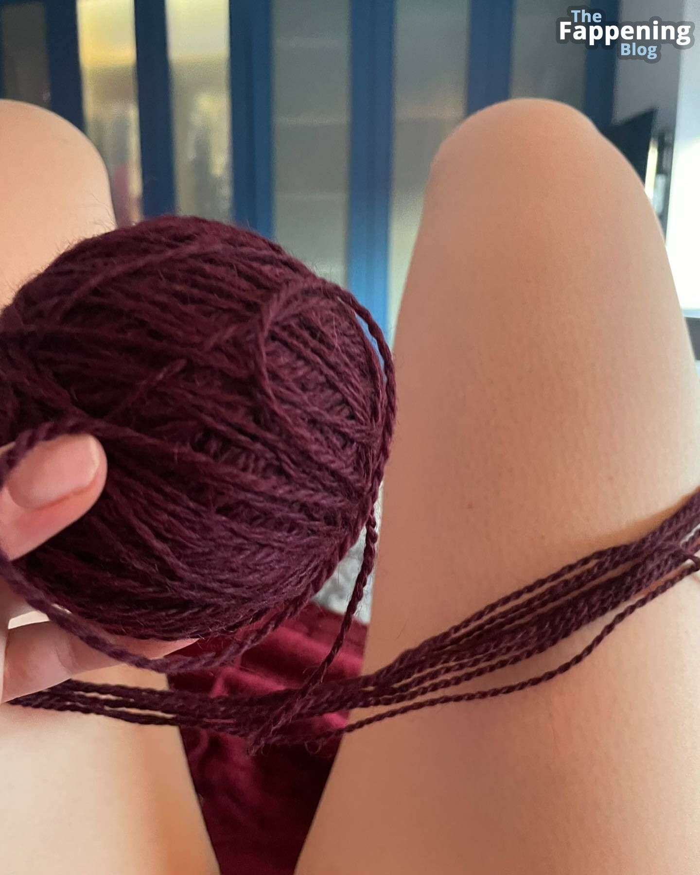 Christina Hendricks luce un escote impresionante de cerca, mostrando sus famosas y generosas curvas y sus impresionantes piernas mientras se relaja en casa y practica su habilidad con el tejido.