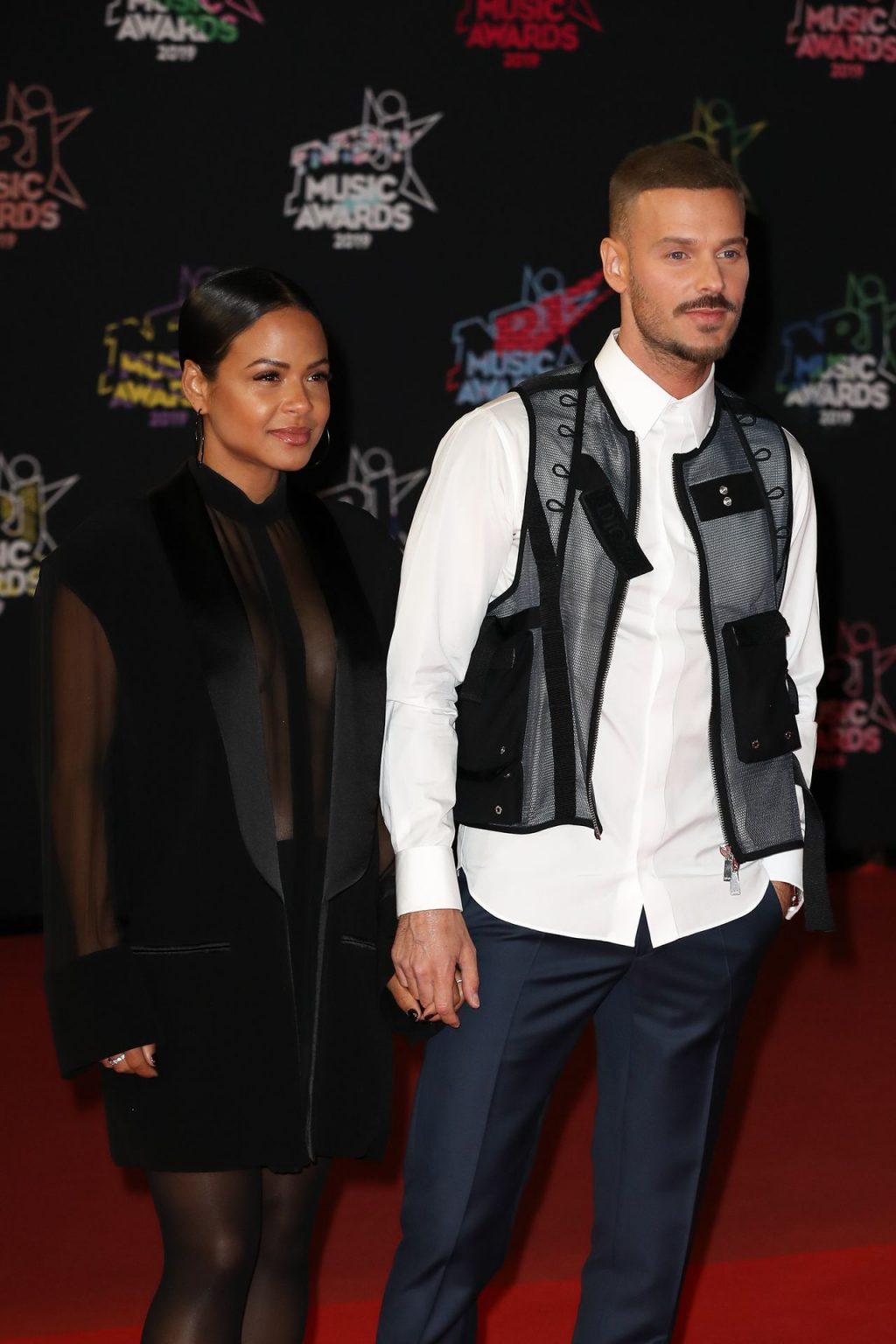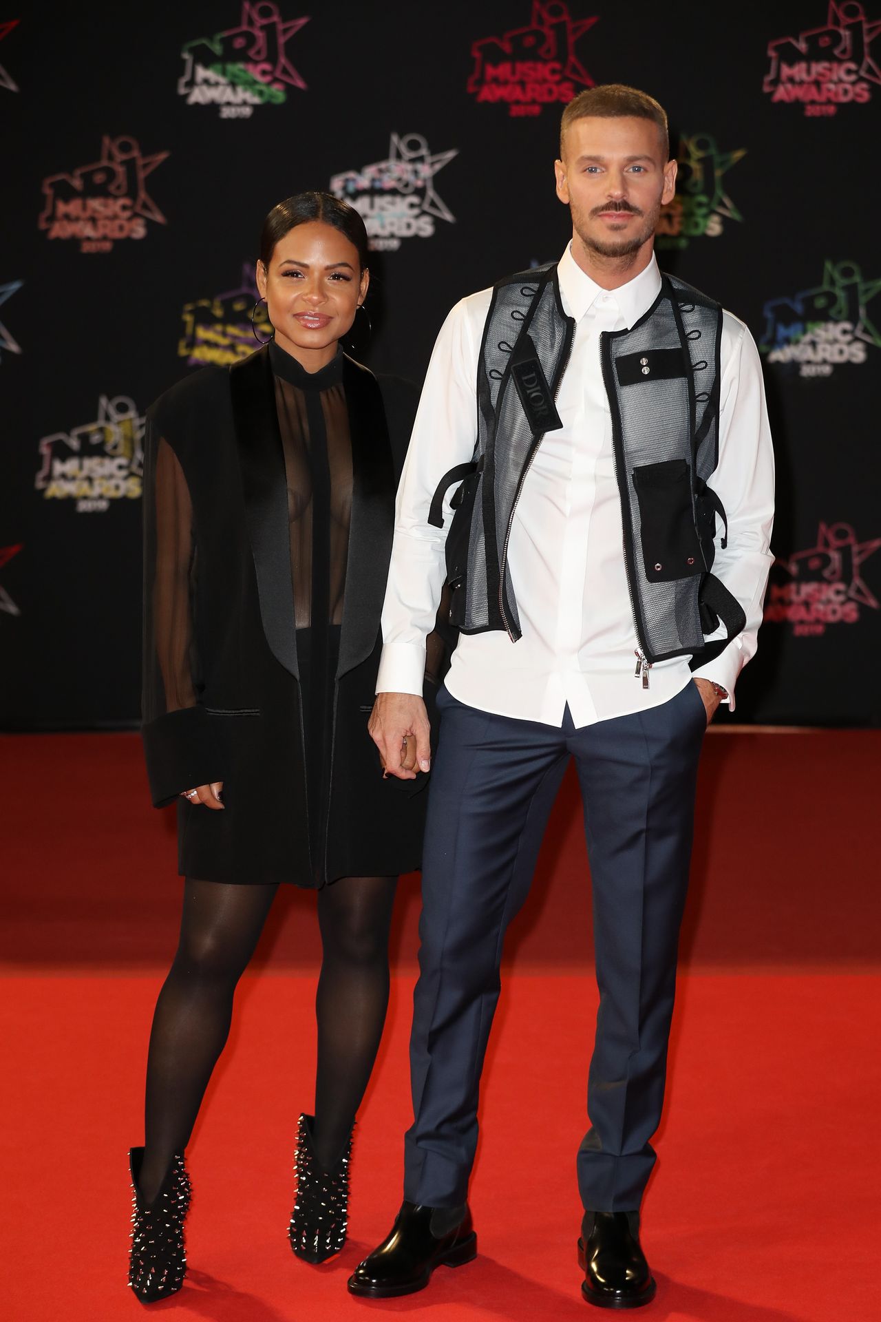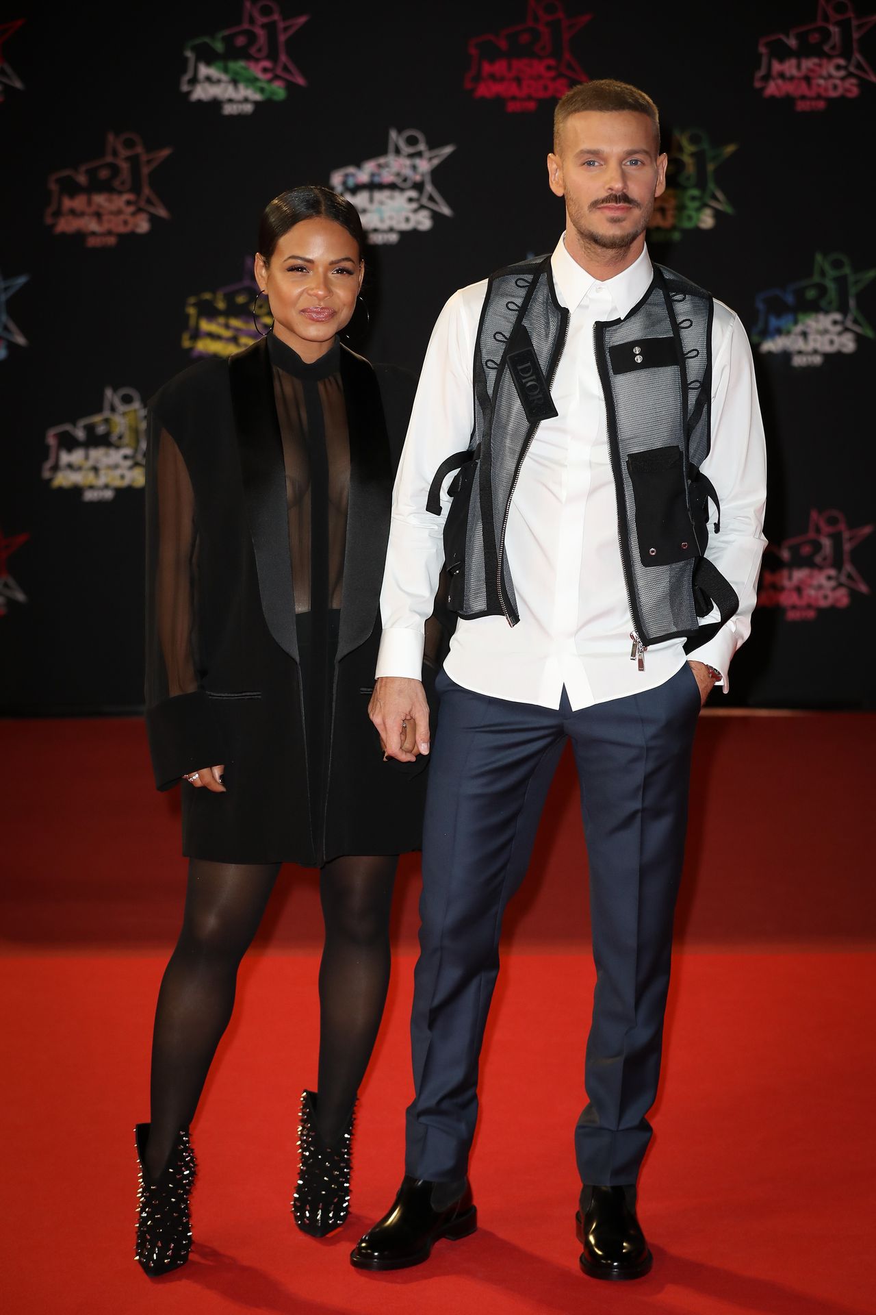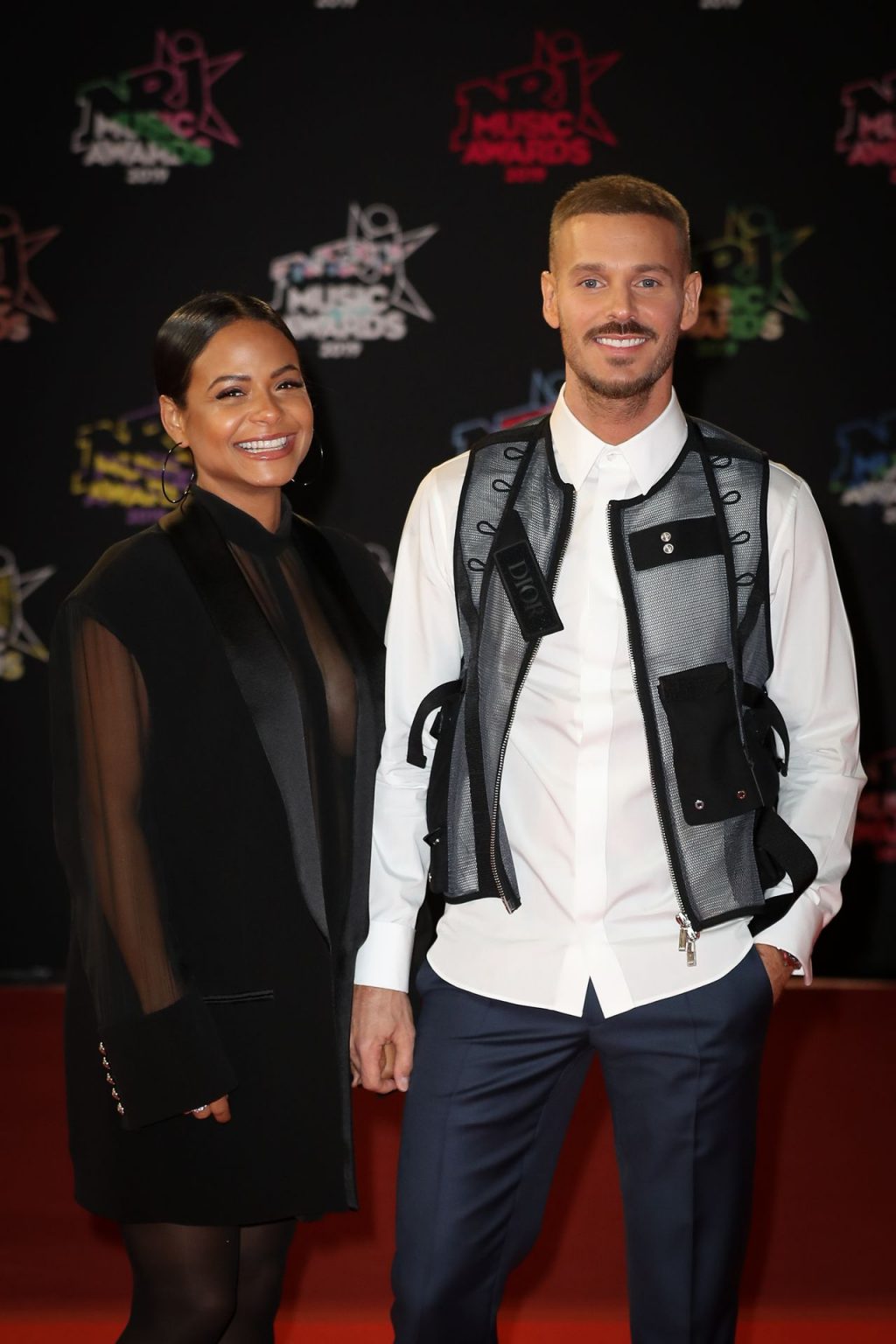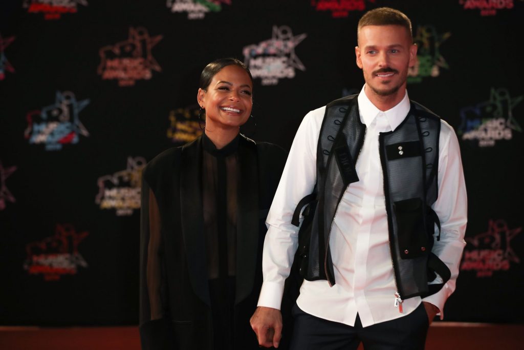 Cantante estadounidense Christina Milian y cantante francés M Pokora posan en la alfombra roja al llegar para asistir a la ceremonia de los 21º Premios NRJ Music en el Palais des Festivals en Cannes, sureste de Francia, 11/09/2019.