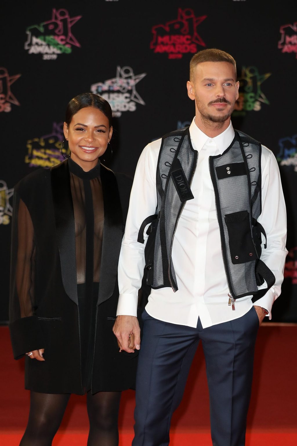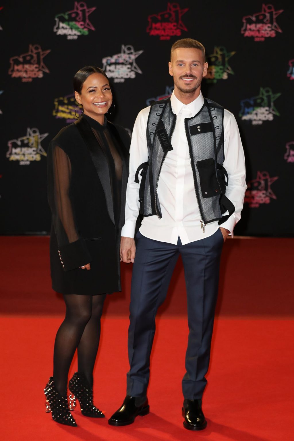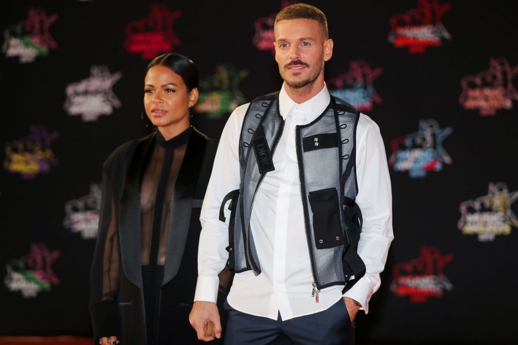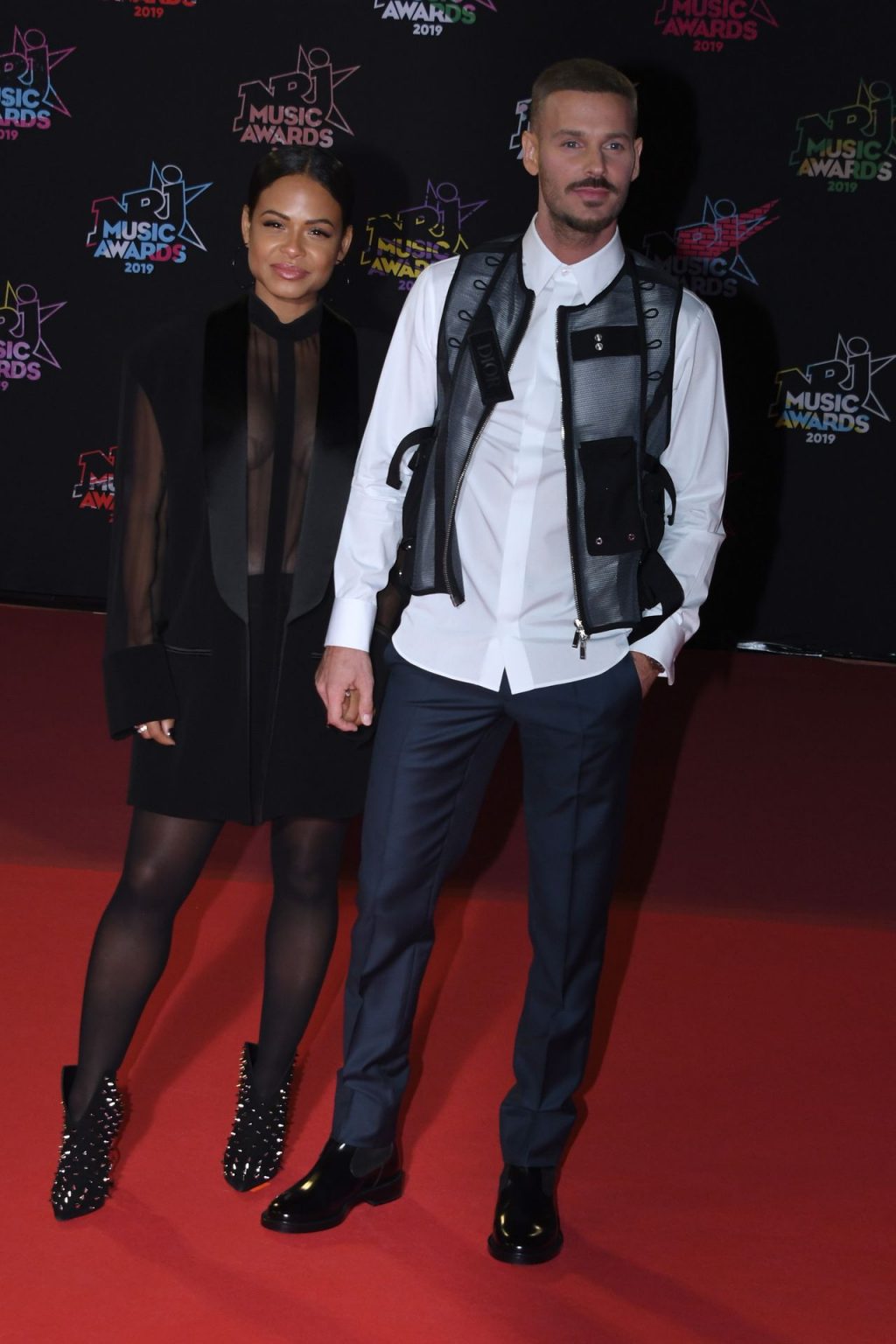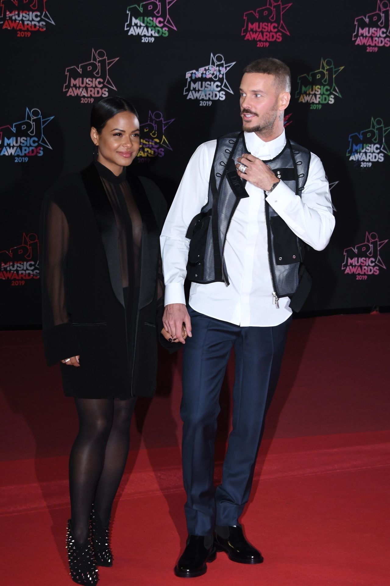 Cantante estadounidense Christina Milian y cantante francés M Pokora posan en la alfombra roja al llegar para asistir a la ceremonia de los 21º Premios NRJ Music en el Palais des Festivals en Cannes, sureste de Francia, 11/09/2019.