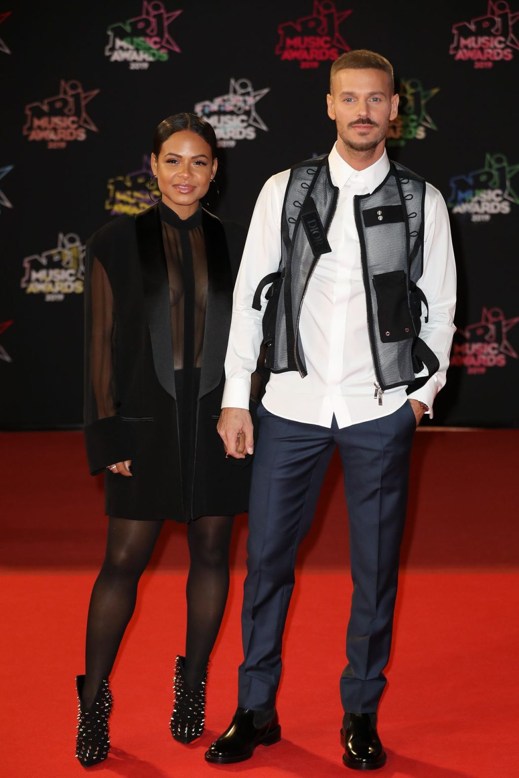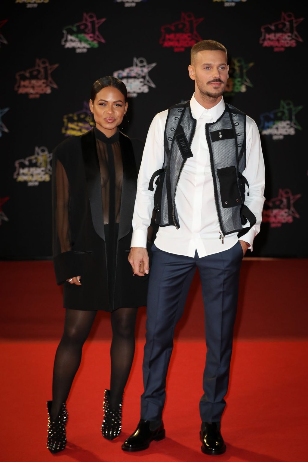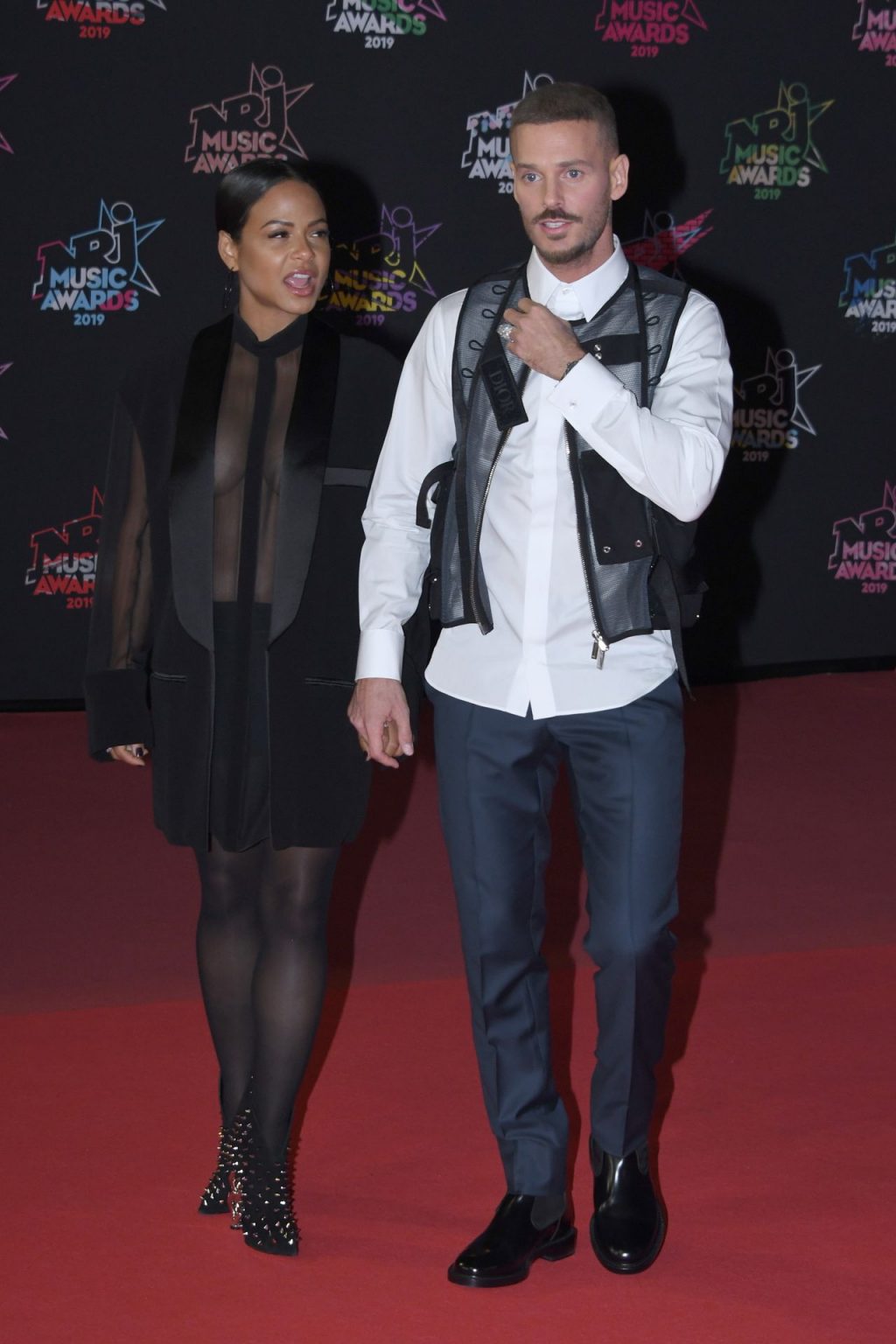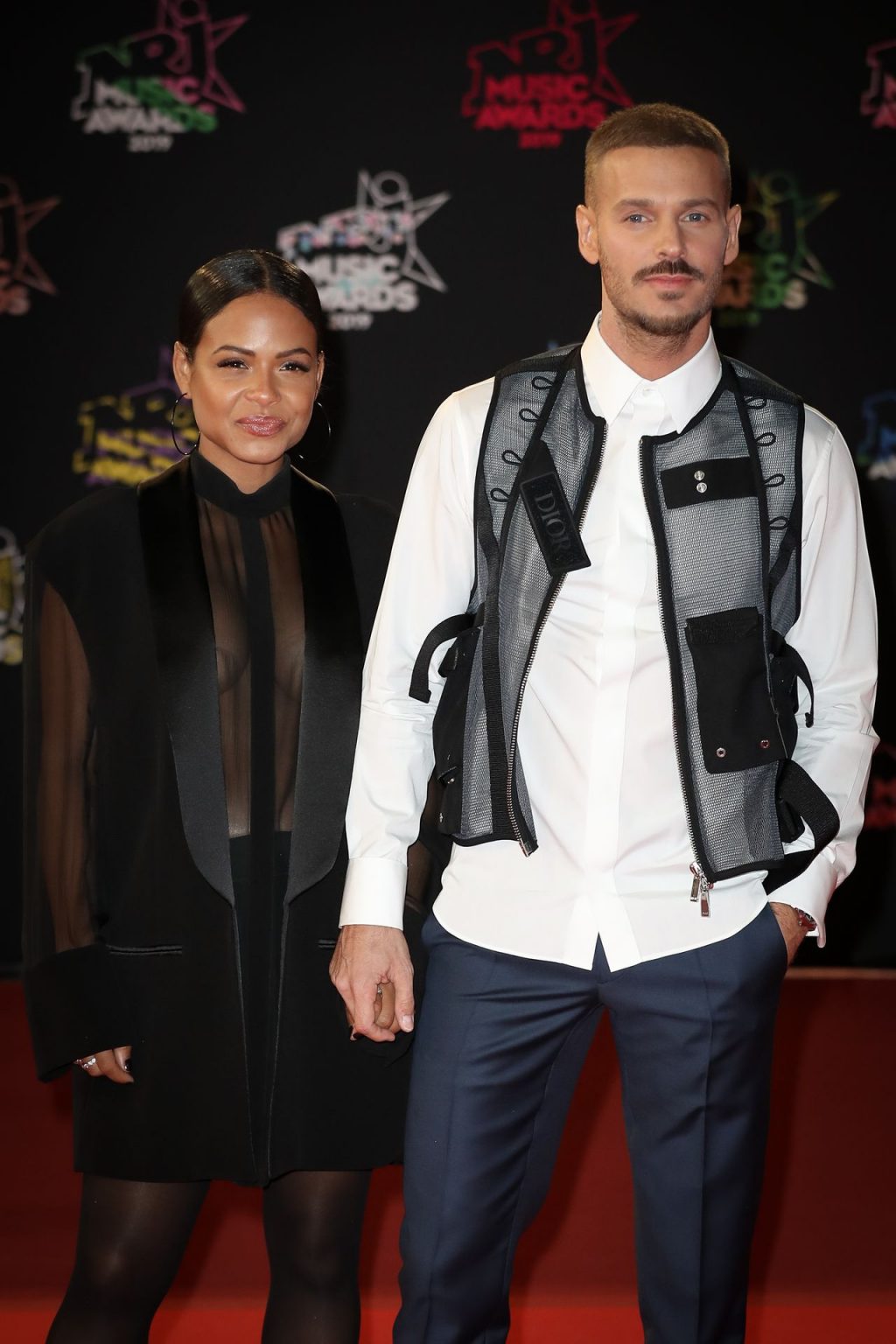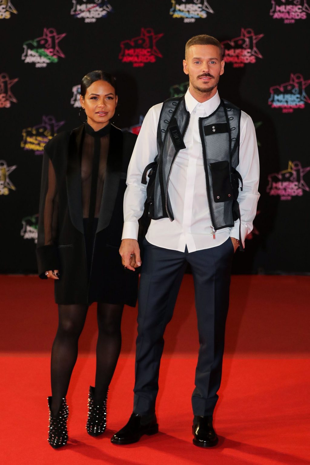 Cantante estadounidense Christina Milian y cantante francés M Pokora posan en la alfombra roja al llegar para asistir a la ceremonia de los 21º Premios NRJ Music en el Palais des Festivals en Cannes, sureste de Francia, 11/09/2019.