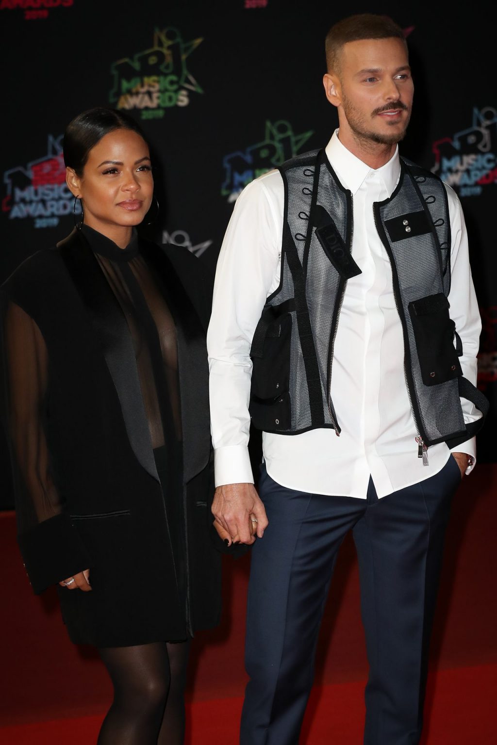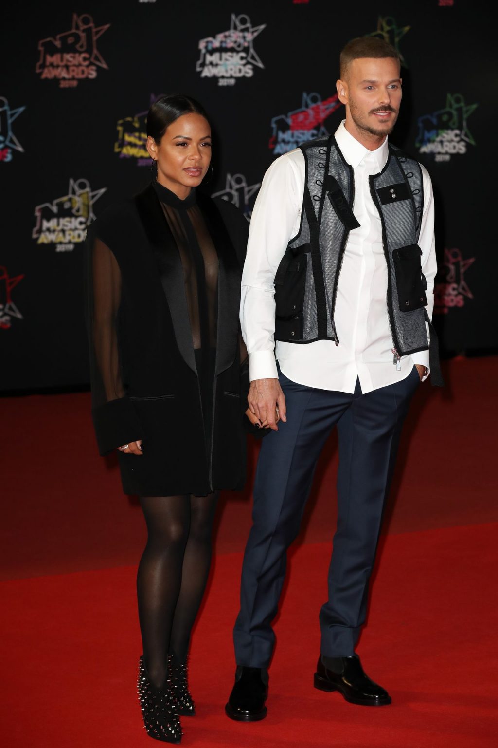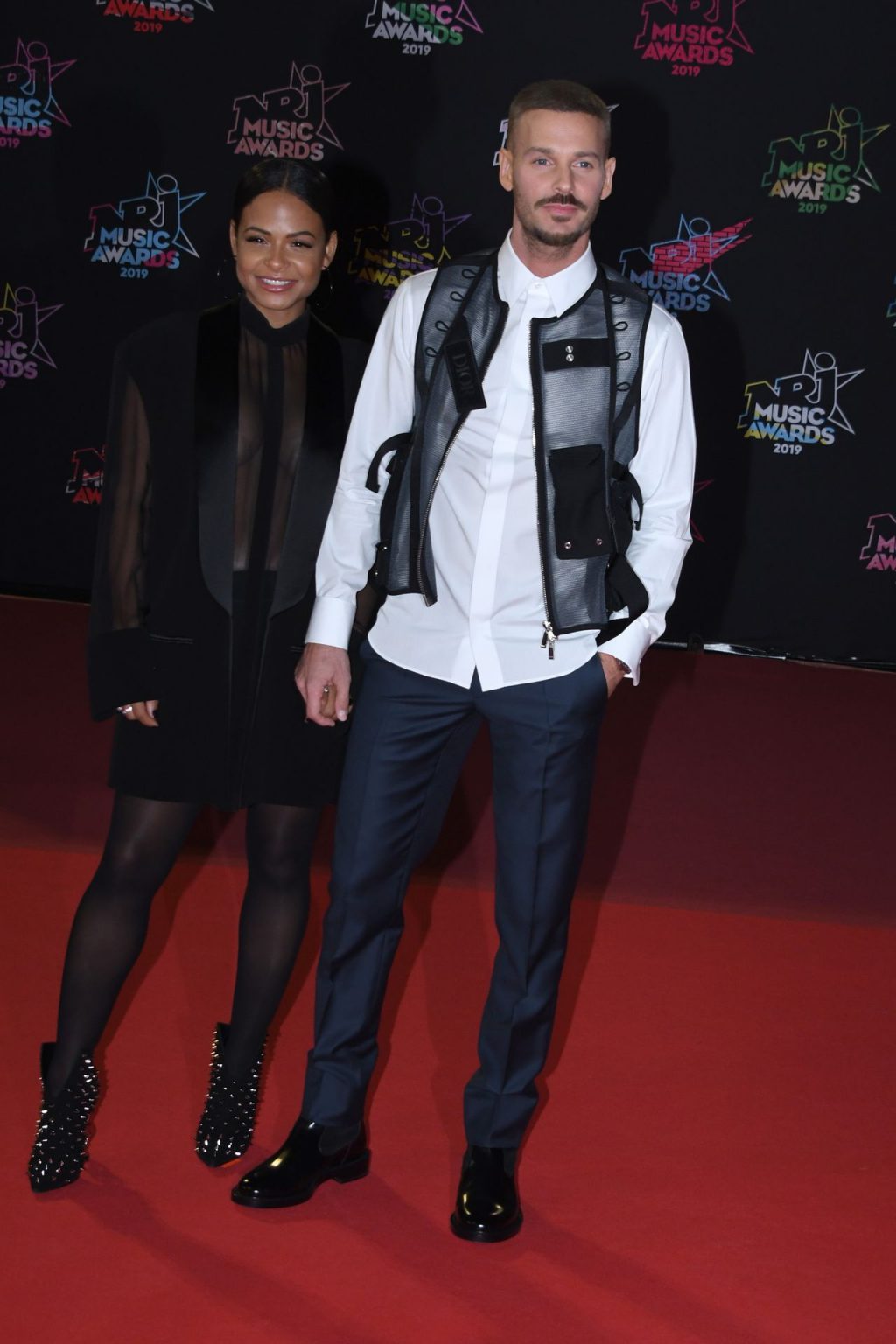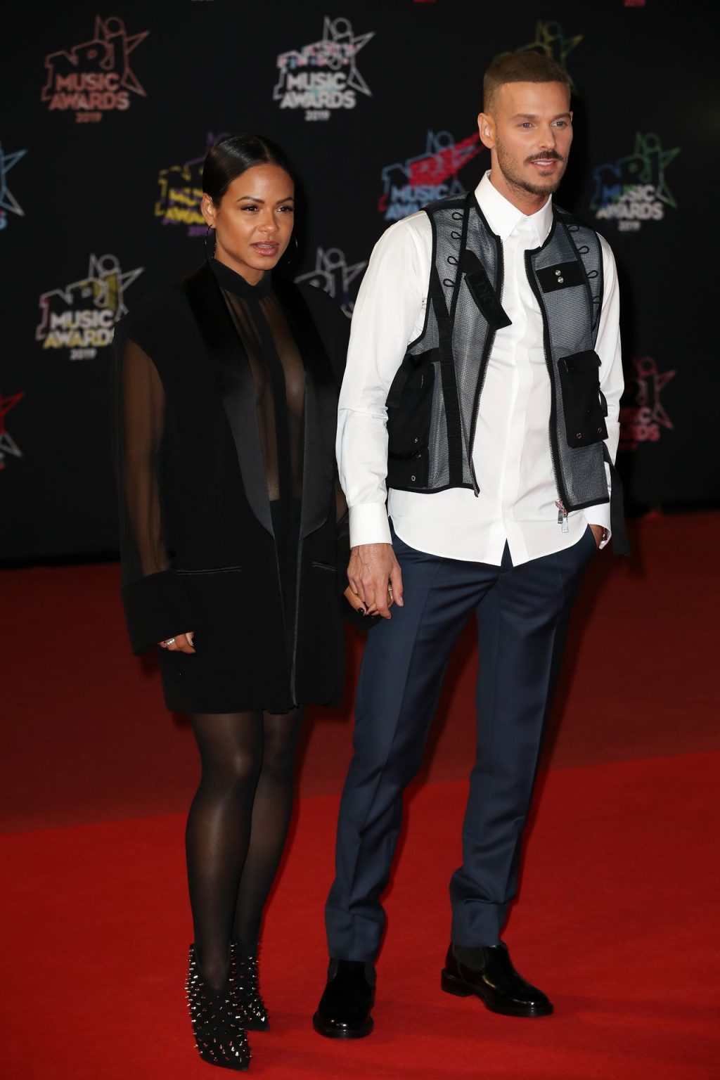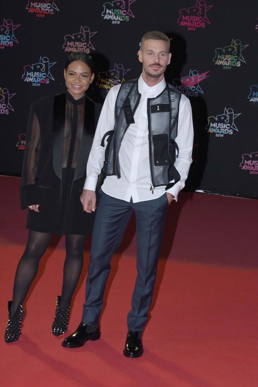 Cantante estadounidense Christina Milian y cantante francés M Pokora posan en la alfombra roja al llegar para asistir a la ceremonia de los 21º Premios NRJ Music en el Palais des Festivals en Cannes, sureste de Francia, 11/09/2019.